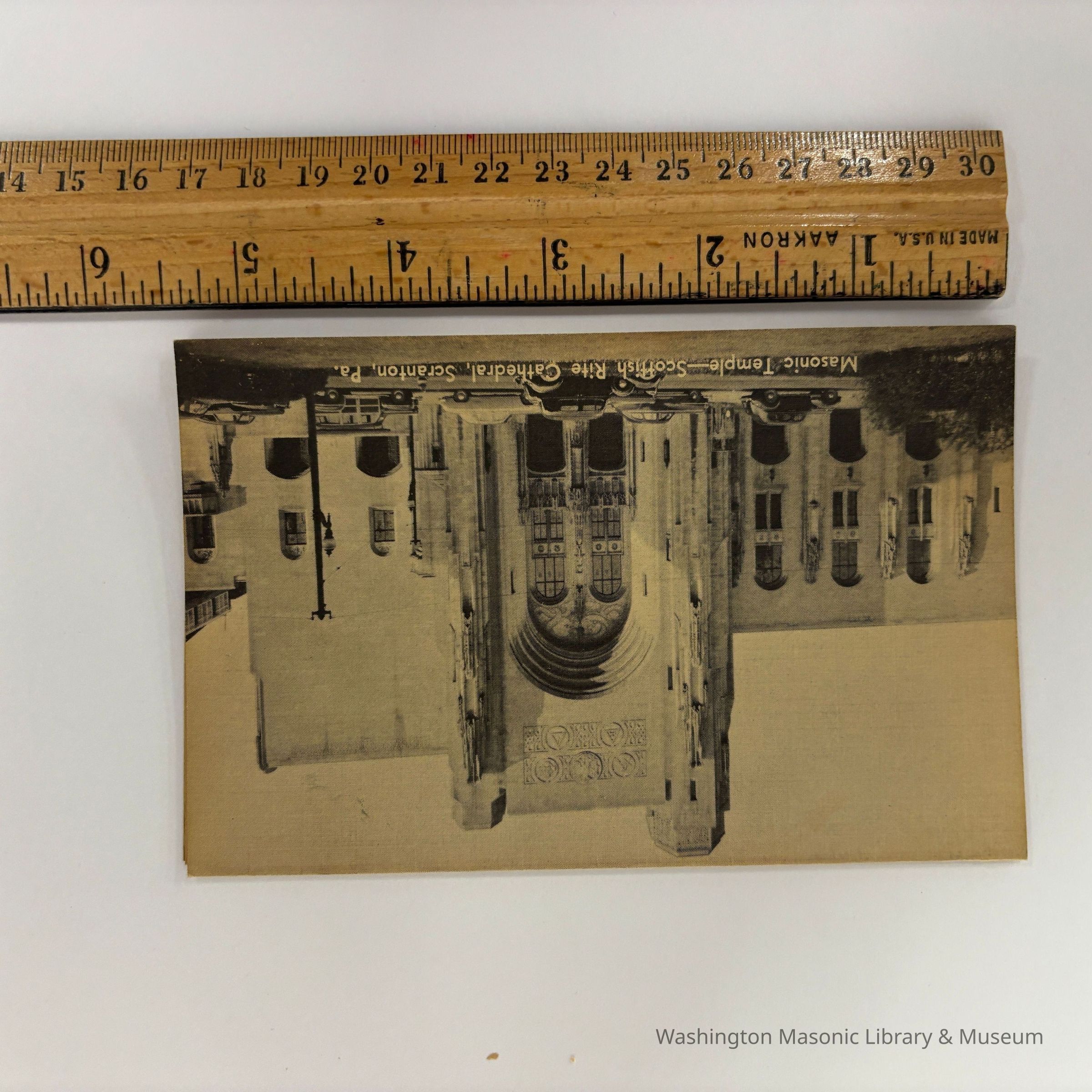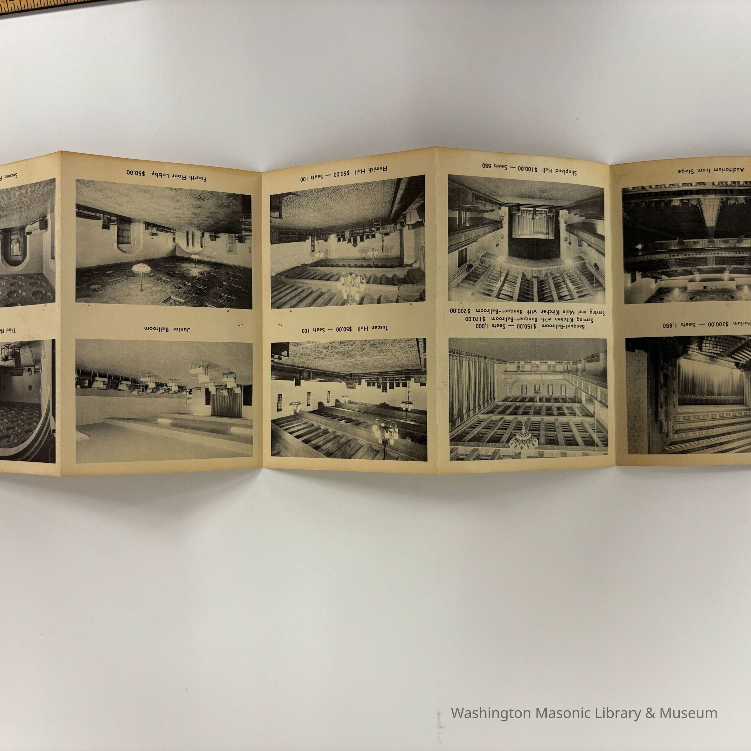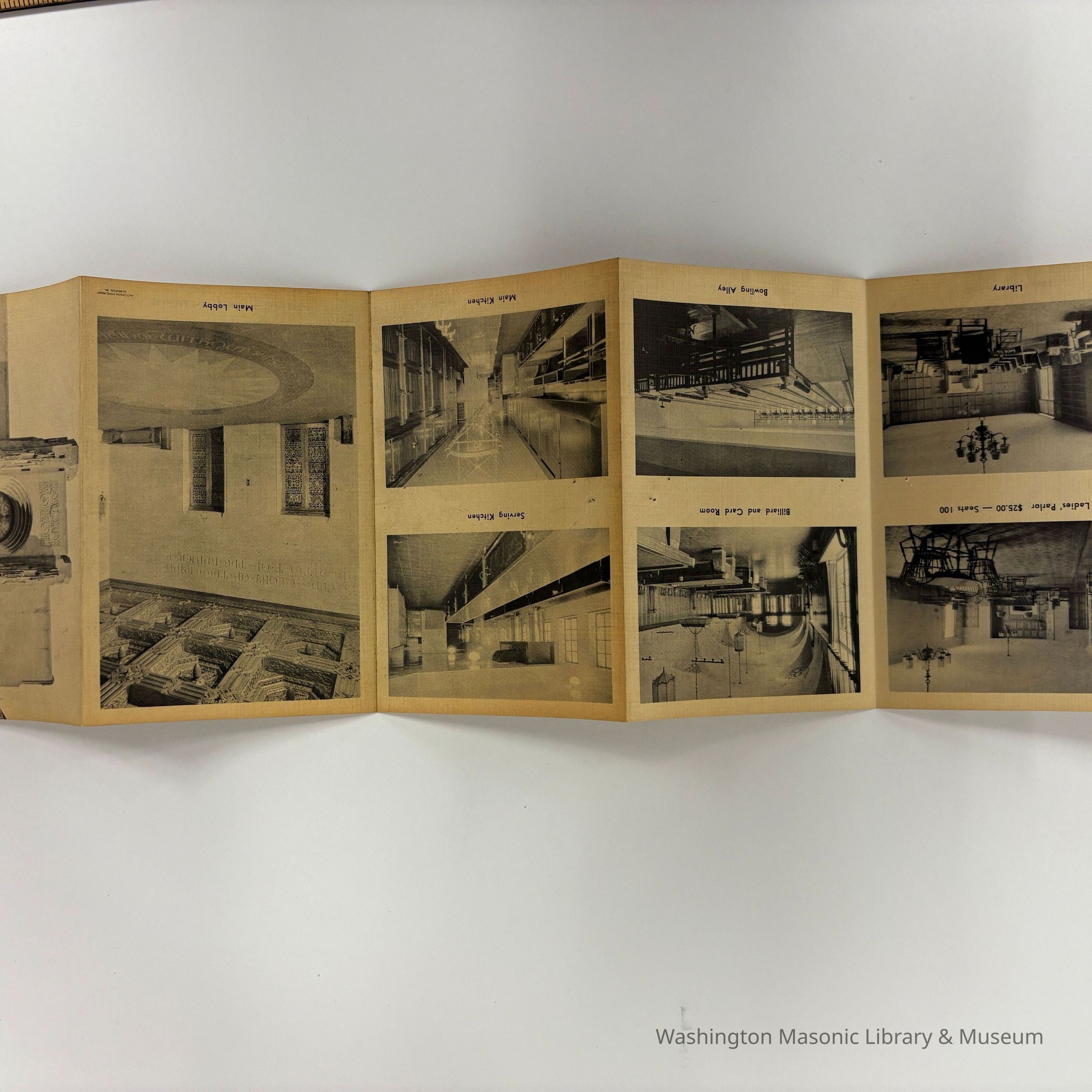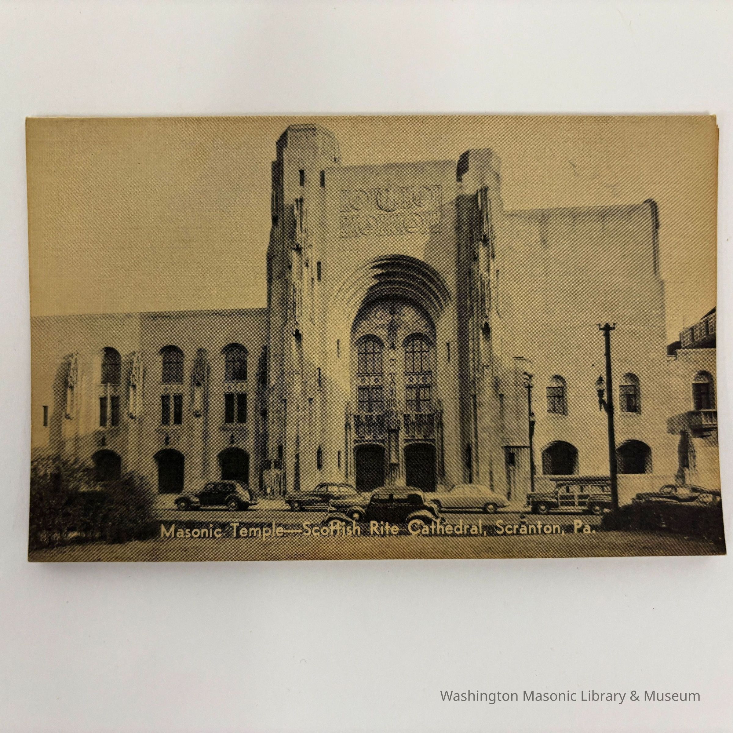 Pamphlet: Folds in 5 sections. Masonic Temple--Scottish Rite Cathedral, Scranton, Pa. (c. 1930s). Includes photos of various rooms in the building.Collection