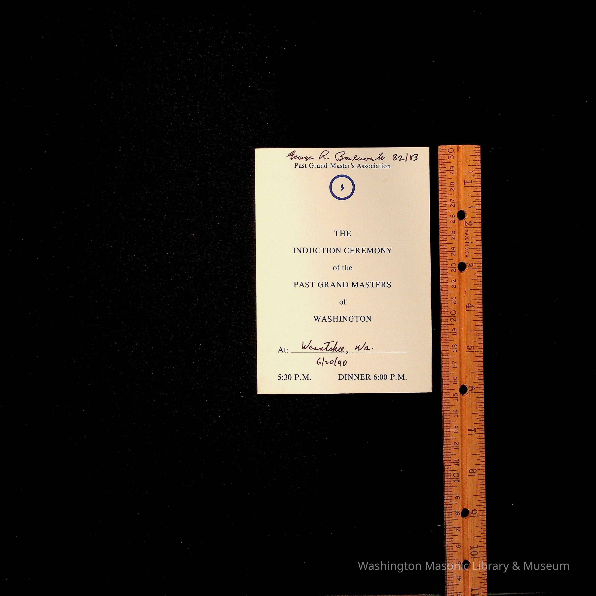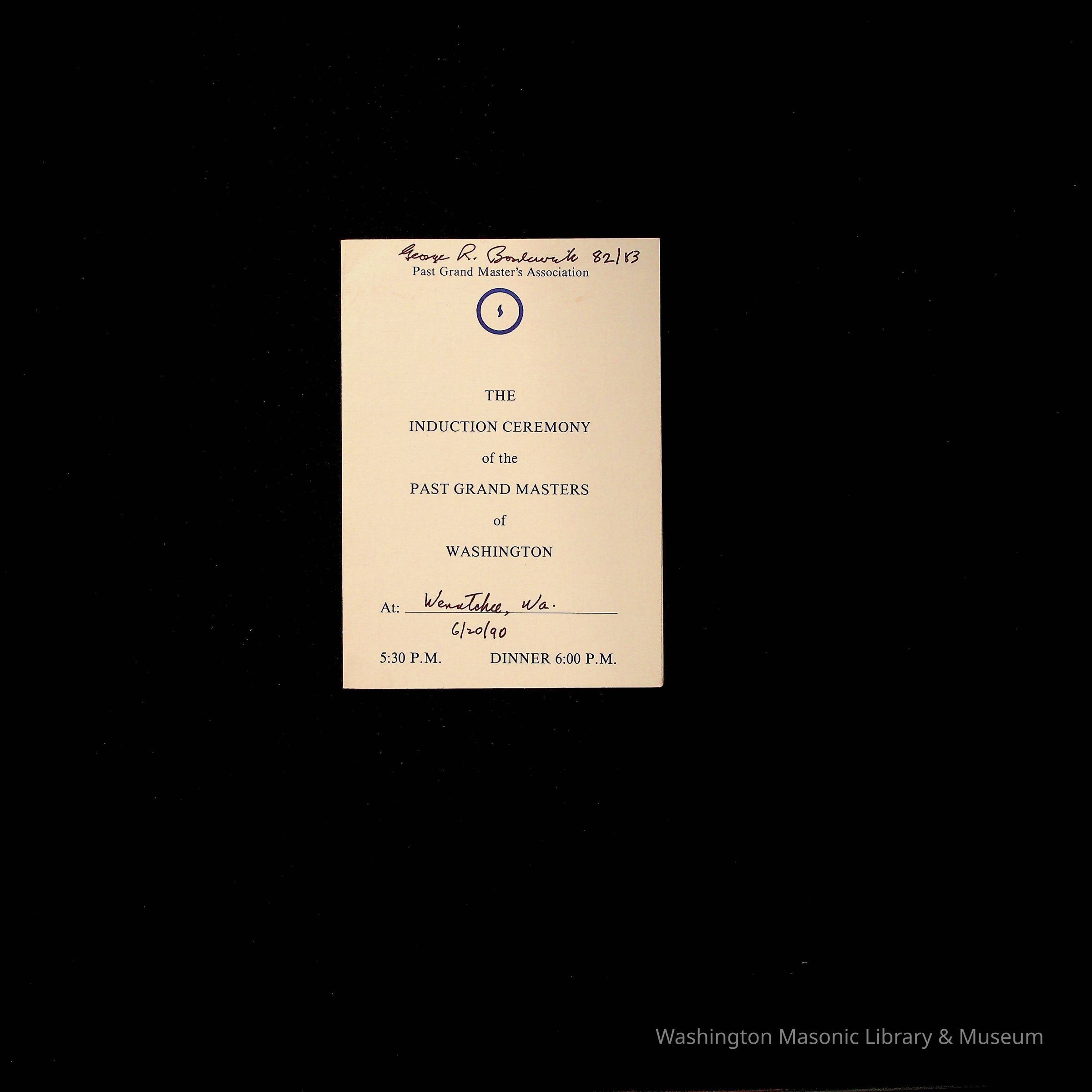 Pamphlet: The Induction Ceremony of the Past Grand Masters of Washington, 1990. Belonged to PGM George R. BordewickEntry/Object ID
