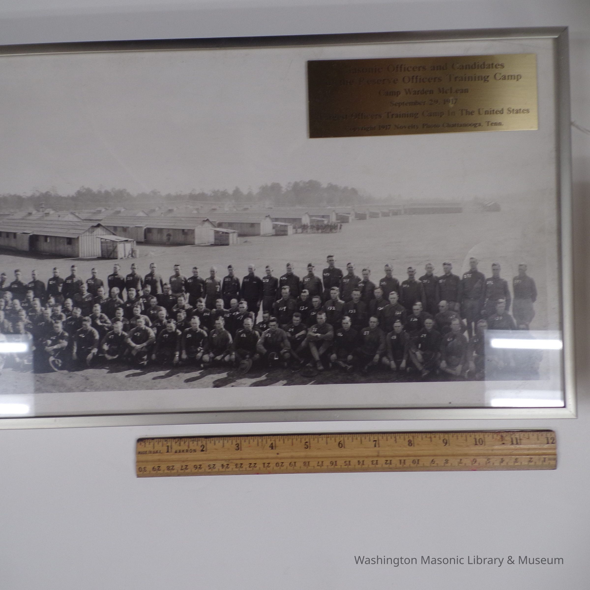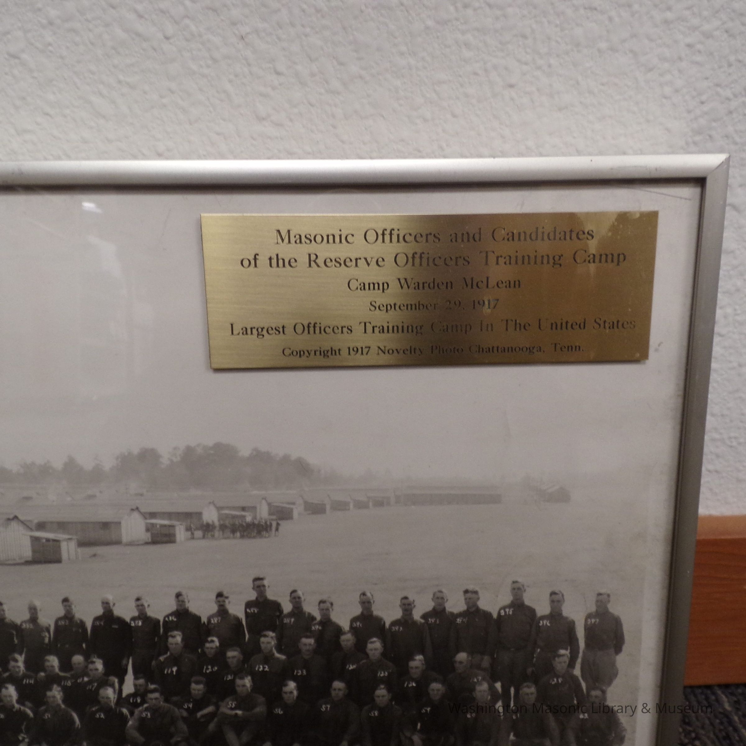 Photograph: Framed Panorama. "Masonic Officers and Candidates of the Reserve Officers Training Camp, Camp Warden McLean, September 29, 1917/ Largest Officers Training Camp in the United States/ Copyright 1917 Novelty Photo Chattanooga, Tenn."Collection