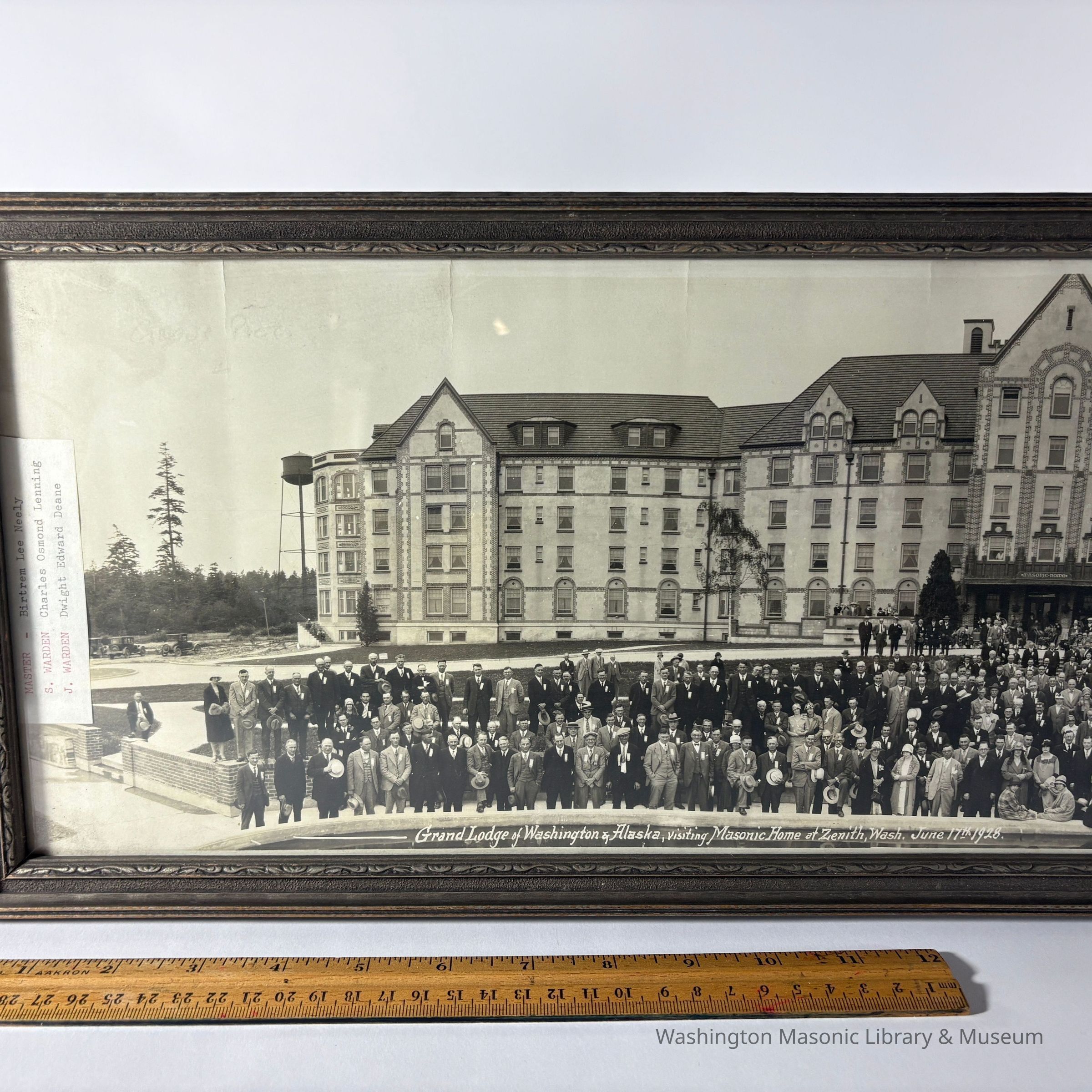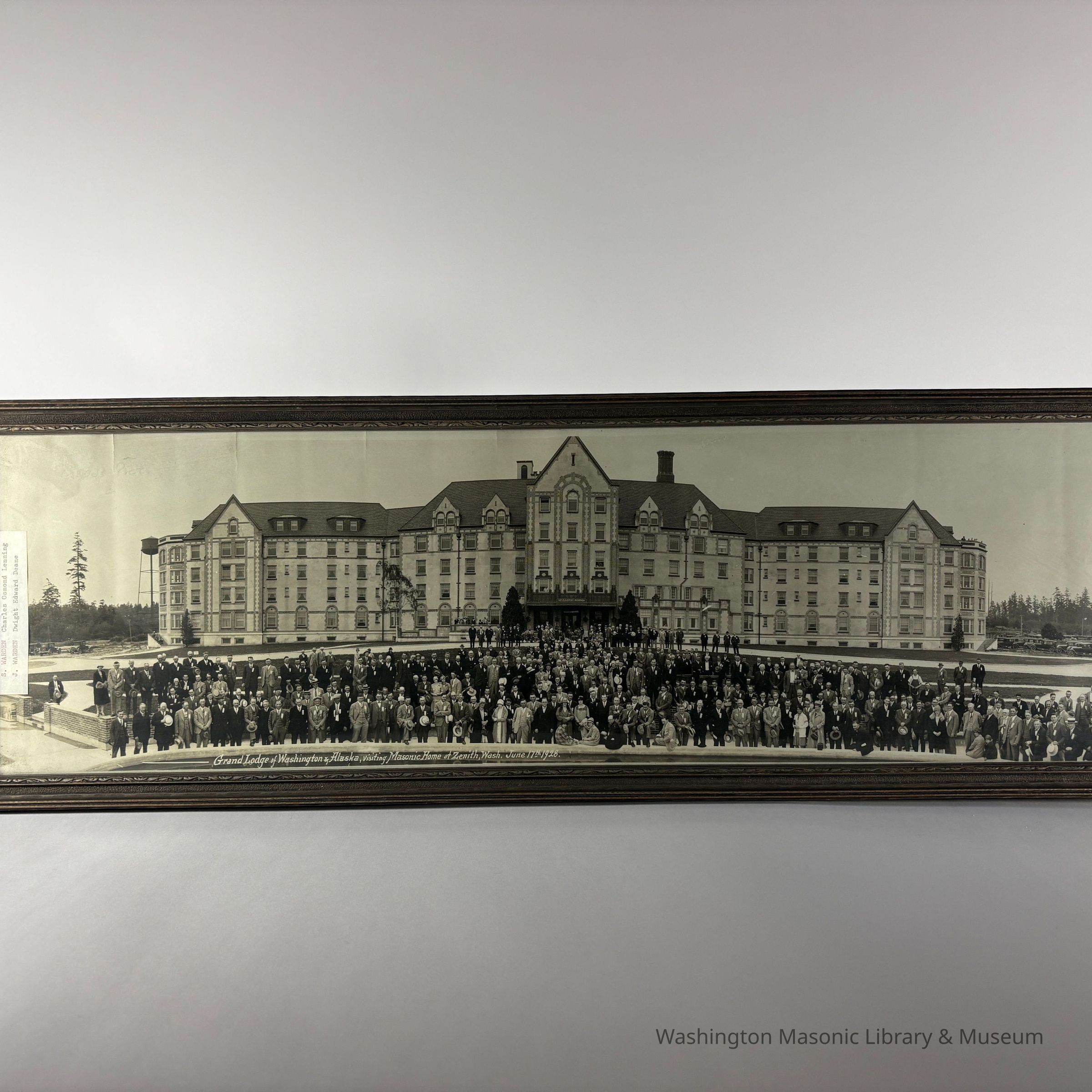 Panorama: In brown frame. Panorama Taken of the Grand Lodge of Washington & Alaska in front of the newly finished Masonic Home in Zenith, Washington. (June 17th, 1926).Collection