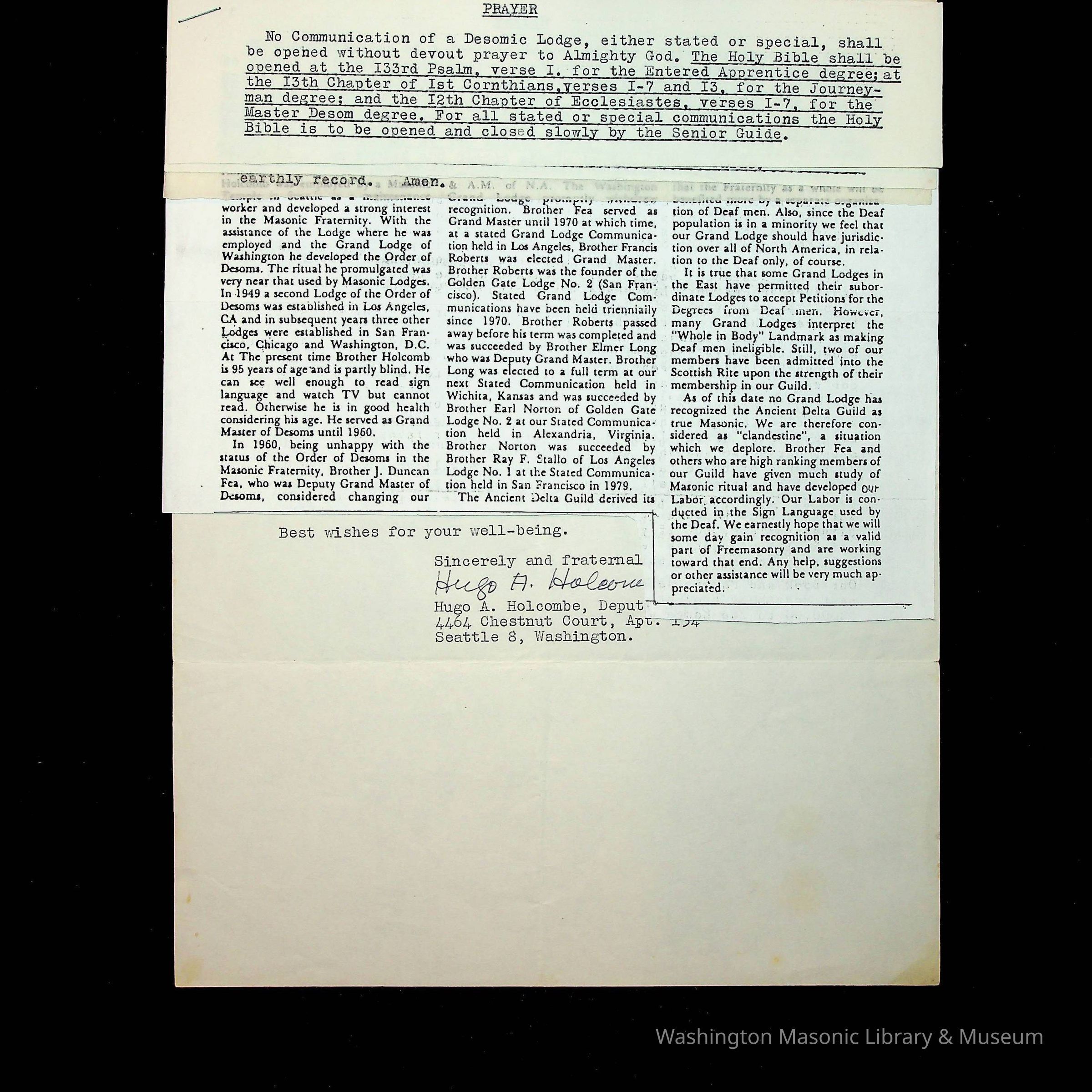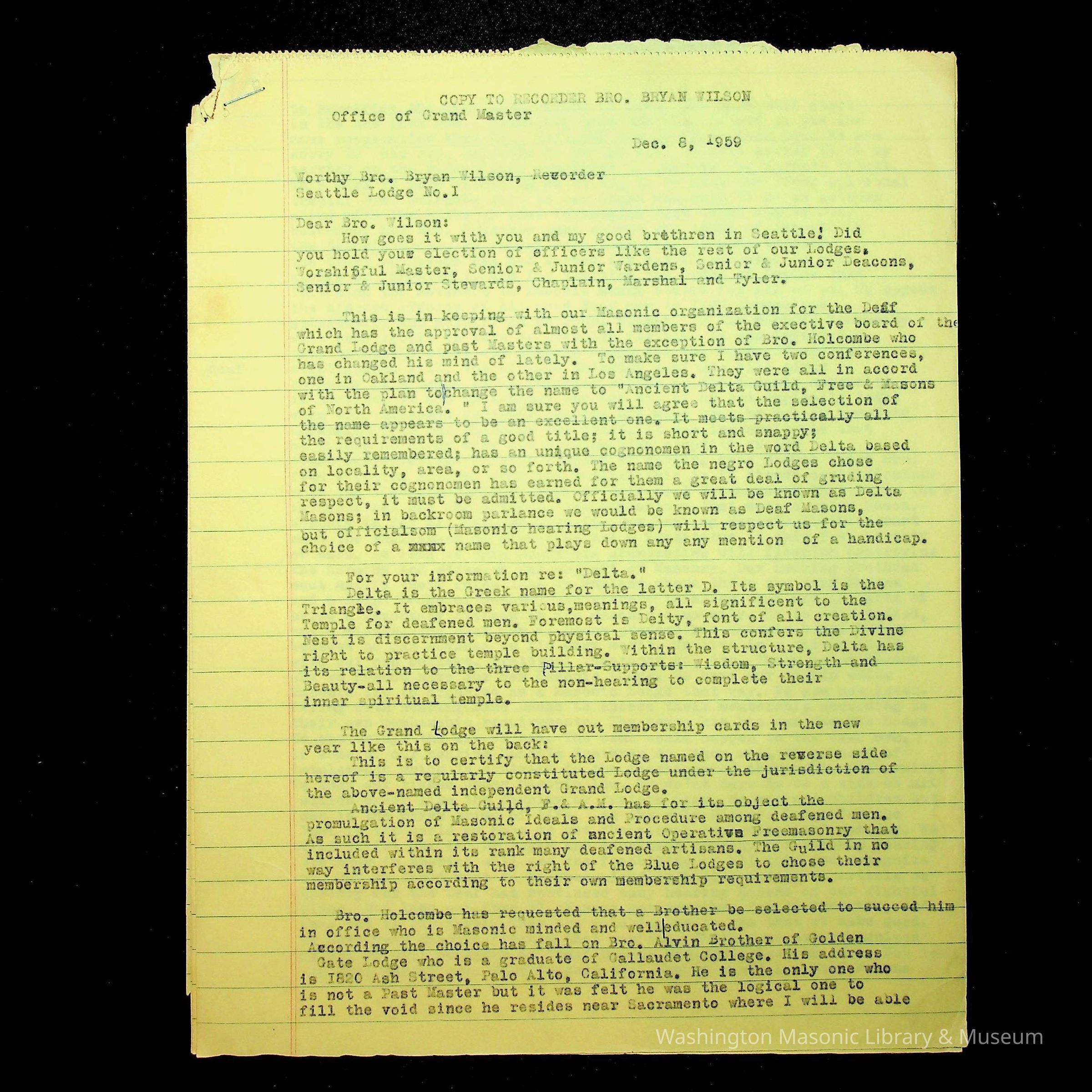 g-j) Letter to Brother Wilson from Office of Grand Master, CA (December 8, 1959). Originally stapled together.