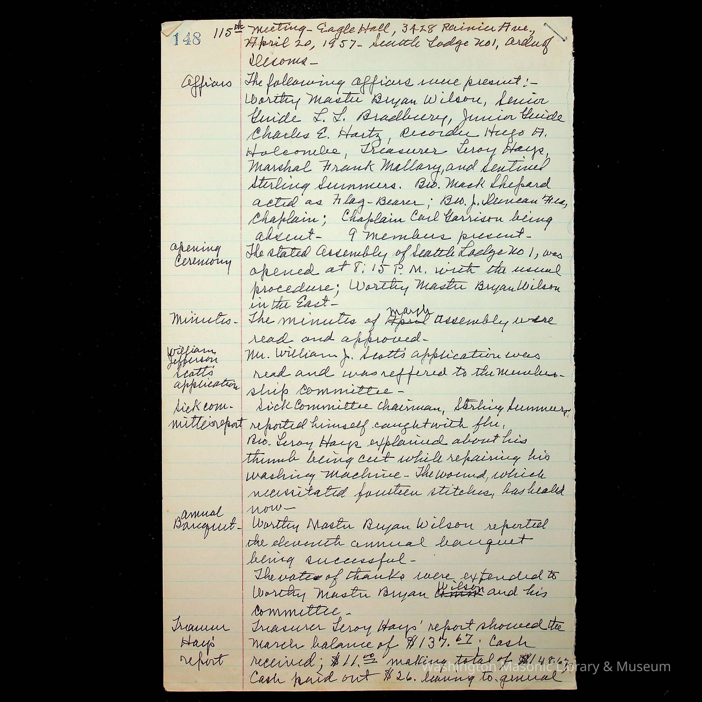 p-q) Handwritten notes from 115th Meeting, Eagle Hall (April 20-1957)Collection