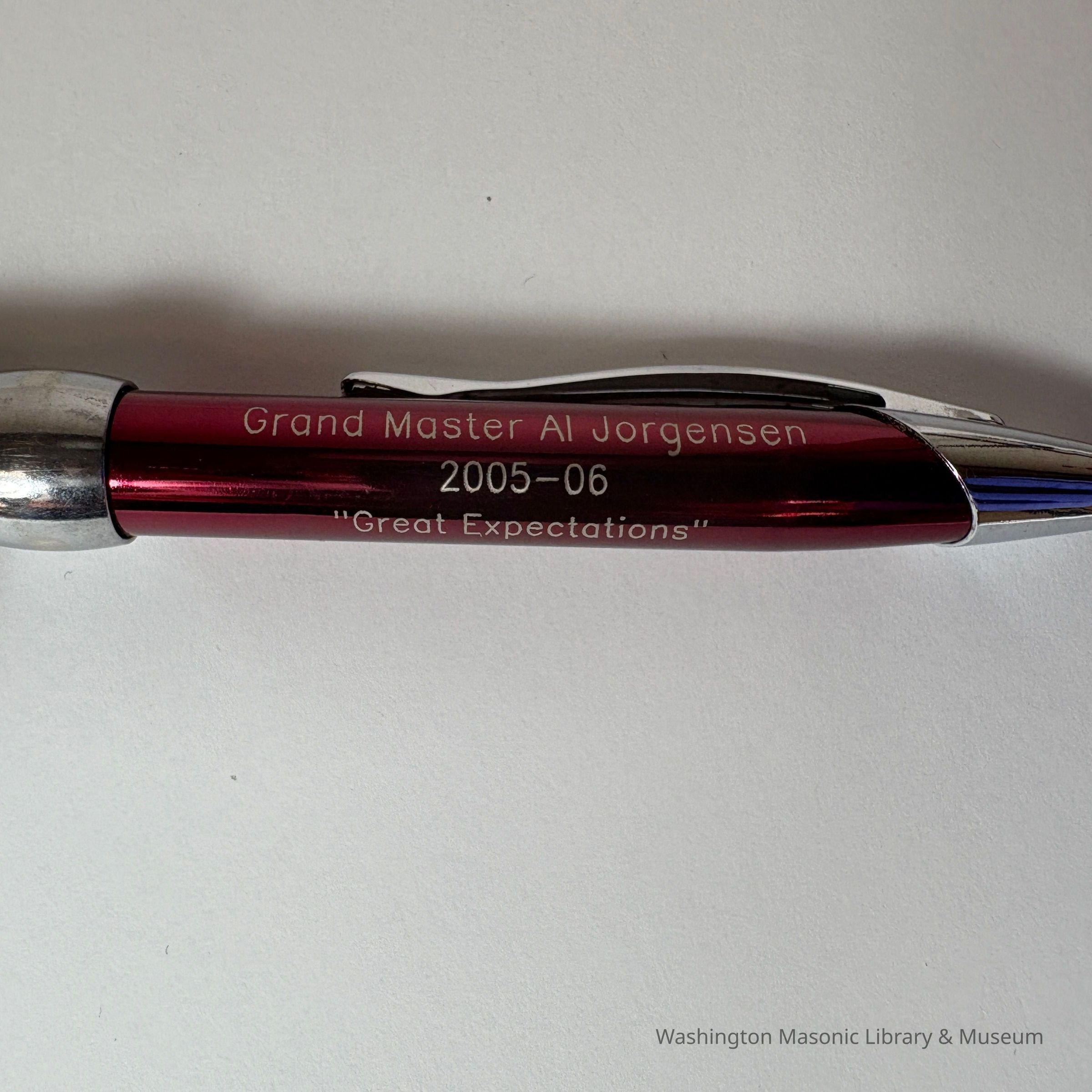 Pen: Red with silver accents. "Grand Master Al Jorgensen/2005-06/"Great Expectations"Collection