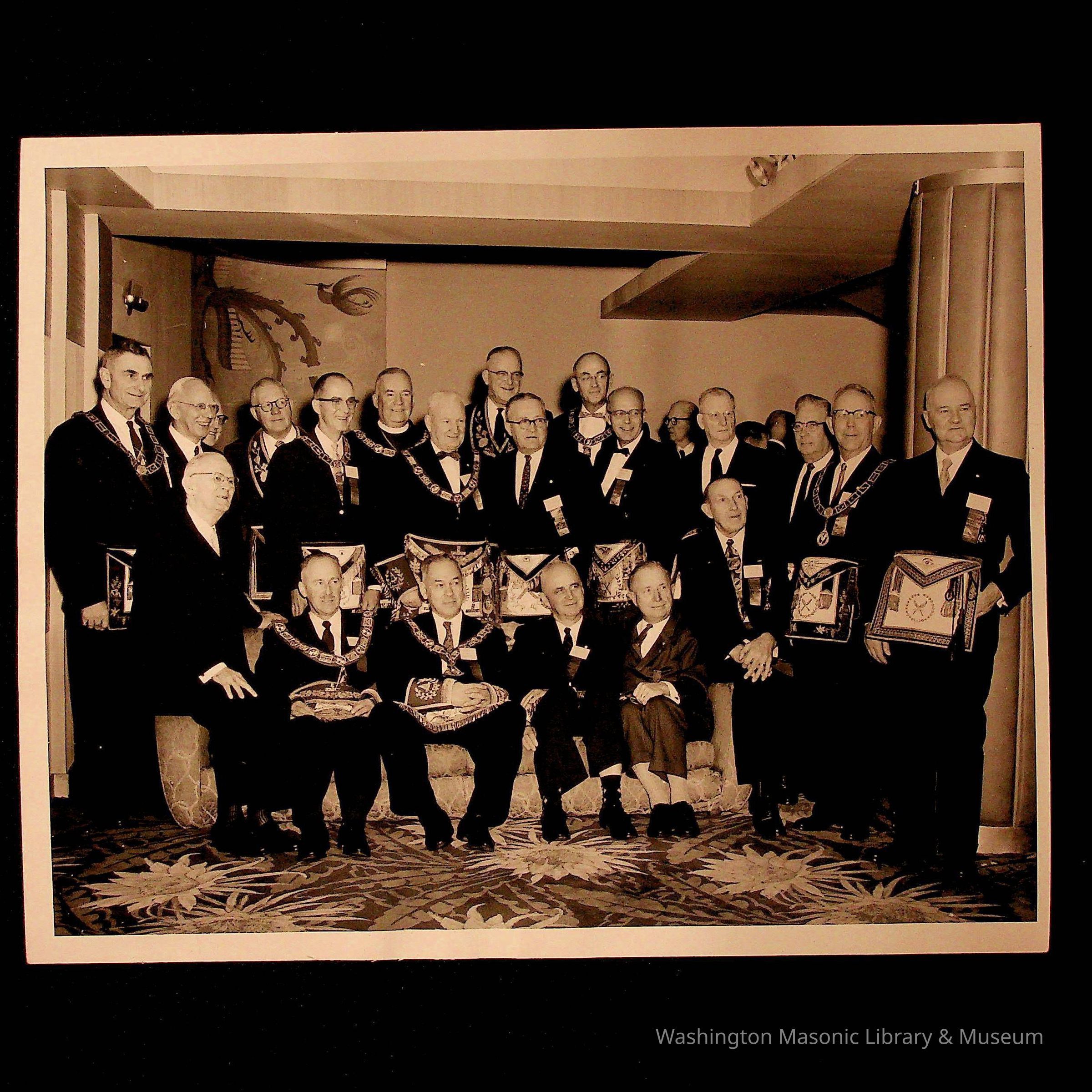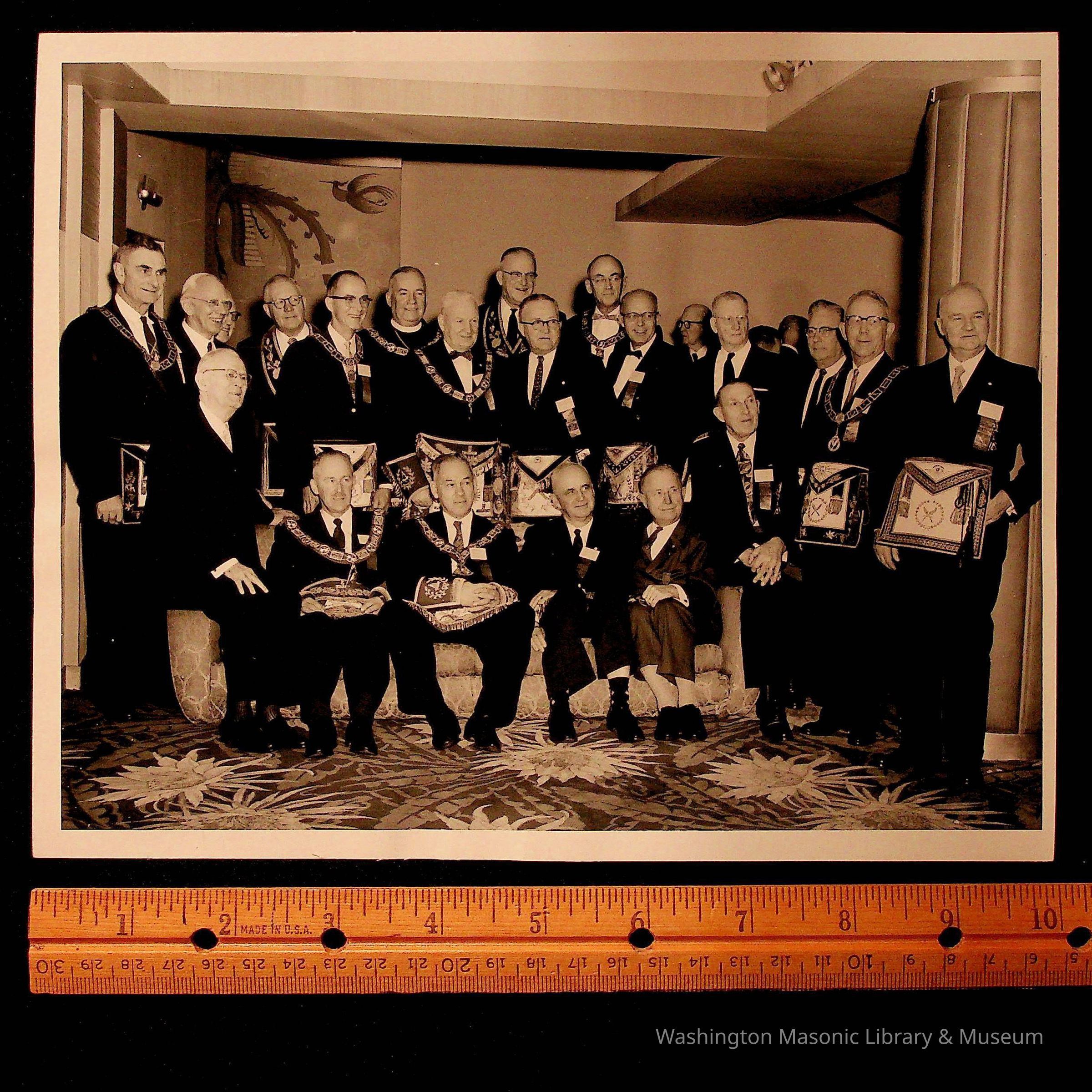 Photograph: black and white Lodge Officers and Canadian visitors. c. mid 20th century.Entry/Object ID