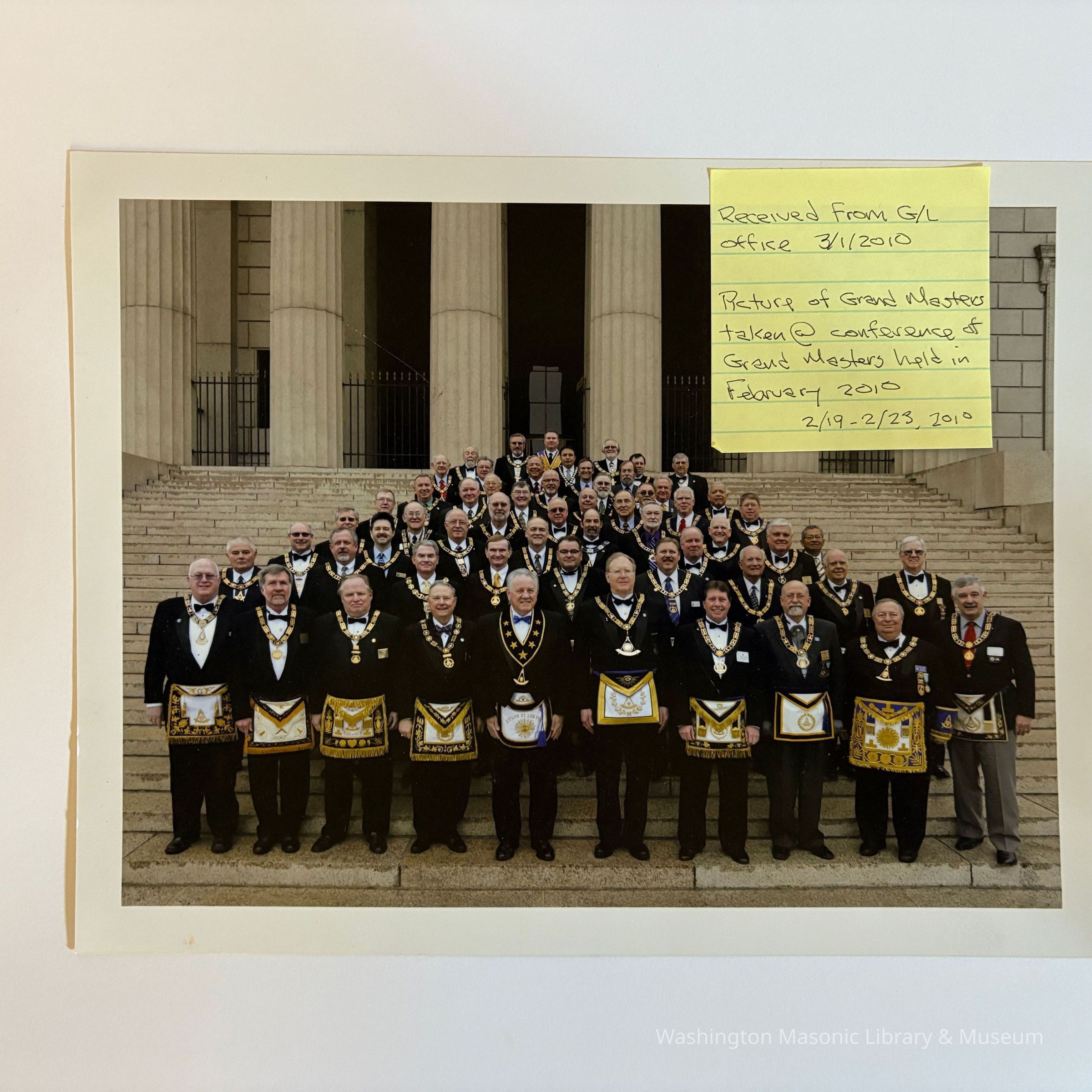 Photograph: Conference of Grand Masters taken in Washington, DC. Conference was held February 19th through 23rd, 2010. Pictured in front row is Grand Master Gale H. Kenney (2009-2010).Collection
