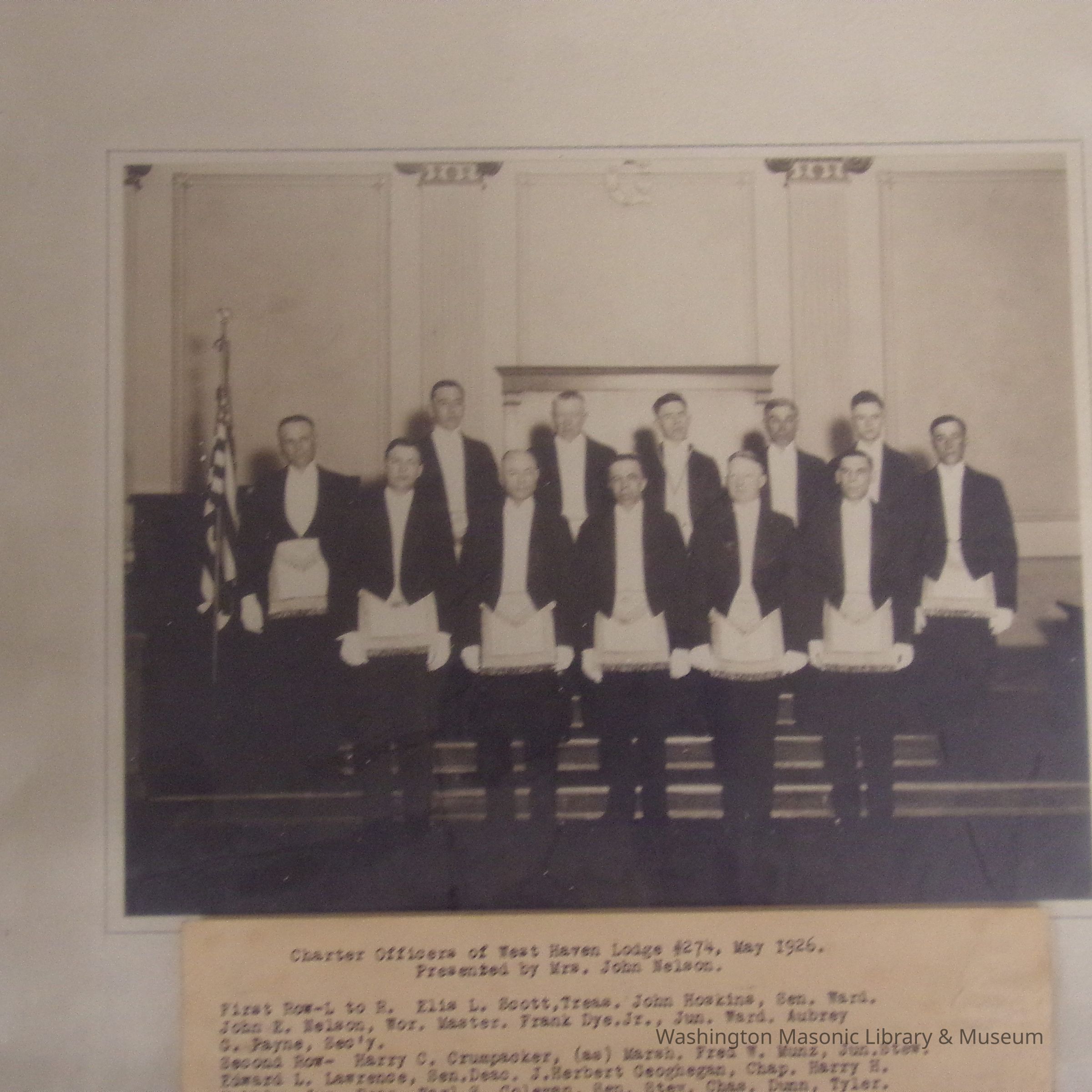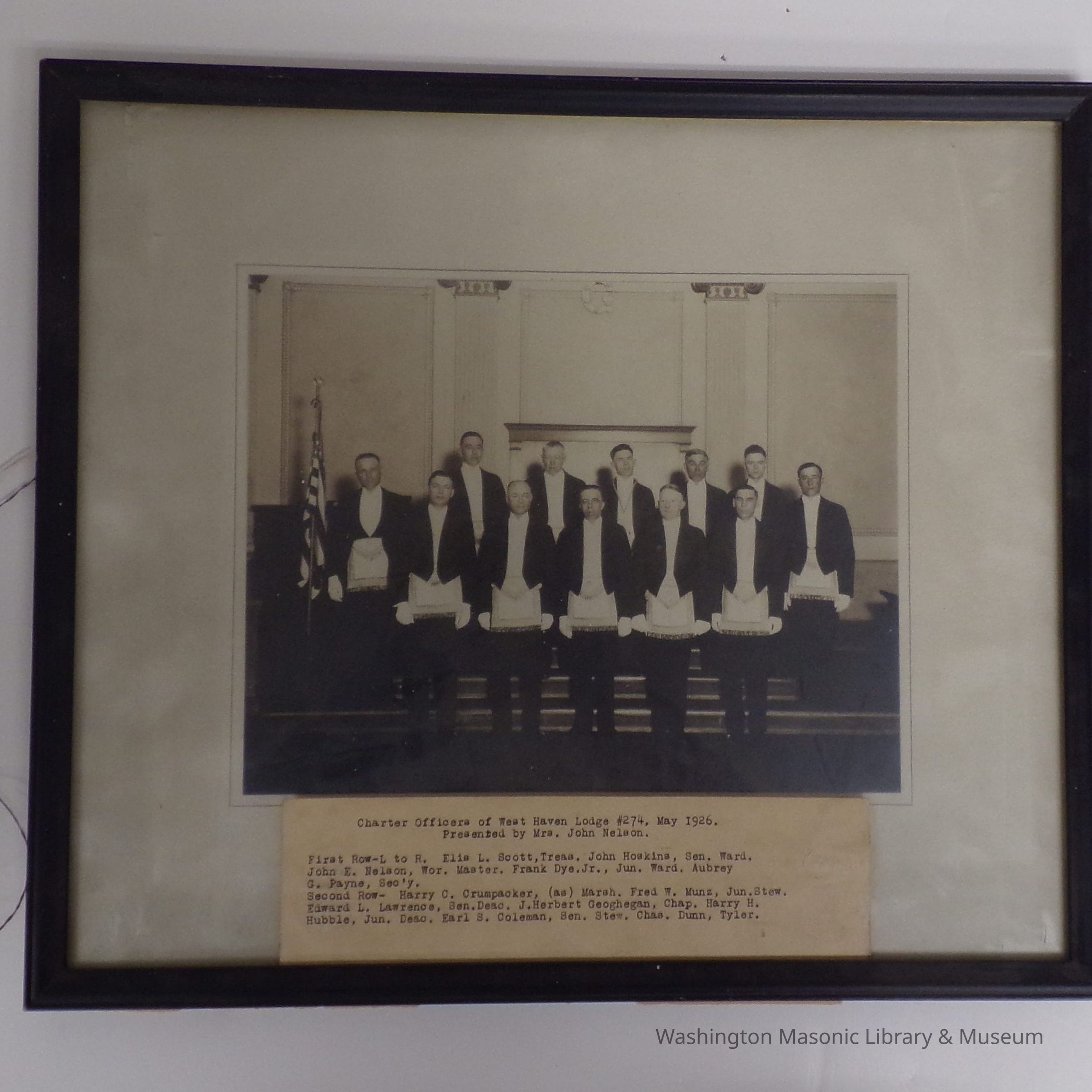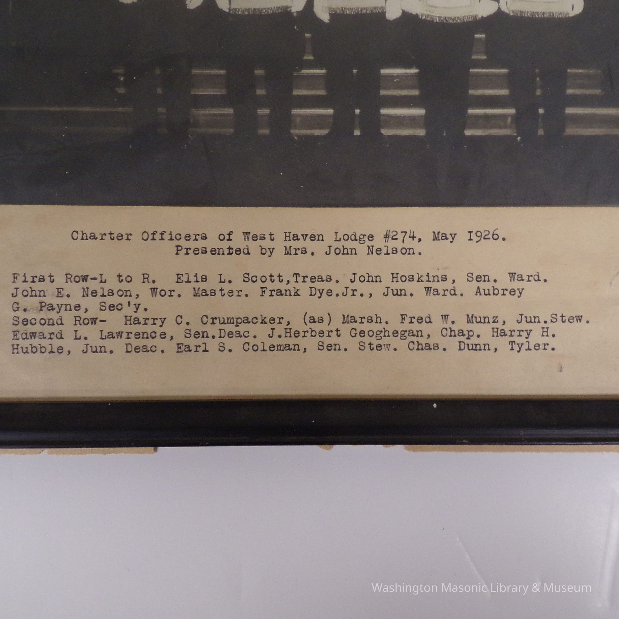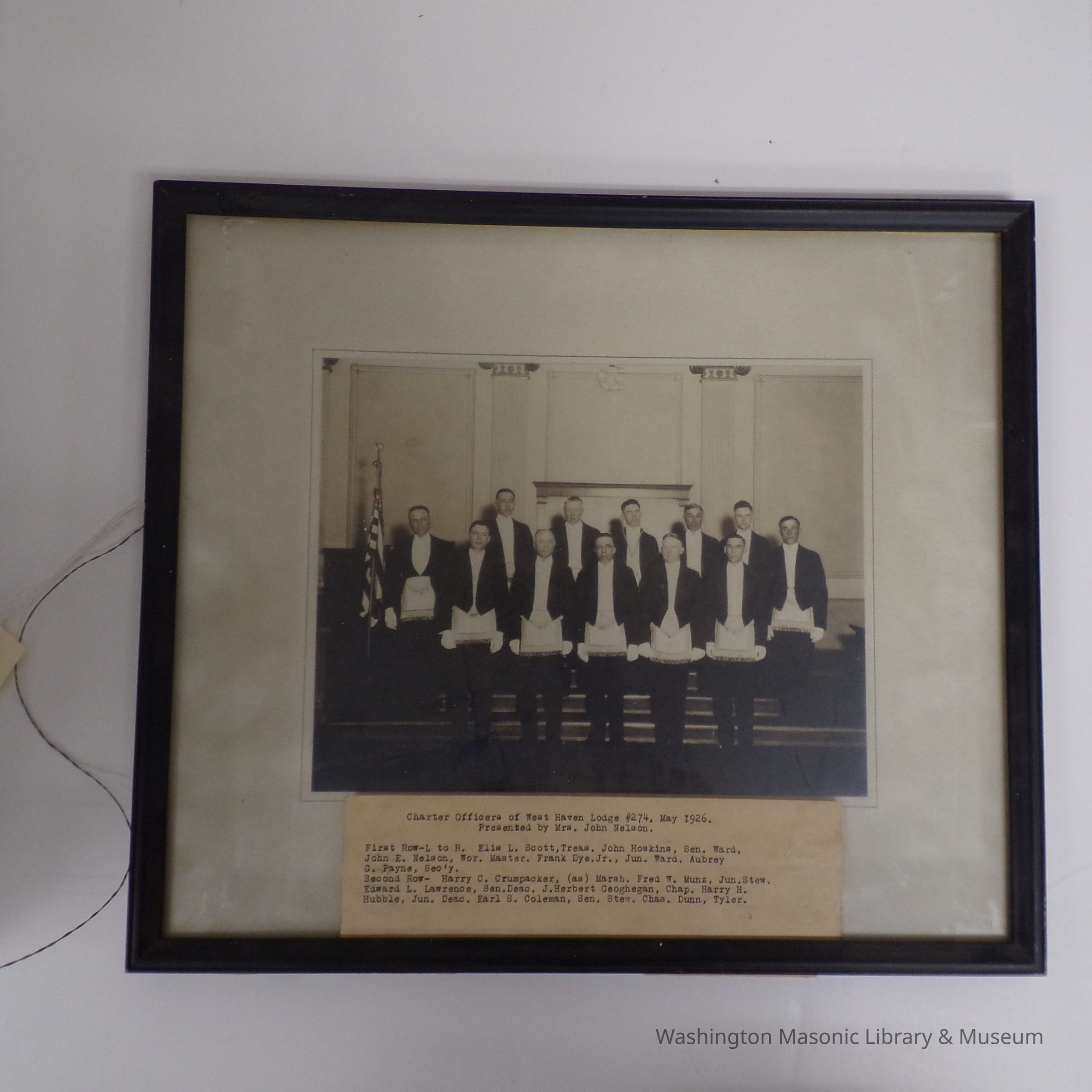 Framed. Charter officers of West Haven Lodge #274, May 1926.Dimensions