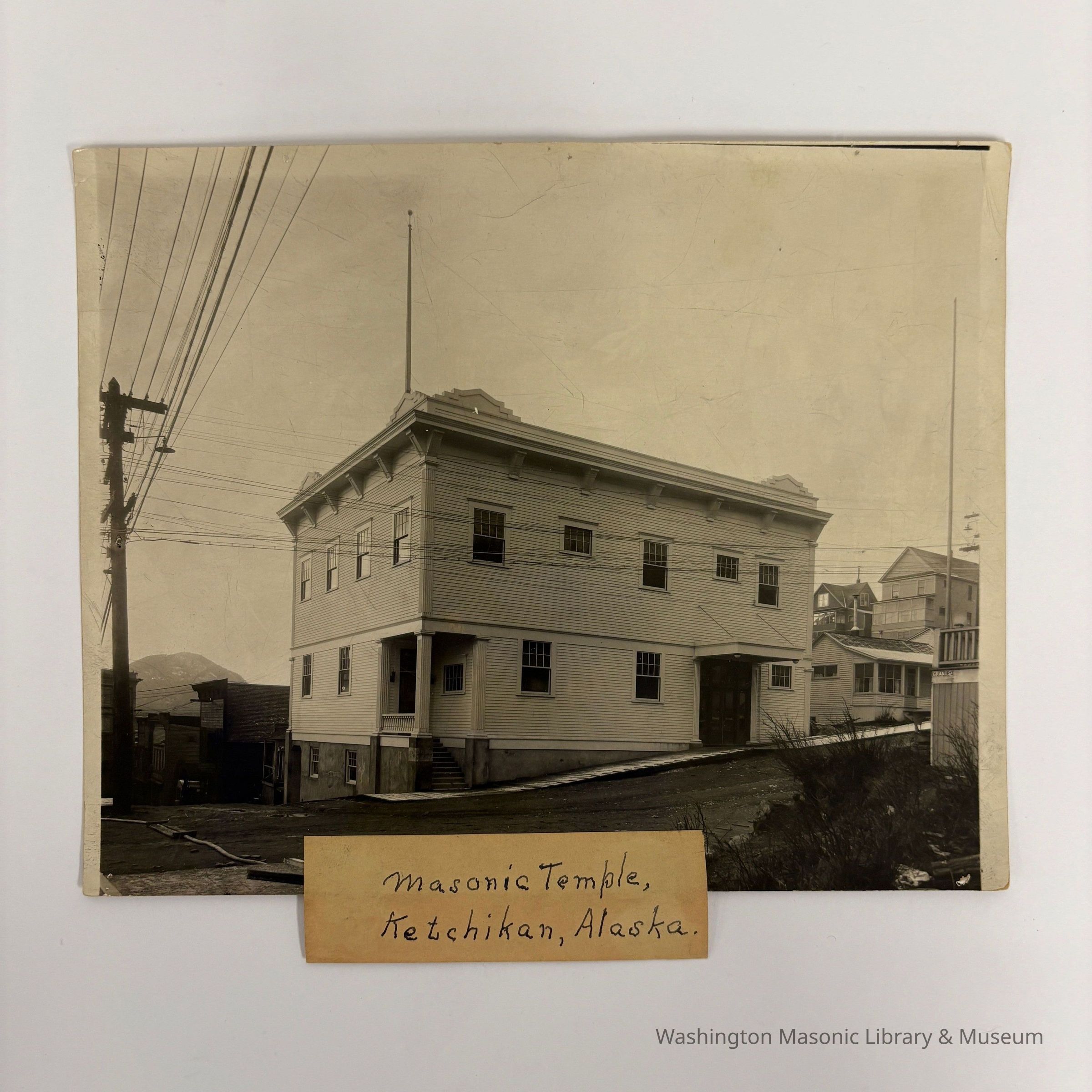 Paper glued to it reads: "Masonic Temple, Ketchikan, Alaska"Collection