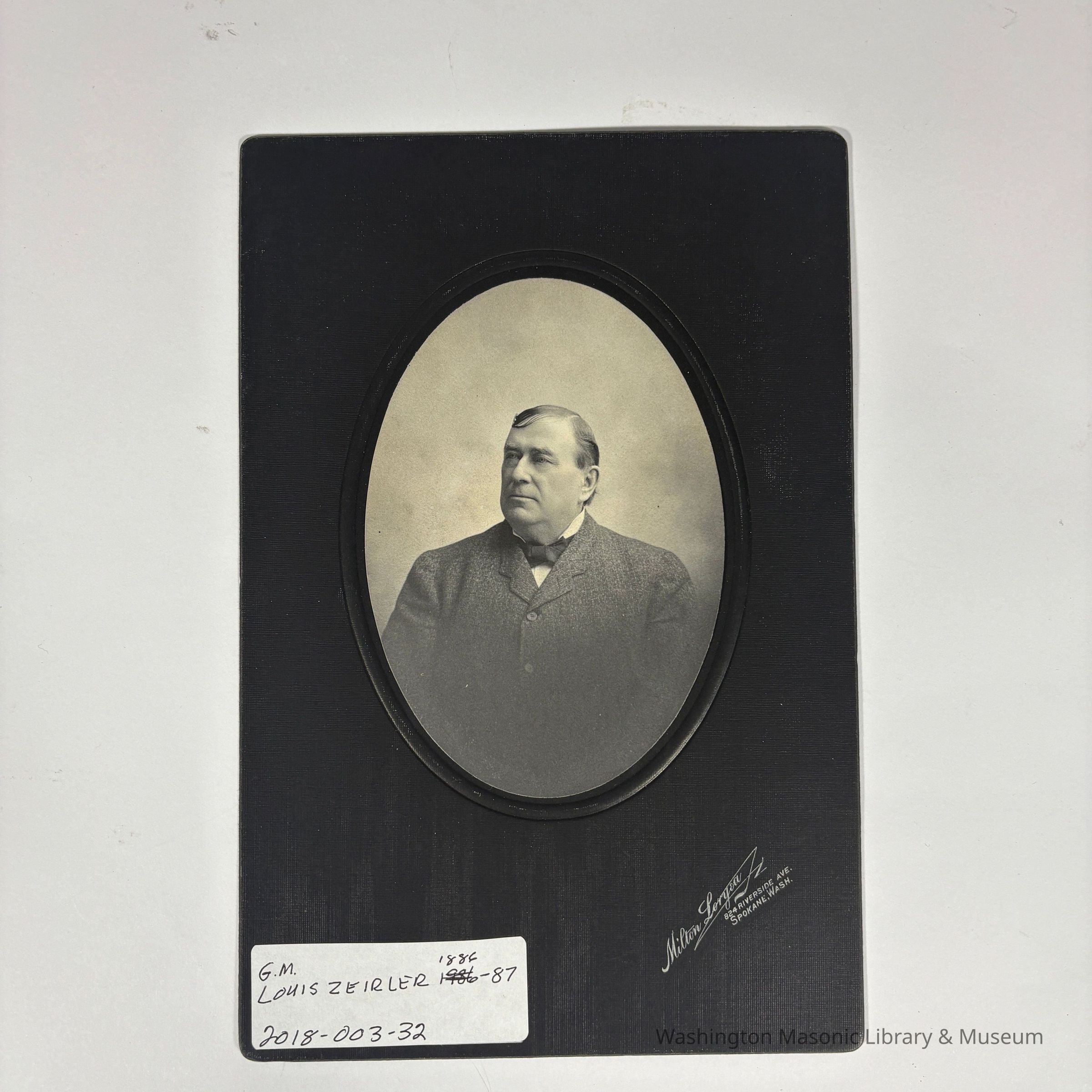 Photograph: On black matboard. PGM Louis Ziegler (1886-1887)