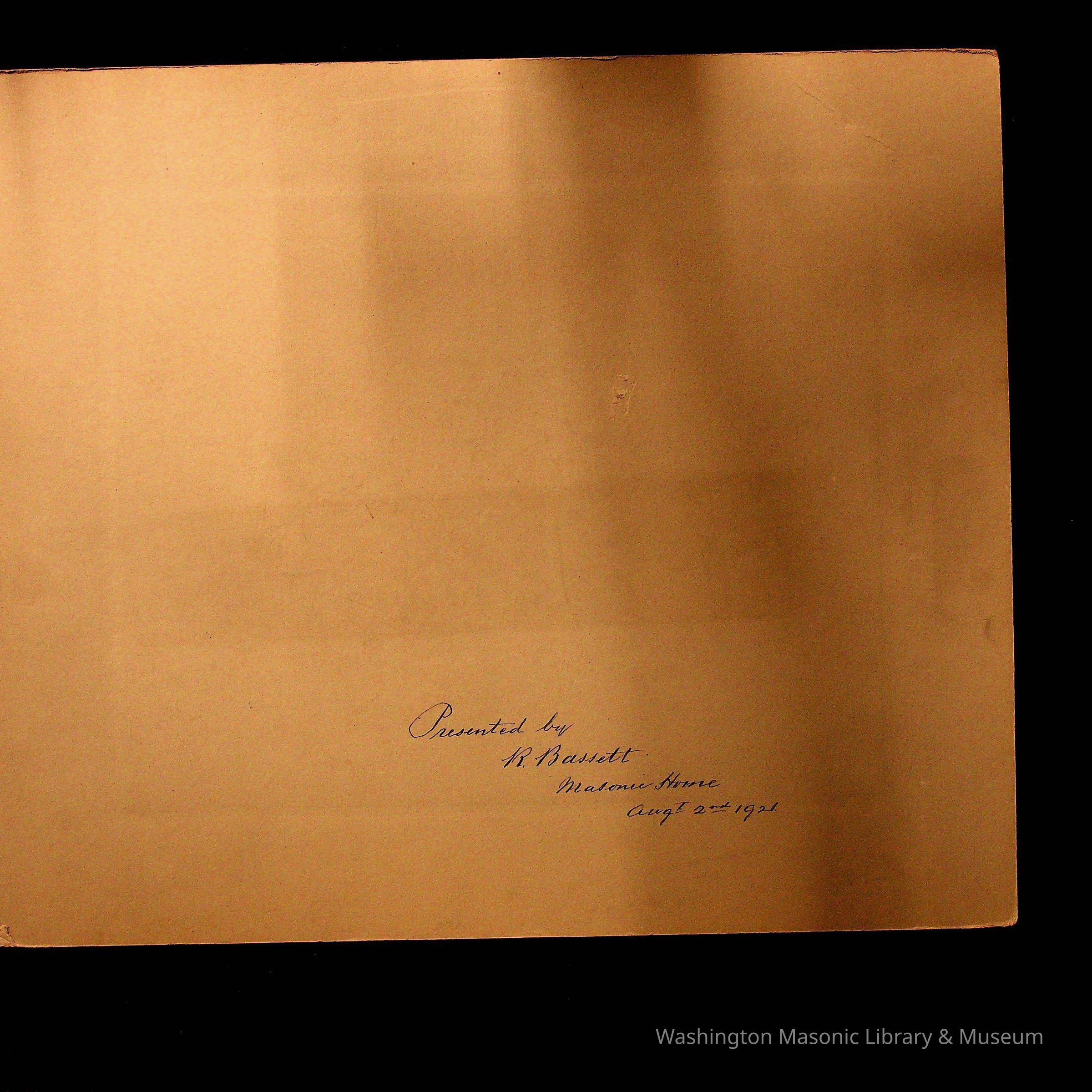 "Presented by R. Bassett, Masonic Home August 2, 1921"Collection