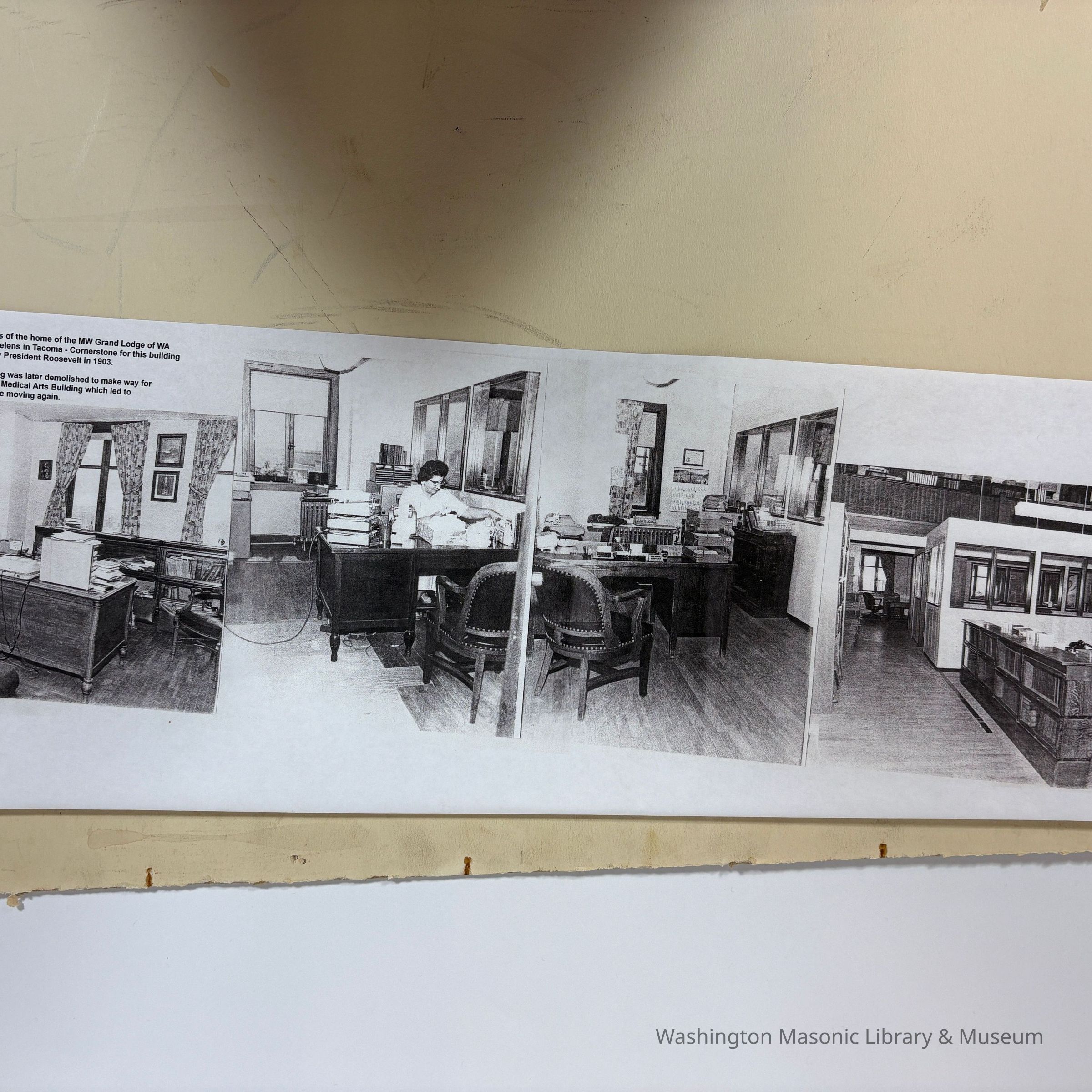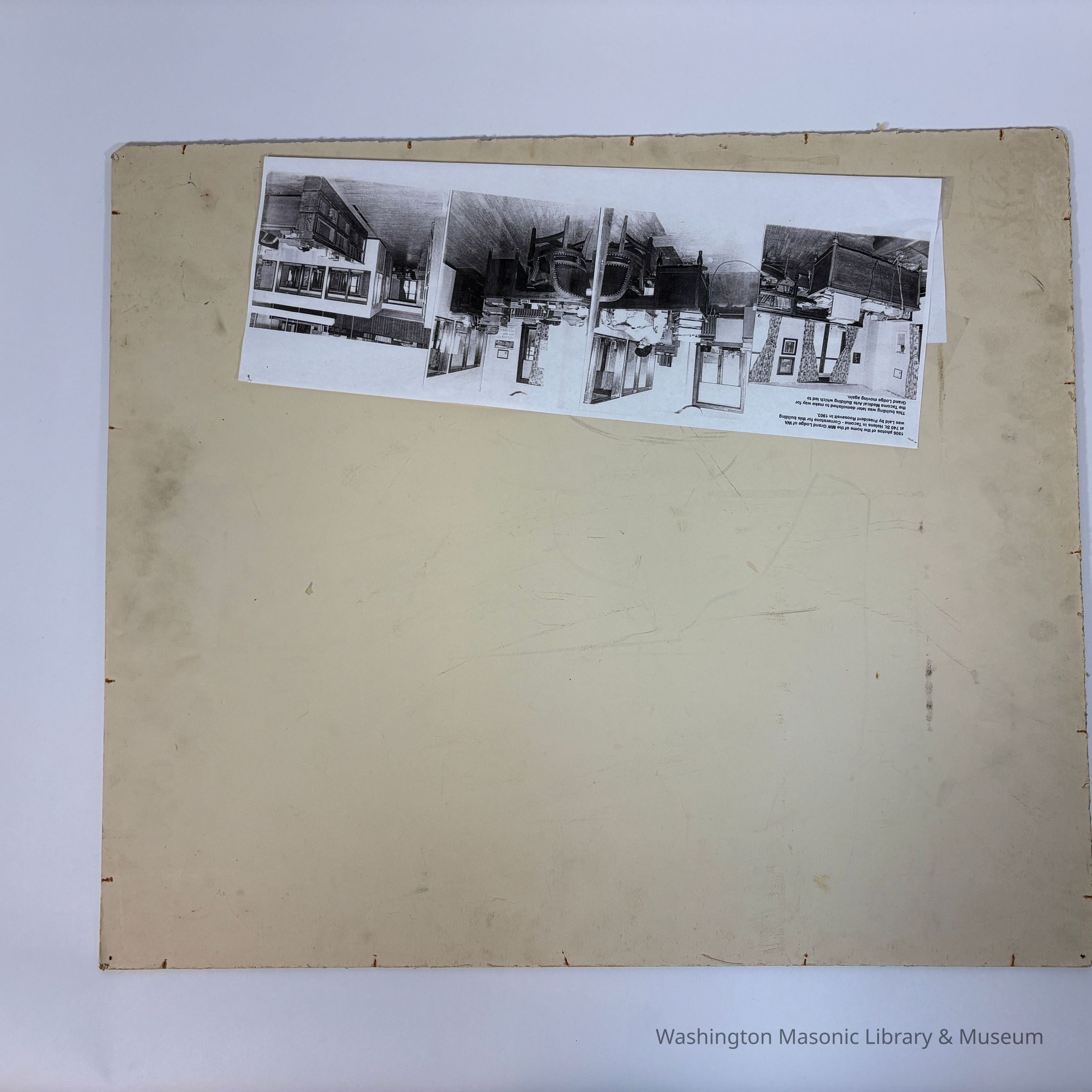 On the back is photocopied photos of 1906 inside of the MW Grand Lodge of Washington located at 740 St. Helens in Tacoma.Collection