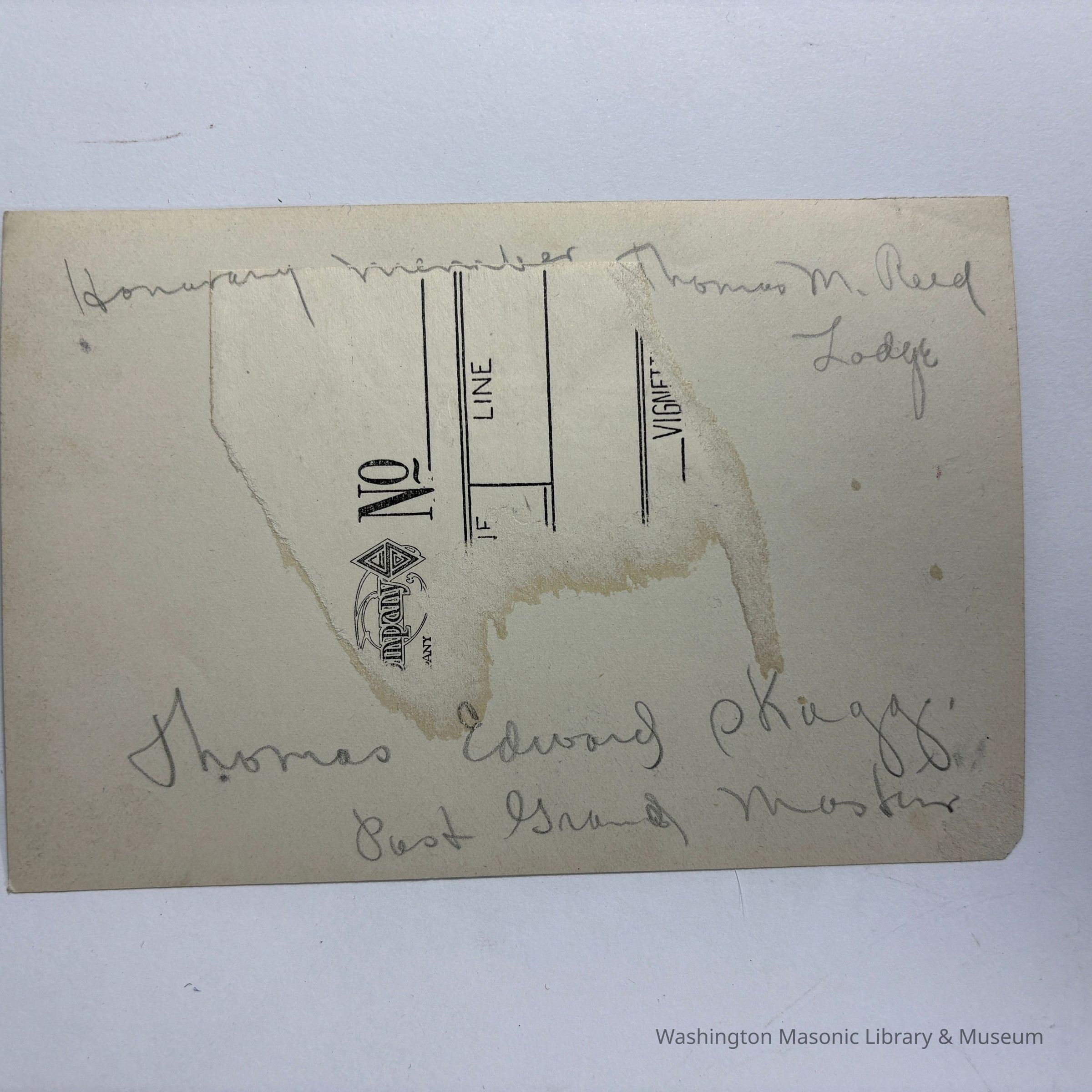 On the back it says, "Thomas Edward Skaggs, Past Grand Master, Honorary Member of Thomas M. Reed Lodge"Collection