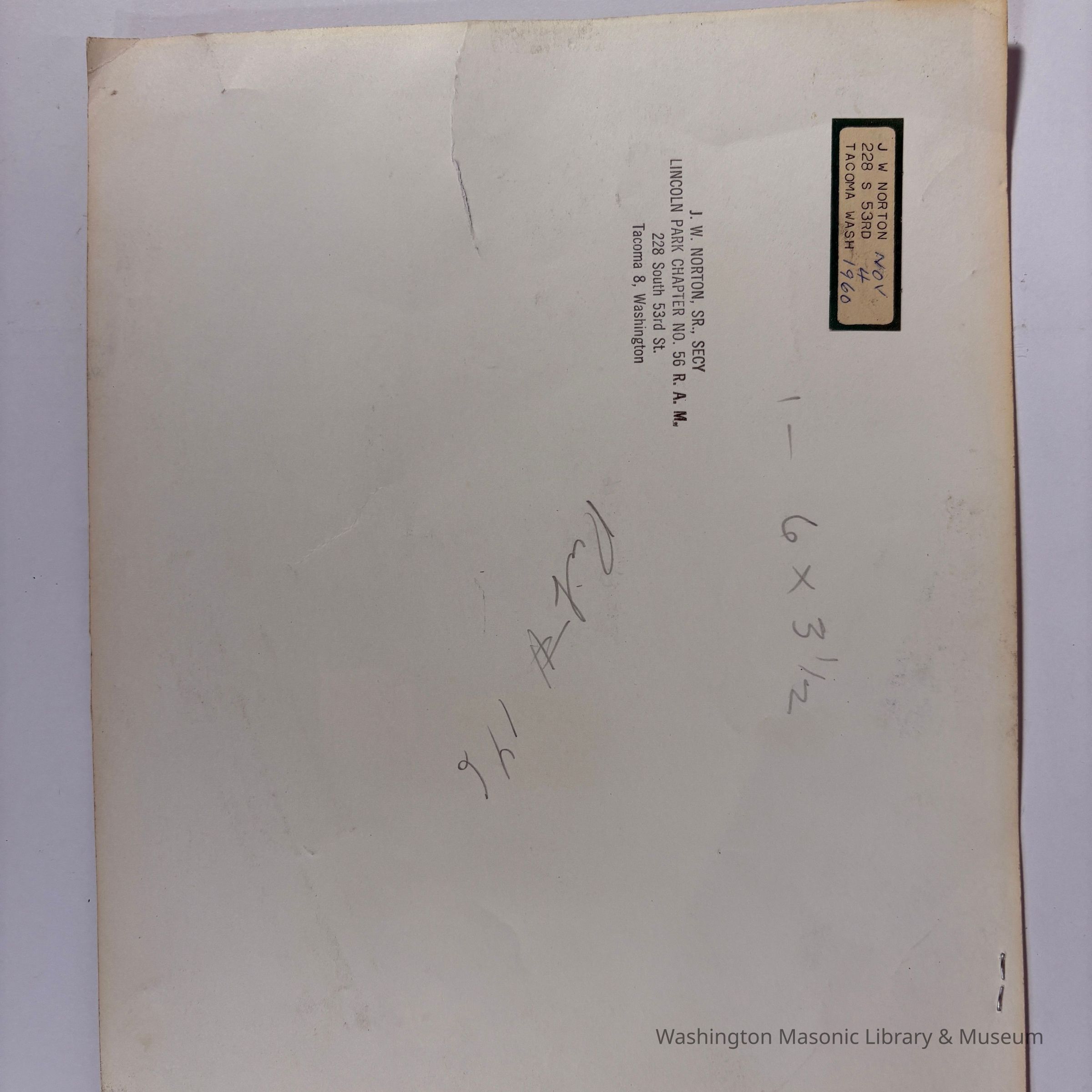 Photograph: Possibly Lincoln Park Chapter No. 56 Royal Arch Masons, per writing on the back (c.1960)