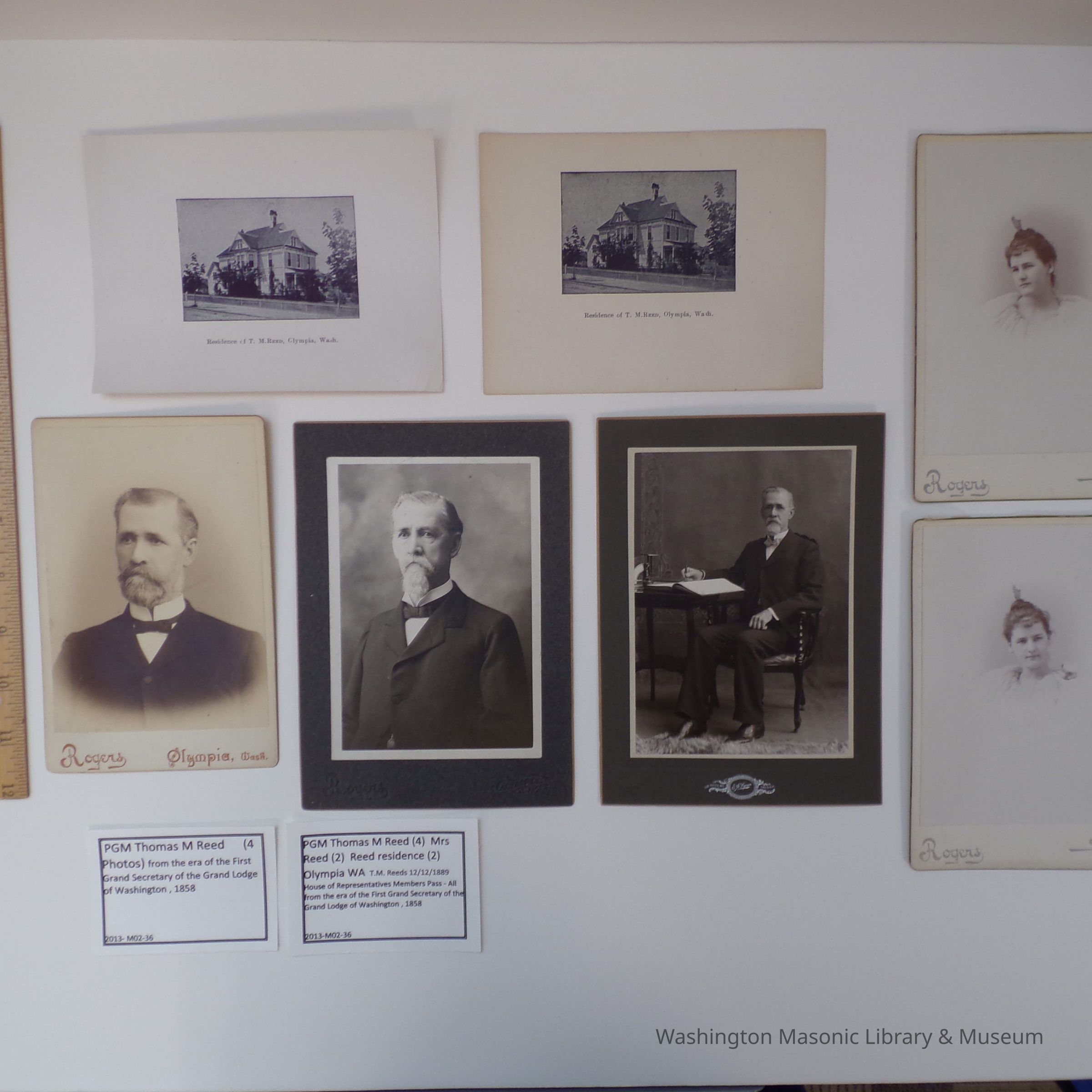 The Washington Masonic Library & Museum preserves several artifacts that belonged to MWB Thomas Reed, including his eye glasses, a surgical knife he used as a letter opener, photographs, and handwritten correspondences as Grand Secretary.