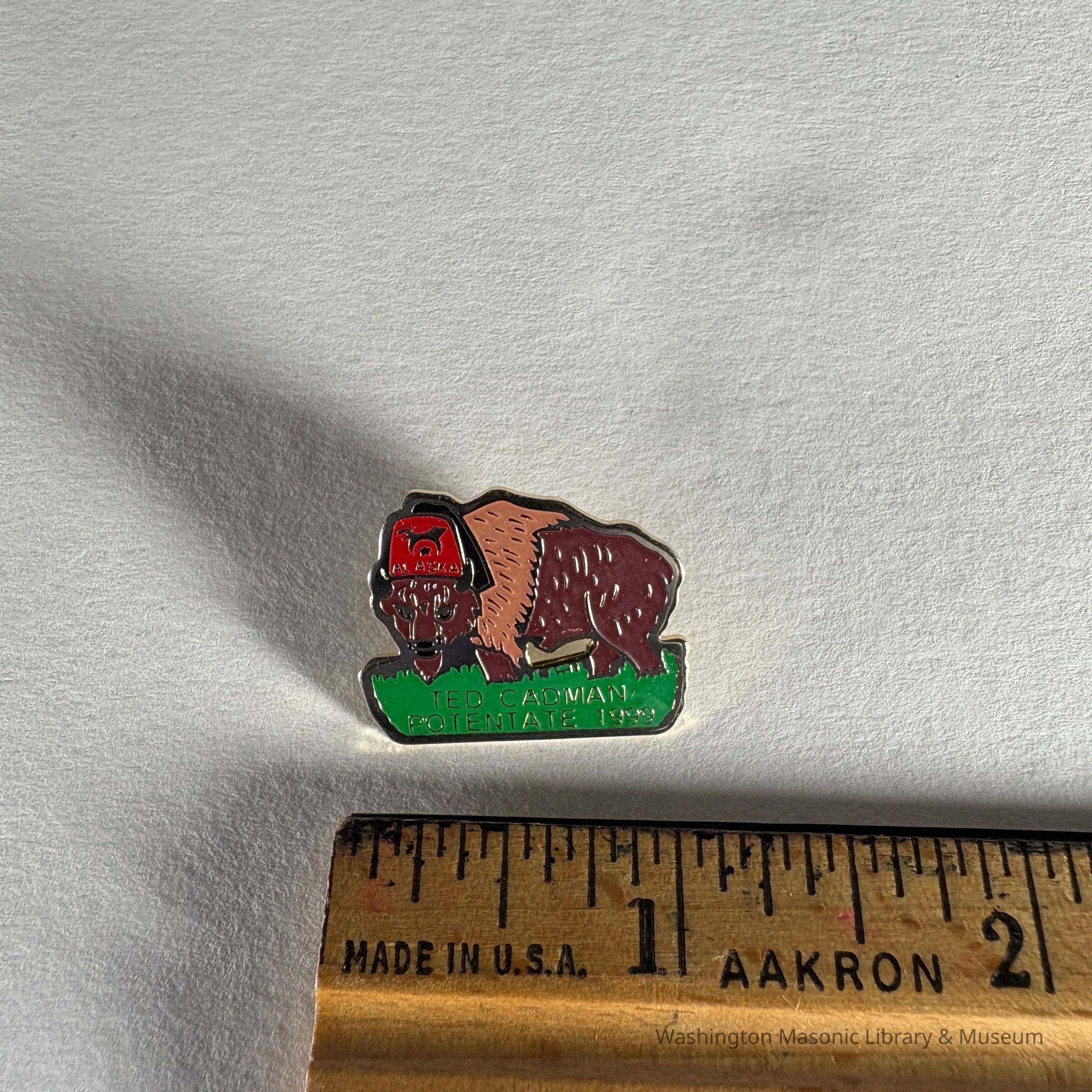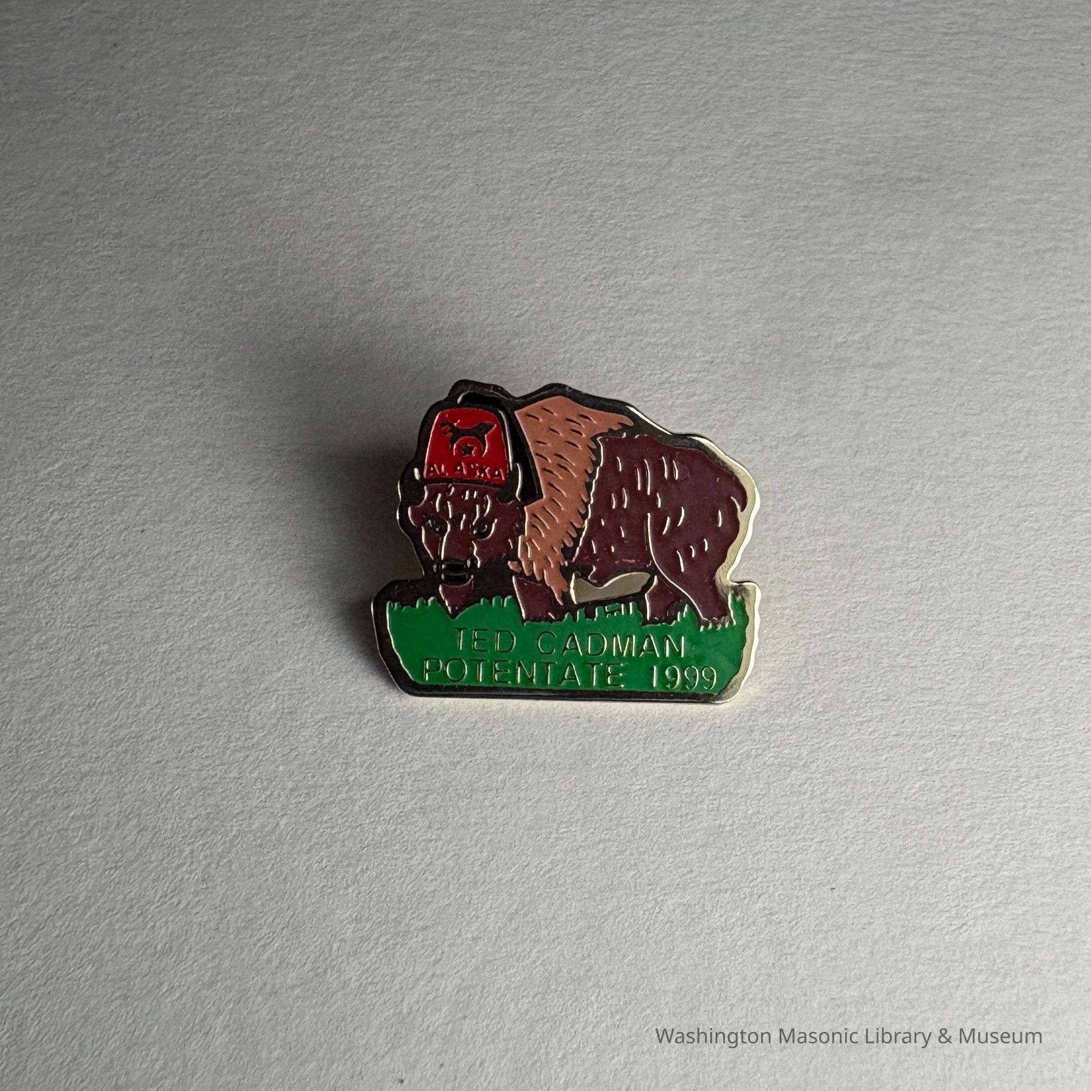 Pin: Bison wearing a fez. "Alaska/Ted Cadman/ Potentate 1999". Belonged to PGM James O. Wood ( 1999)Collection