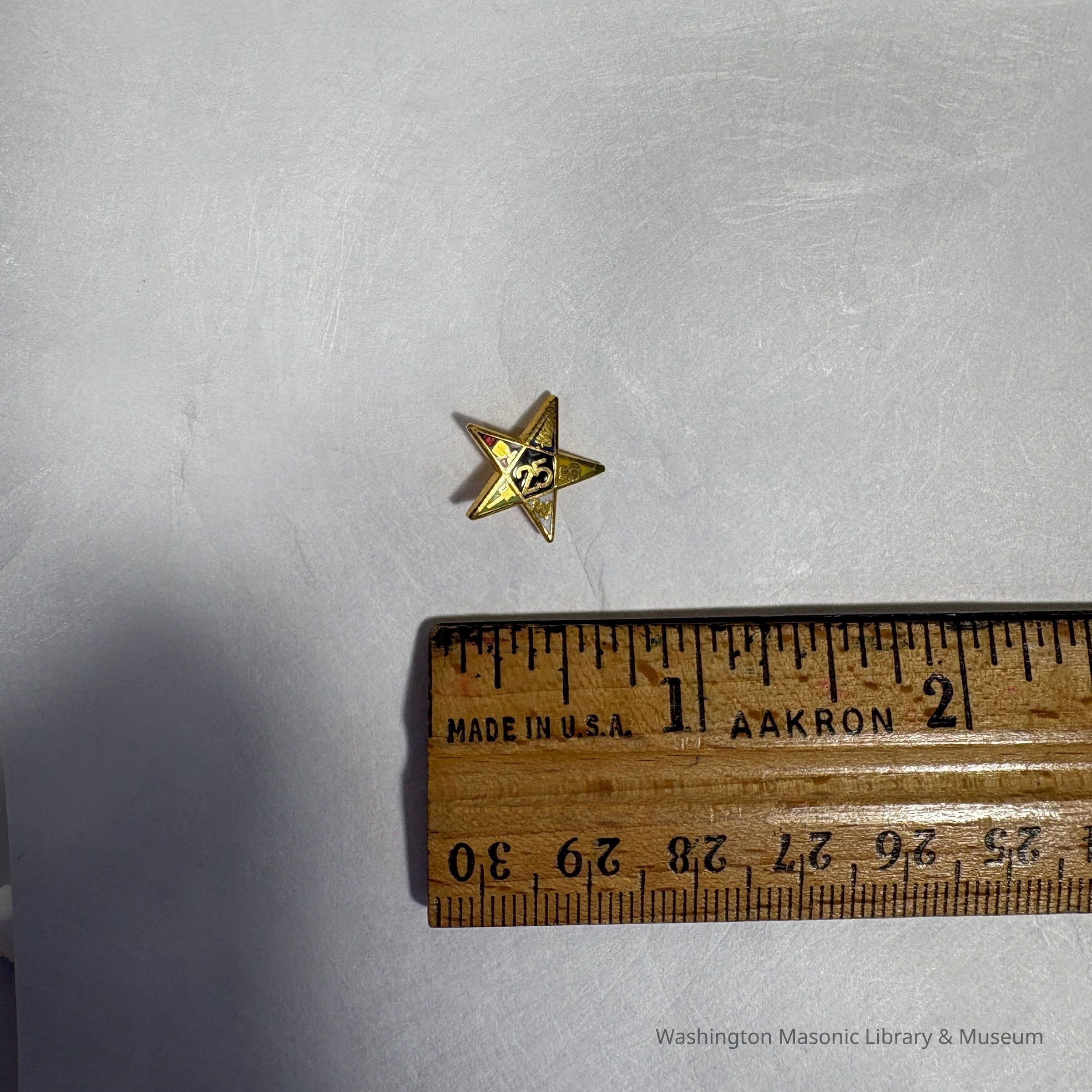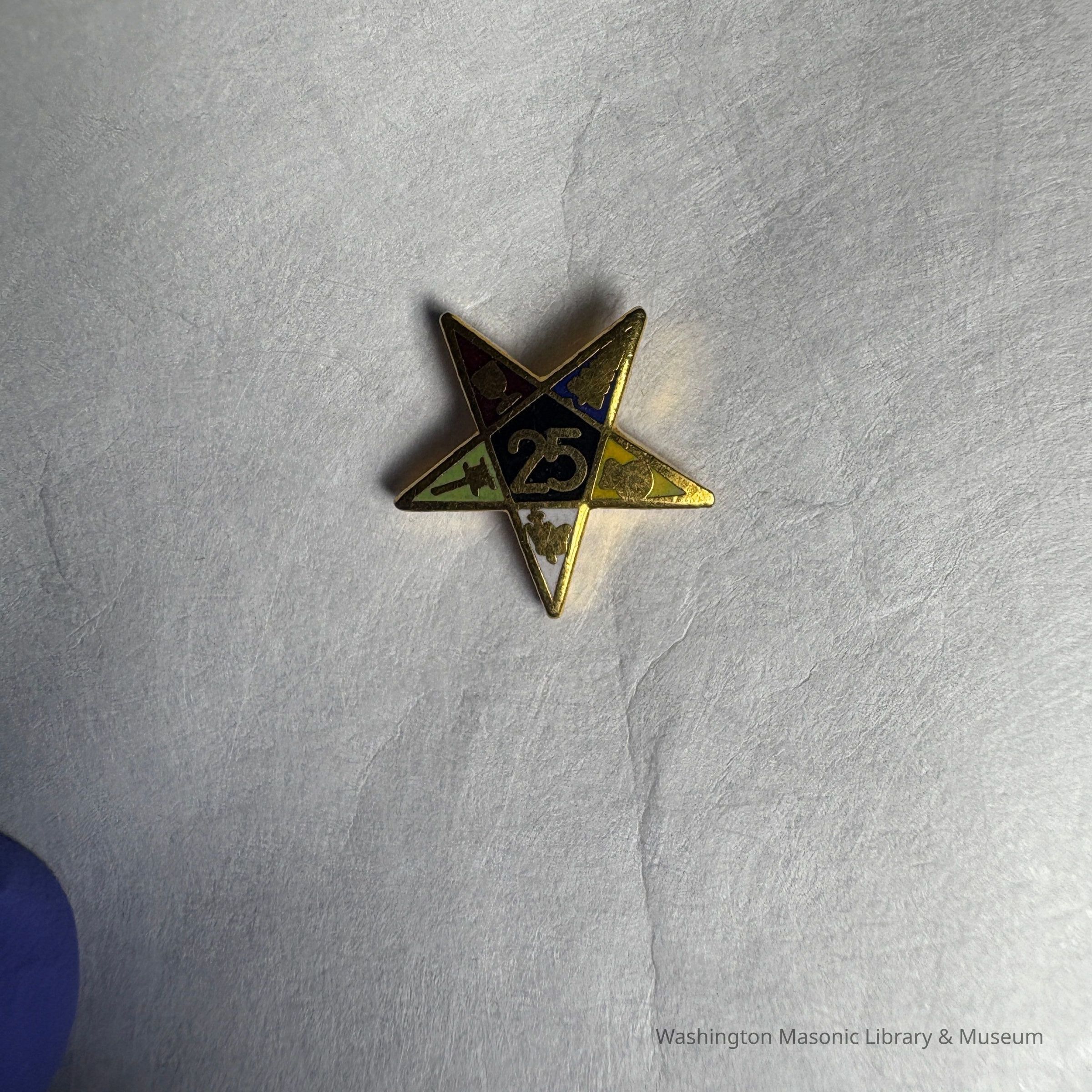 Pin: Eastern Star 25 Year Pin. Gold Star shape. Belonged to Marion Feaster. c.20th Century.Entry/Object ID