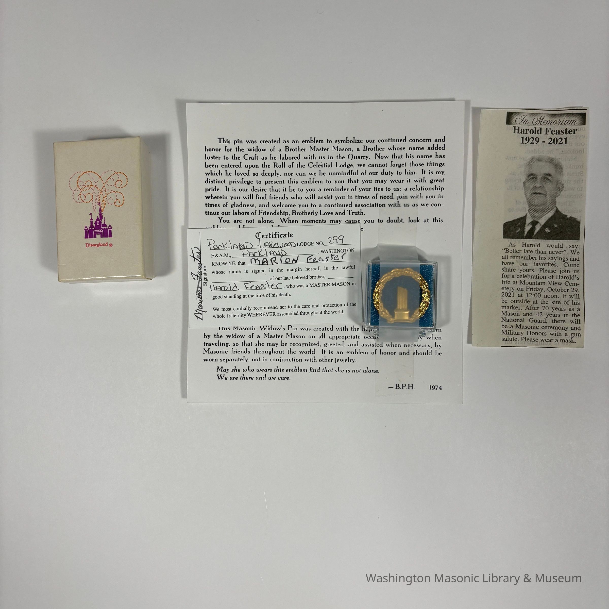 Pin: Eastern Star 25 Year Pin. Gold Star shape. Belonged to Marion Feaster. c.20th Century.Create Date