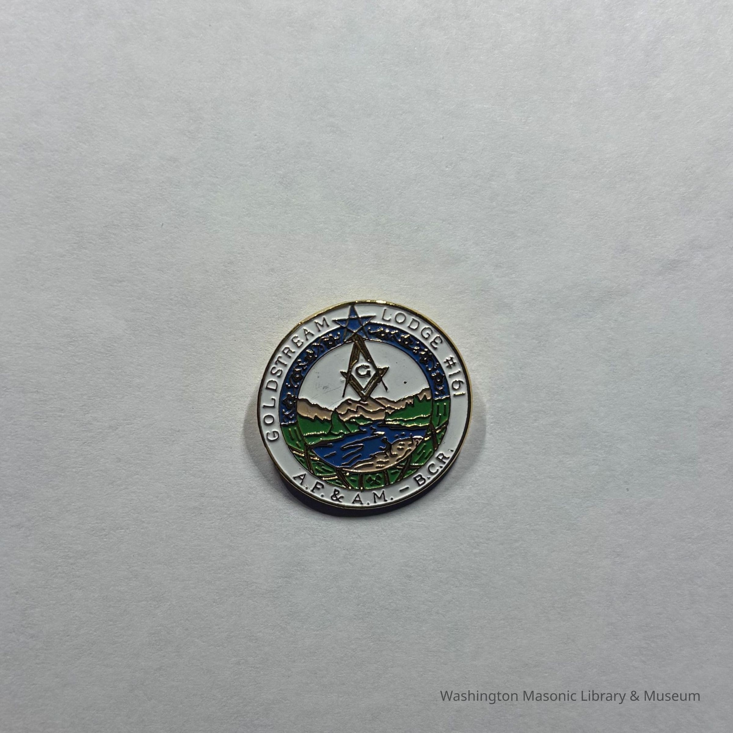 Pin: "Goldstream Lodge #161, A.P. &A.M-B.C.R" Collected by PGM Sam Roberts (c. 2015)Entry/Object ID