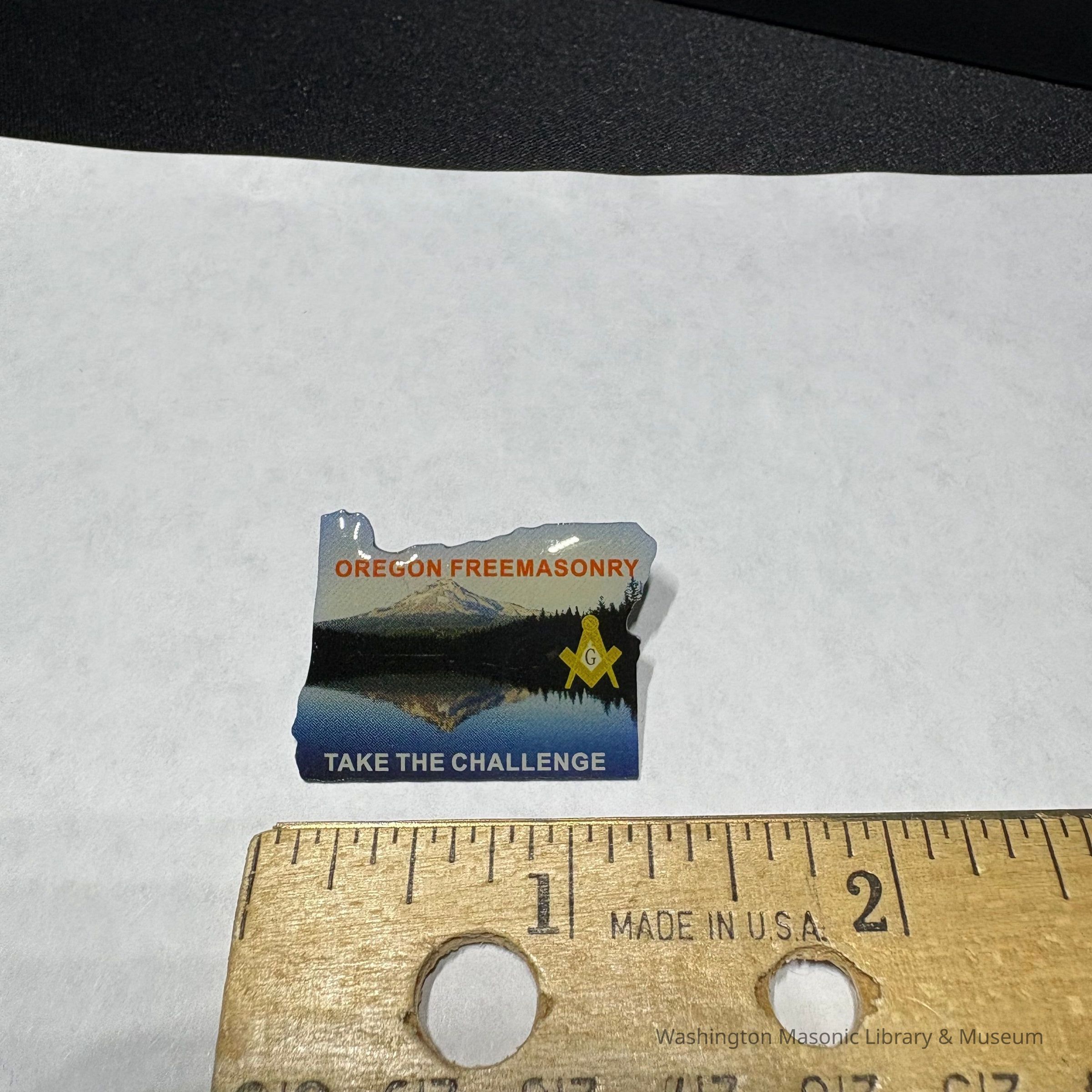 Pin: Grand Lodge of Oregon. "Oregon Freemasonry: Take the Challenge" Collected by PGM Sam Roberts (c.2015)Collection