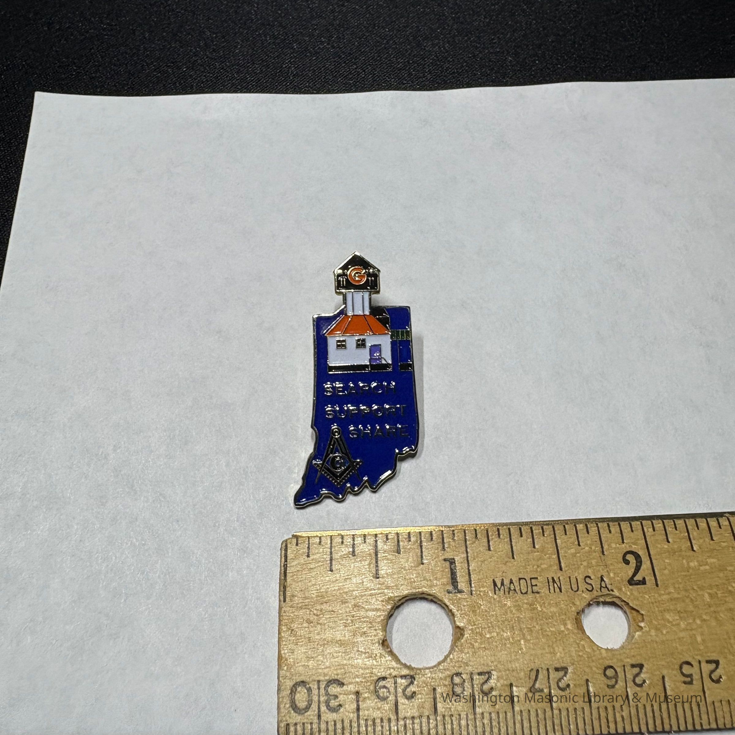 Pin: In the shape of a lighthouse sitting on the outline of the state of Indiana. "Search, Support, Share" Collected by PGM Sam Roberts (c.2015)Collection