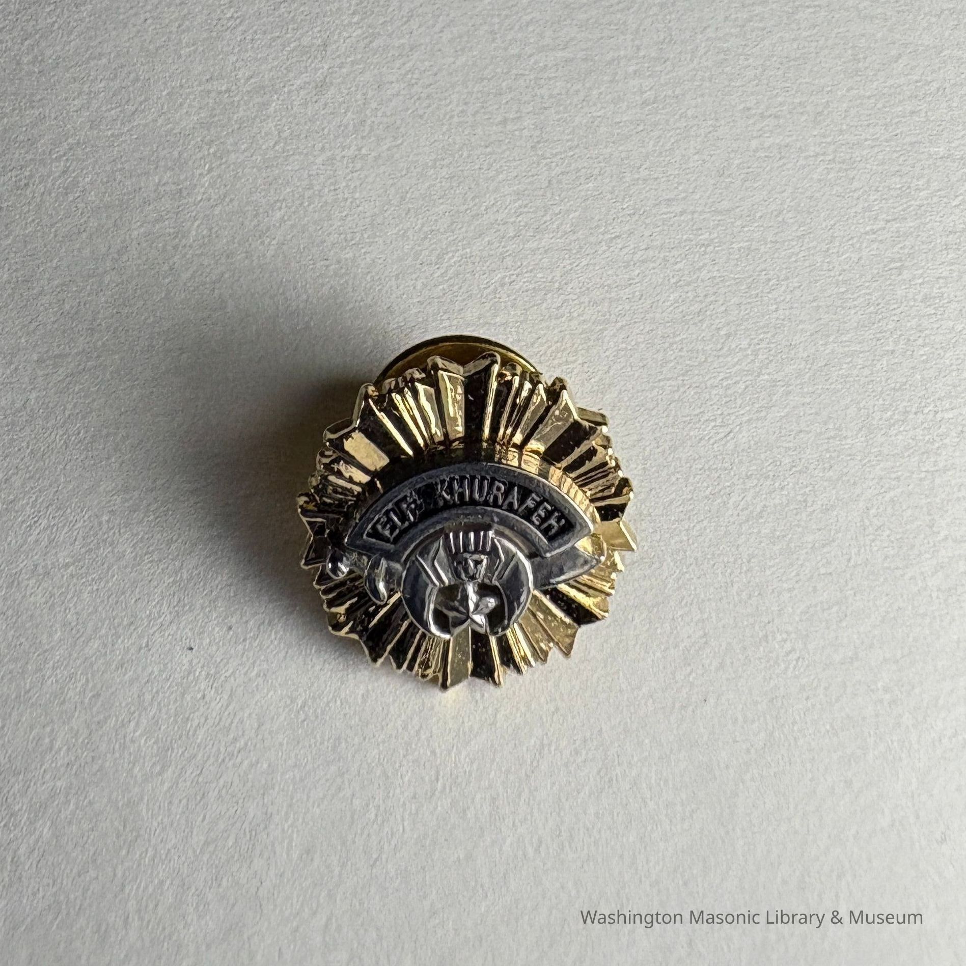 Pin: Shriner symbols. "Elf Khurafeh" Belonged to PGM James O. Wood (c. 1999)Entry/Object ID