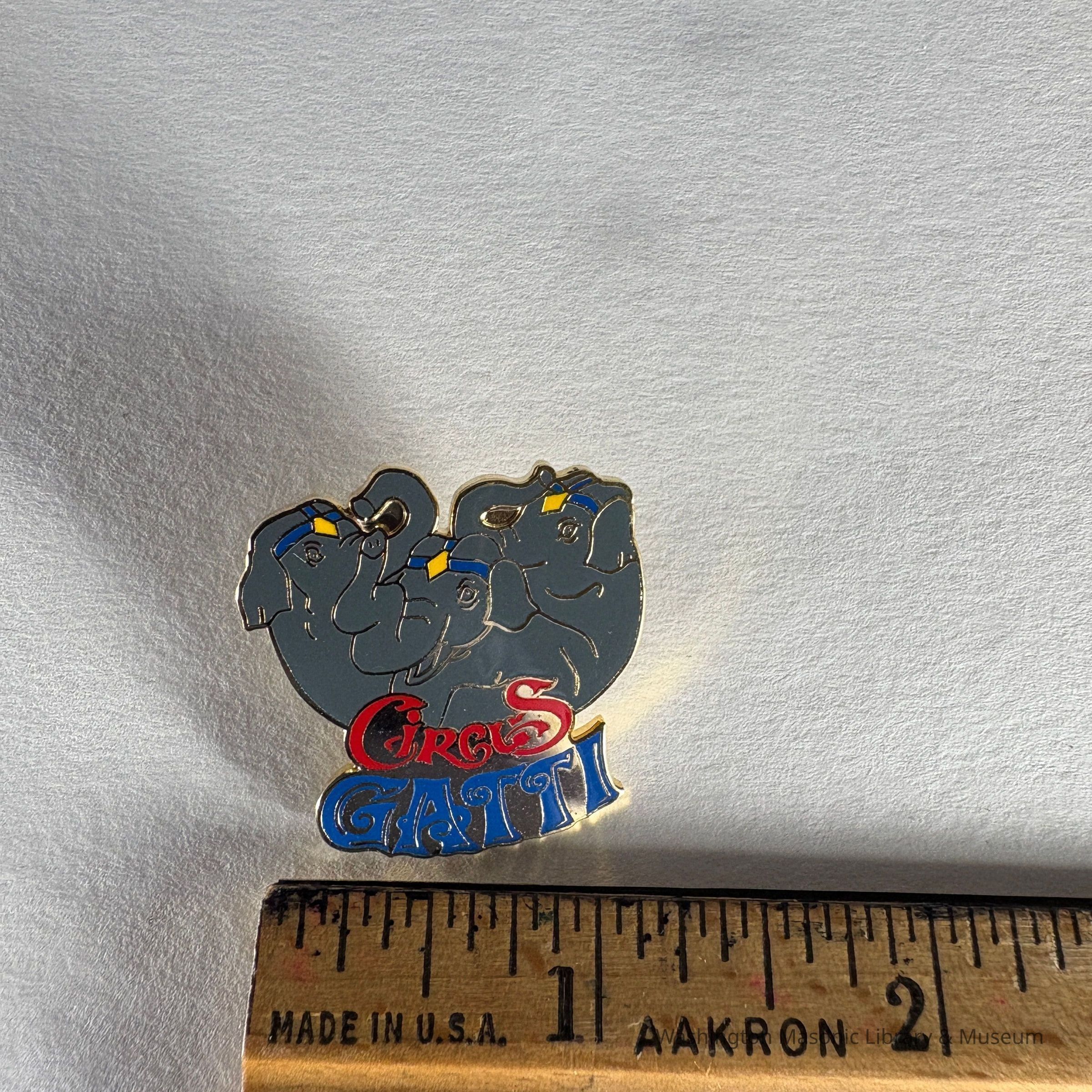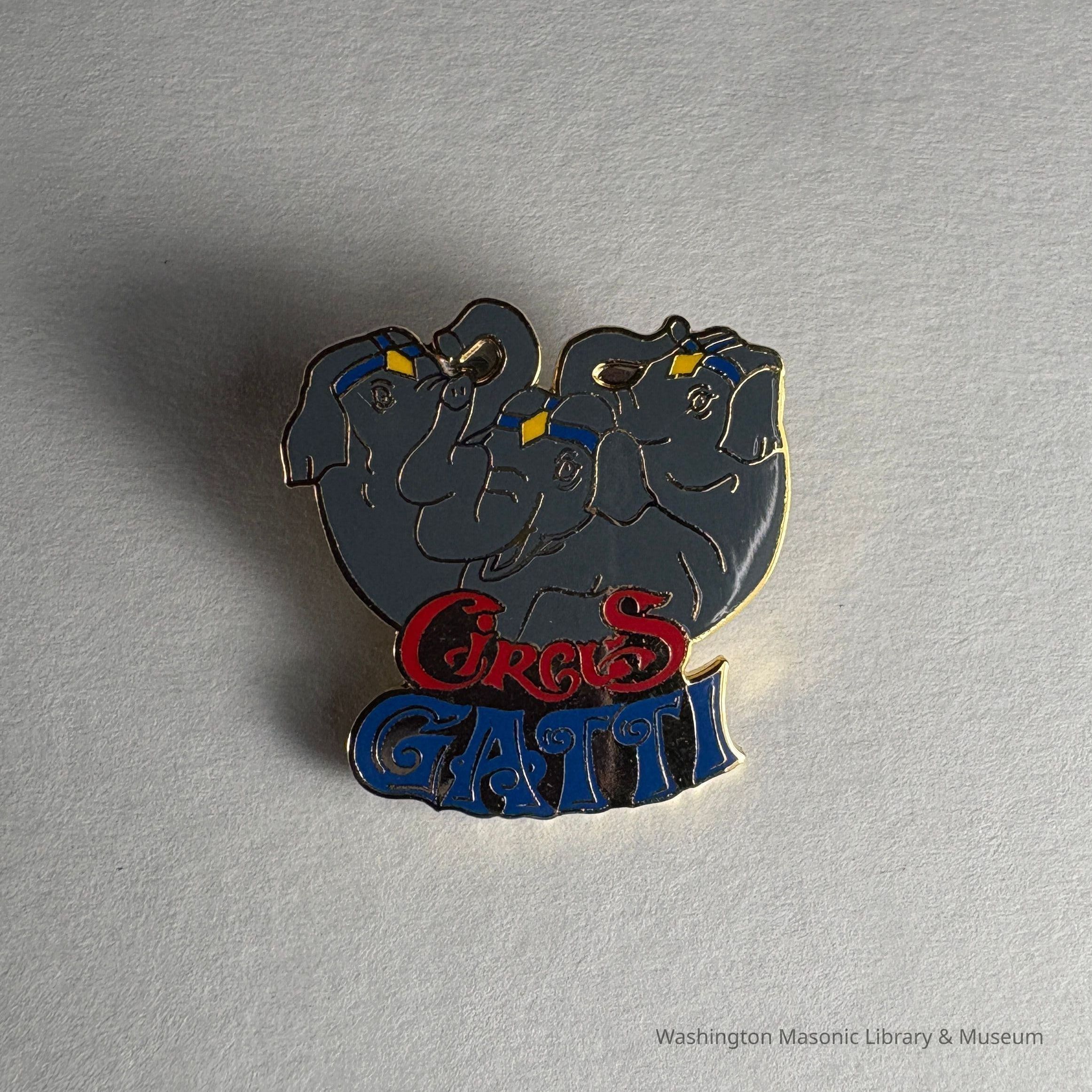 Pin: Three Elephants wearing headbands. "Circus Gatti" Belonged to PGM James O. Wood (c. 1999)Entry/Object ID
