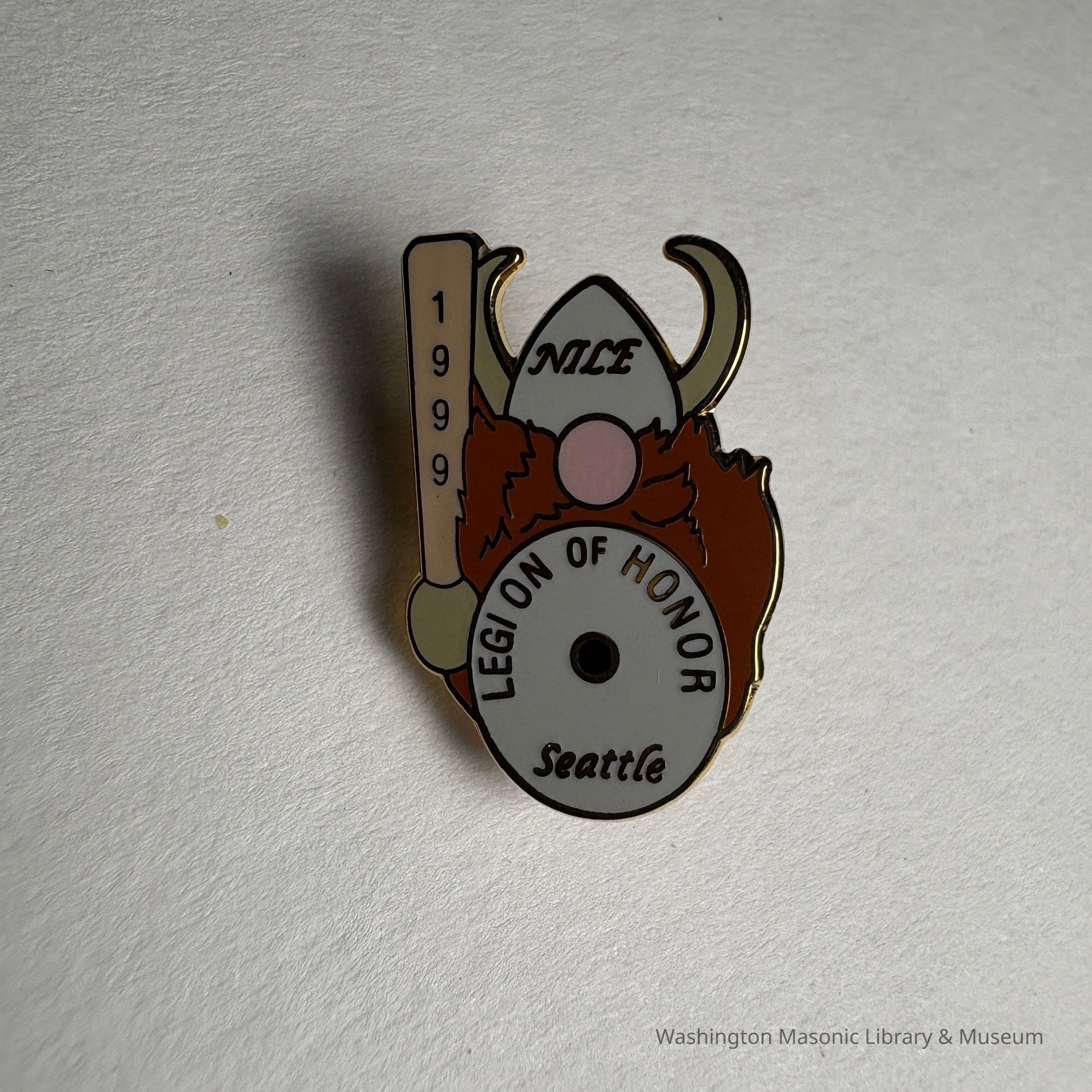 Pin: Viking wearing a viking hat and holding club. "Nile/Legion of Honor/Seattle/1999" Found in a cash of pins donated by PGM James O. Wood.Collection