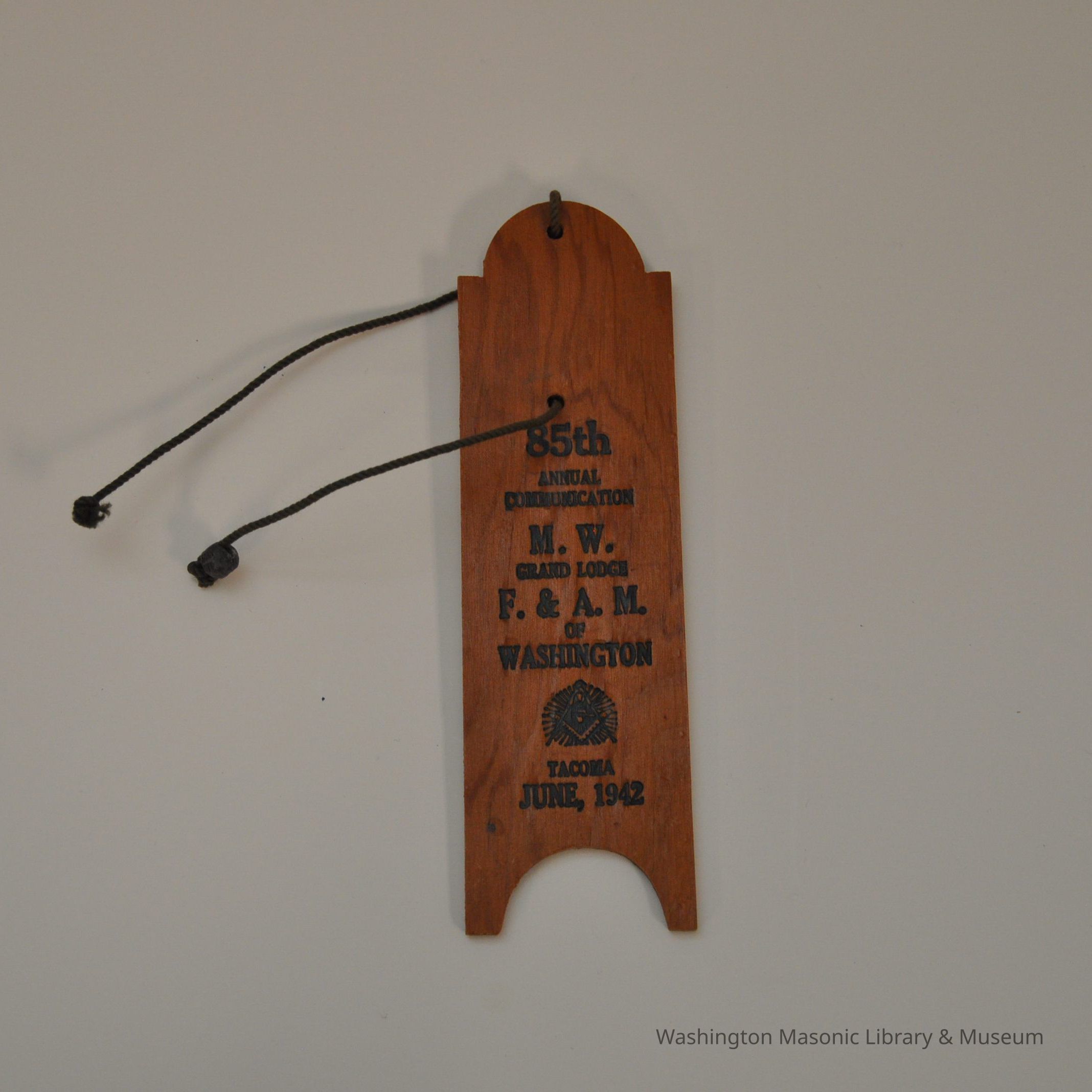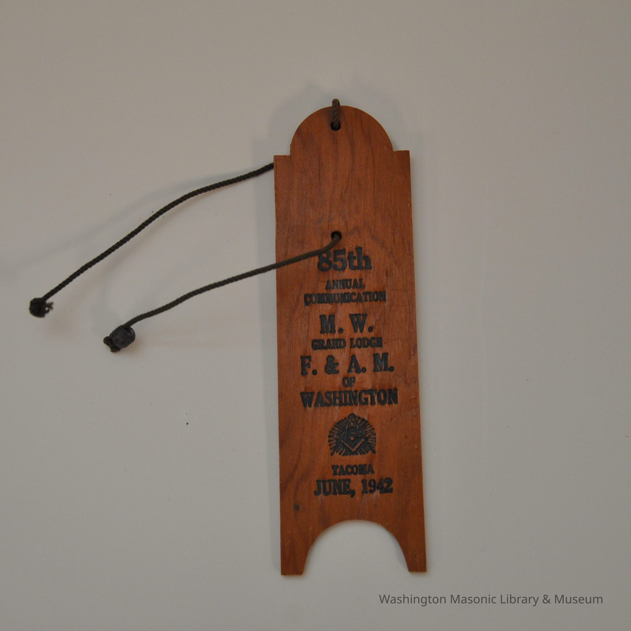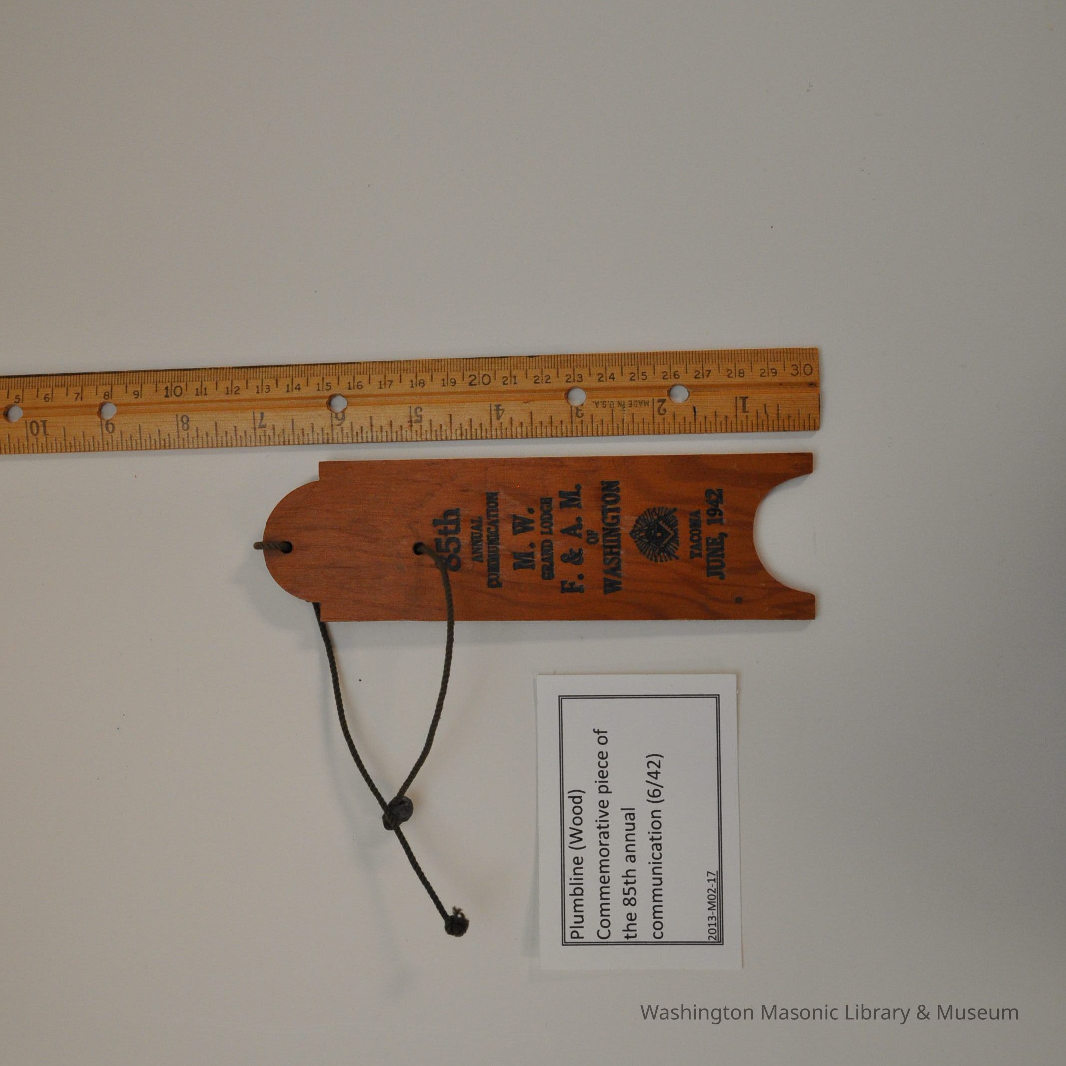 Wood Piece: Plumbline (wood) commemorative piece of the 85th annual communication. June, 1942.Collection
