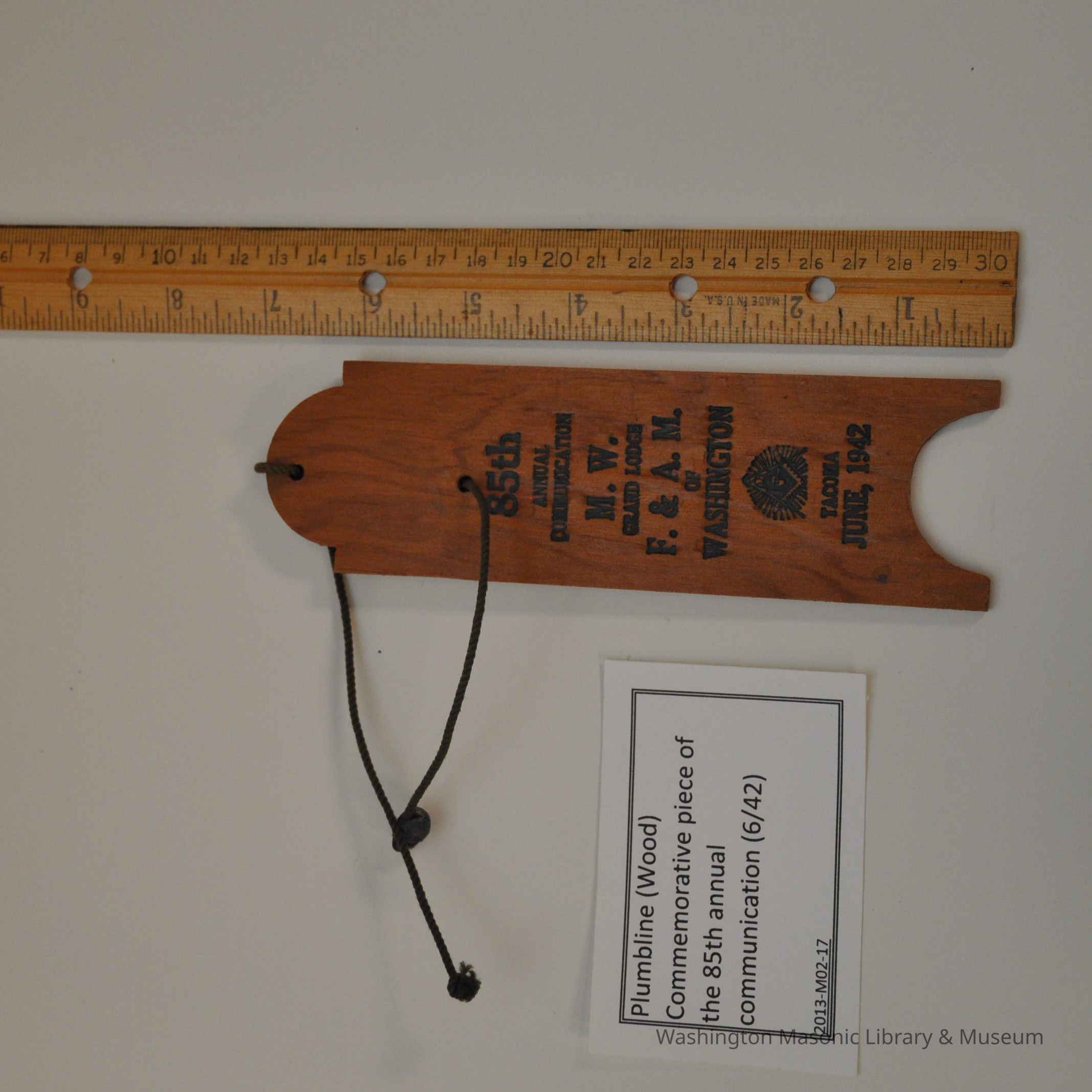 Plumbline: (wood) commemorative piece of the 85th annual communication, June 1942Entry/Object ID