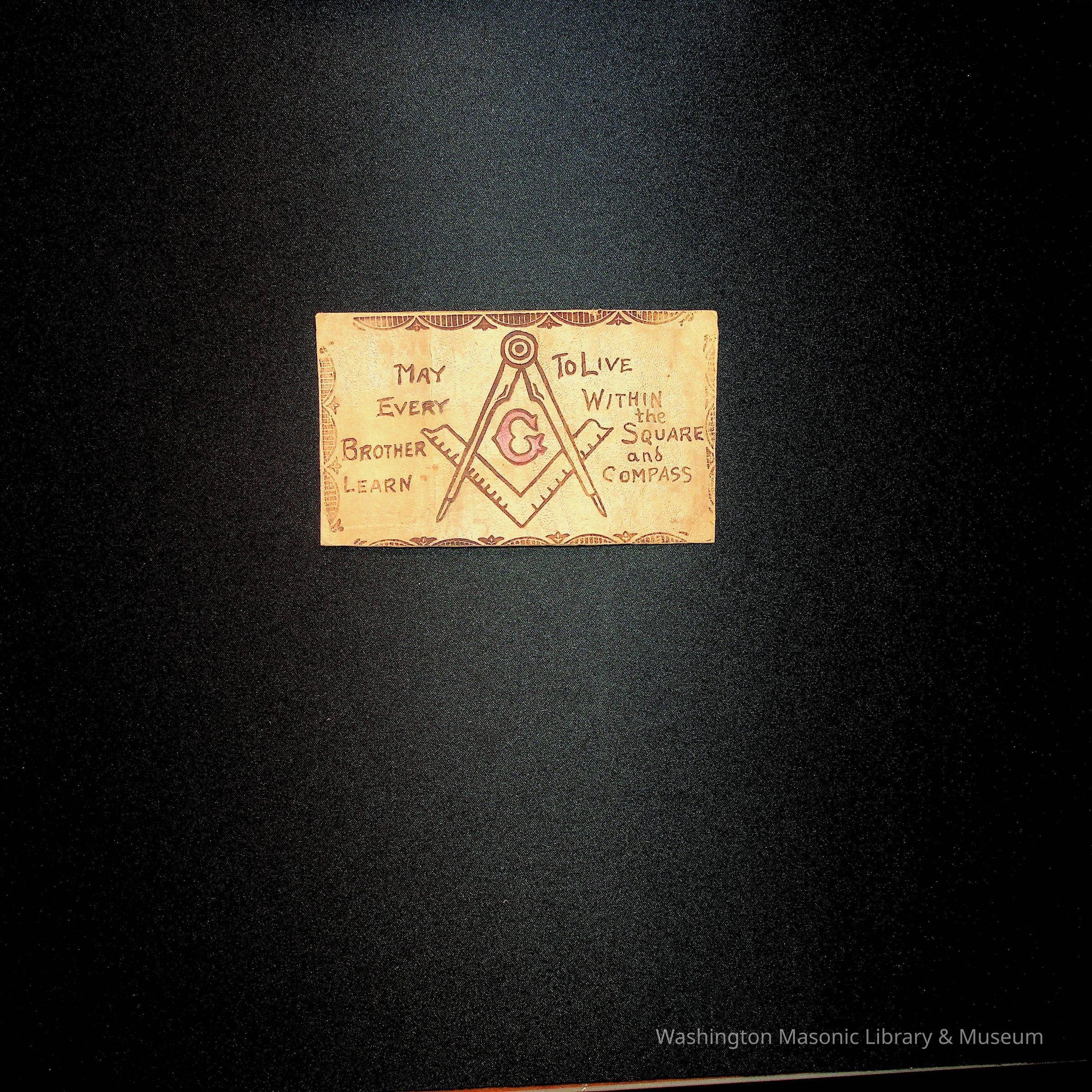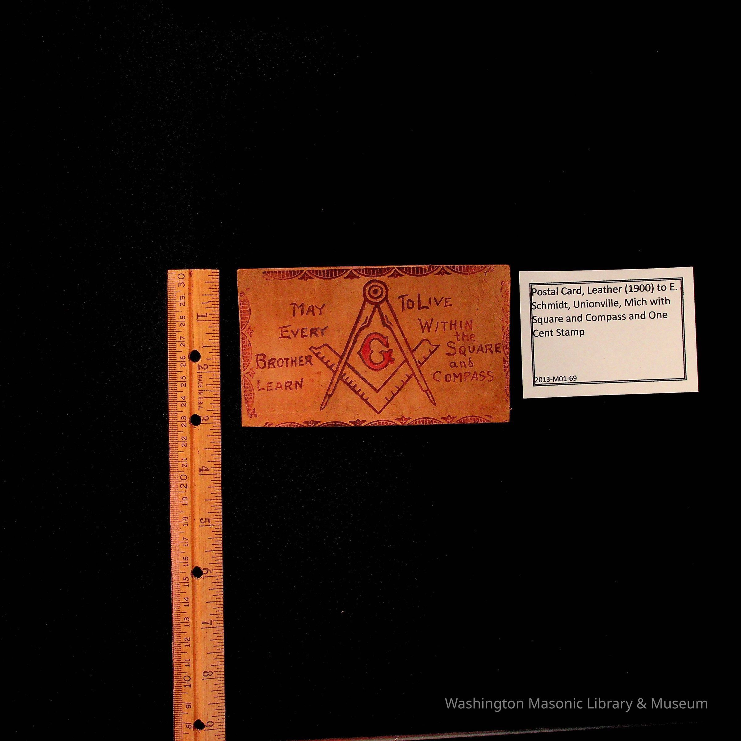 Post Card: Leather "May Every Brother Learn to Live Within the Square and Compass" 1907.Entry/Object ID