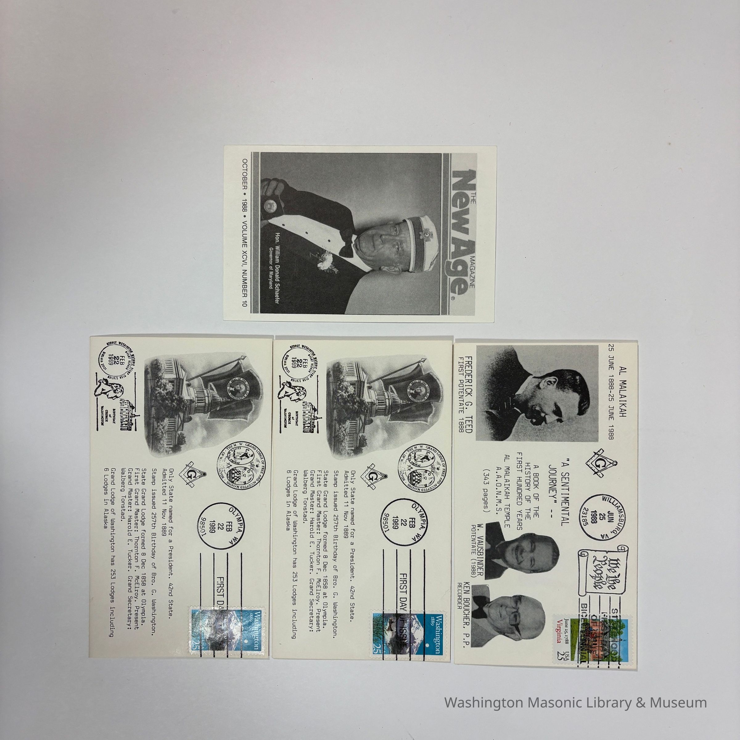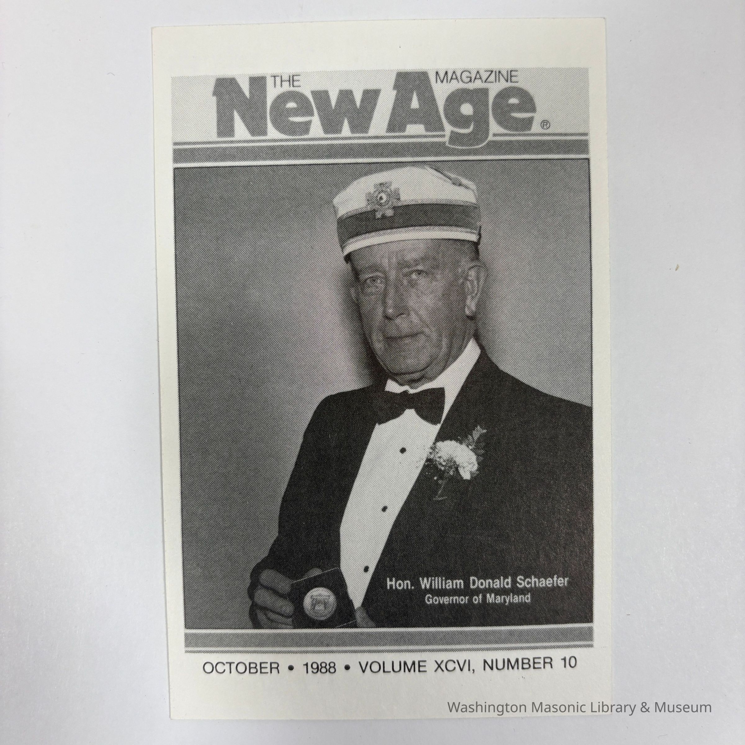 On backside: Depicts Hon. William Donald Schaefer, Governor of Maryland wearing masonic regalia.Collection