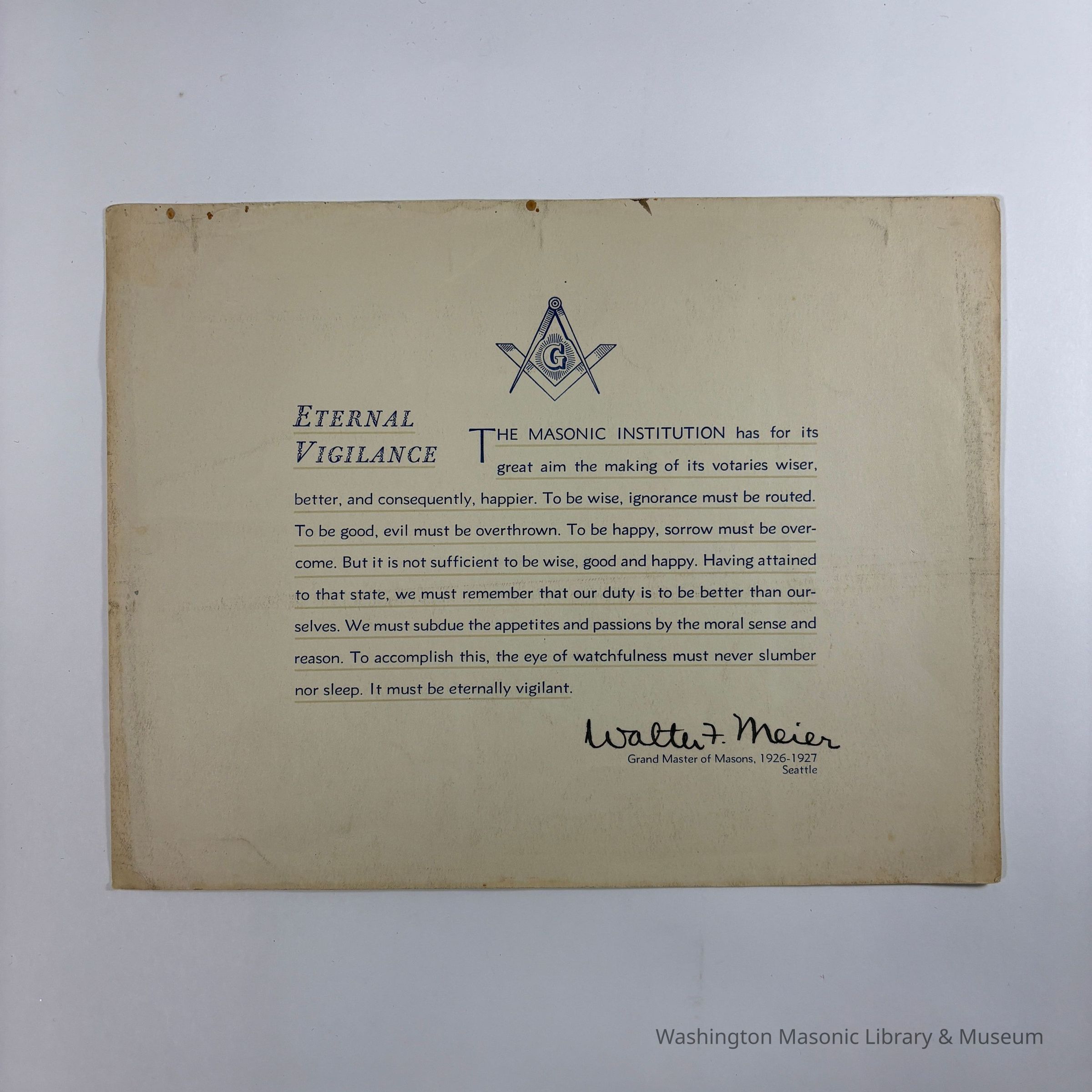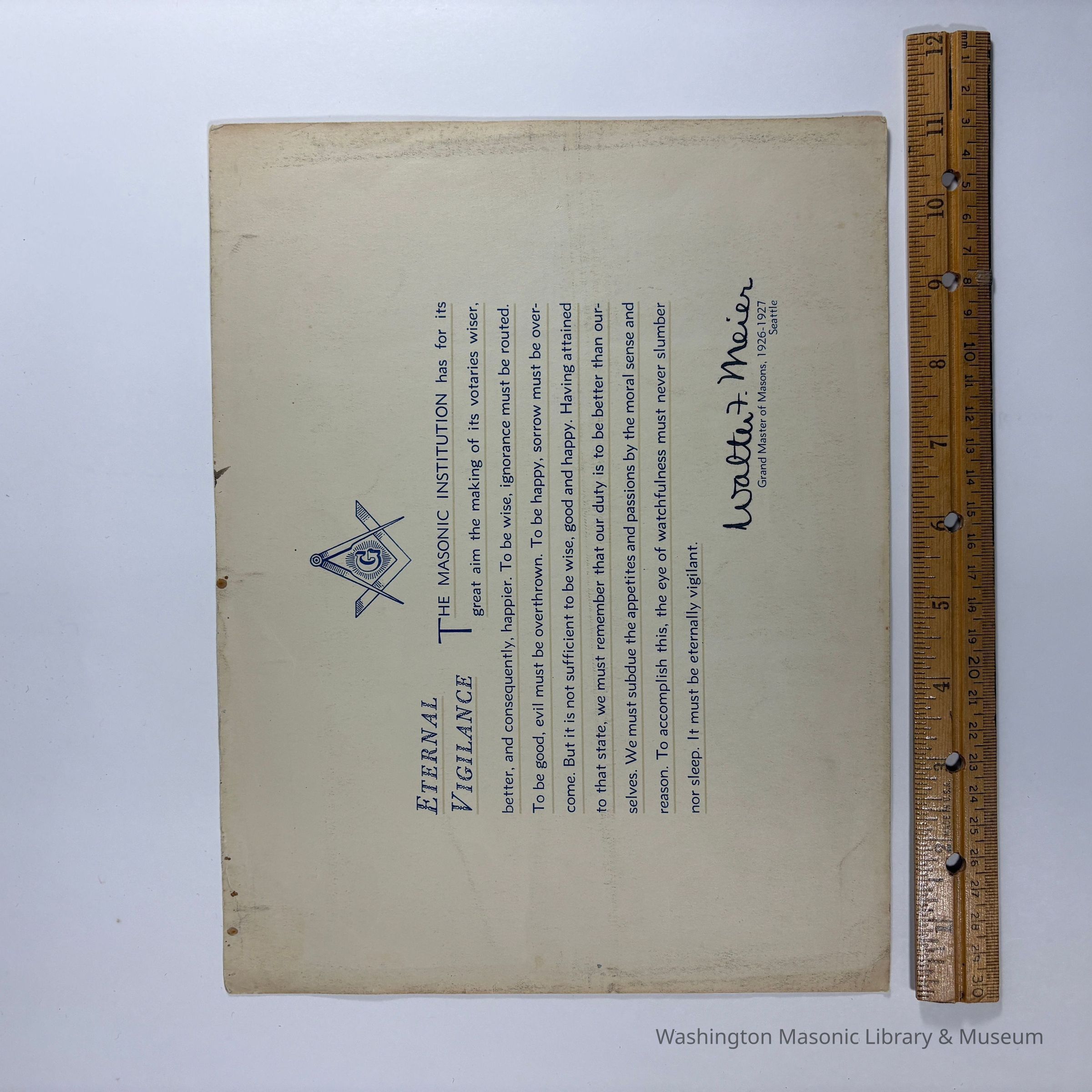 Print: "Eternal Vigilance," written by MW Walter F. Meier, c. 1936
