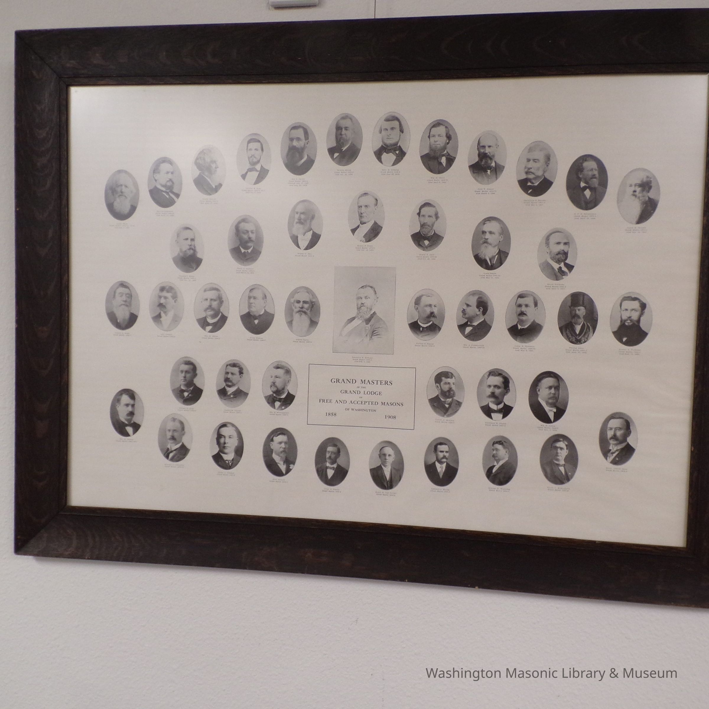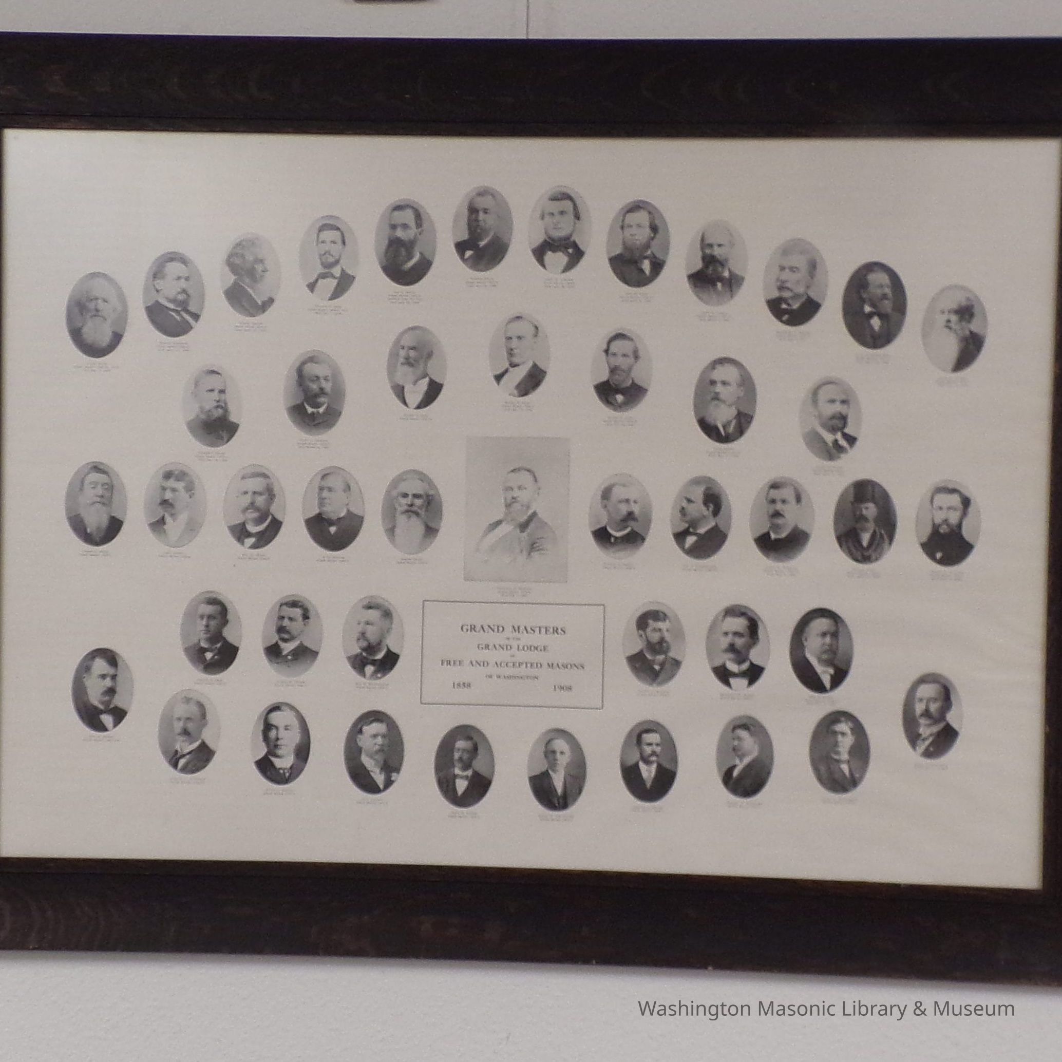 Print: Framed. Portraits of the first 46 Grand Masters of Washington from 1858-1908