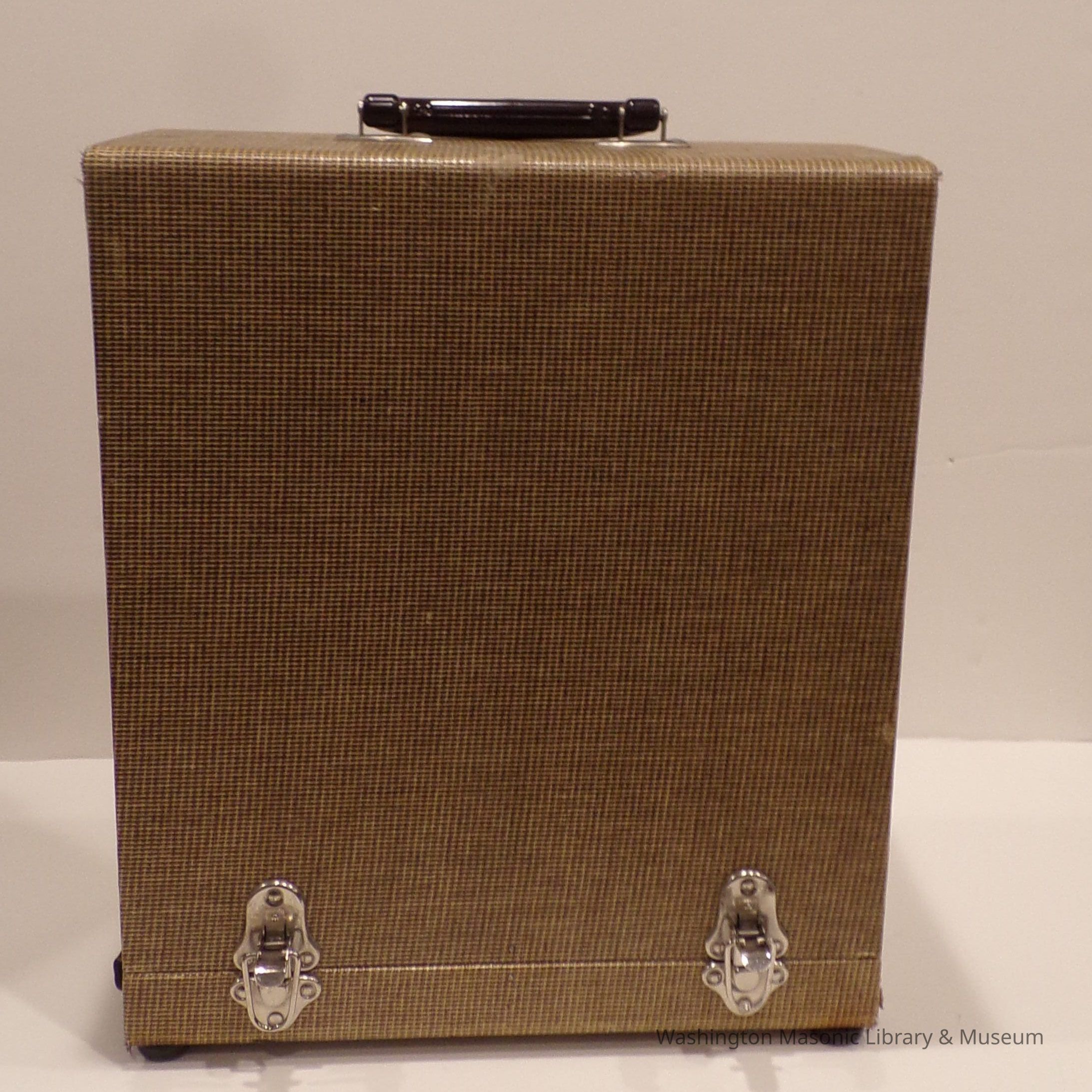 Projector: c. mid 20th century. In box with writing "Lebanon 104" With accompanying box, chord, and instructions. c. Mid 20th century. Found in the Royal A. Gove attic cleanout.