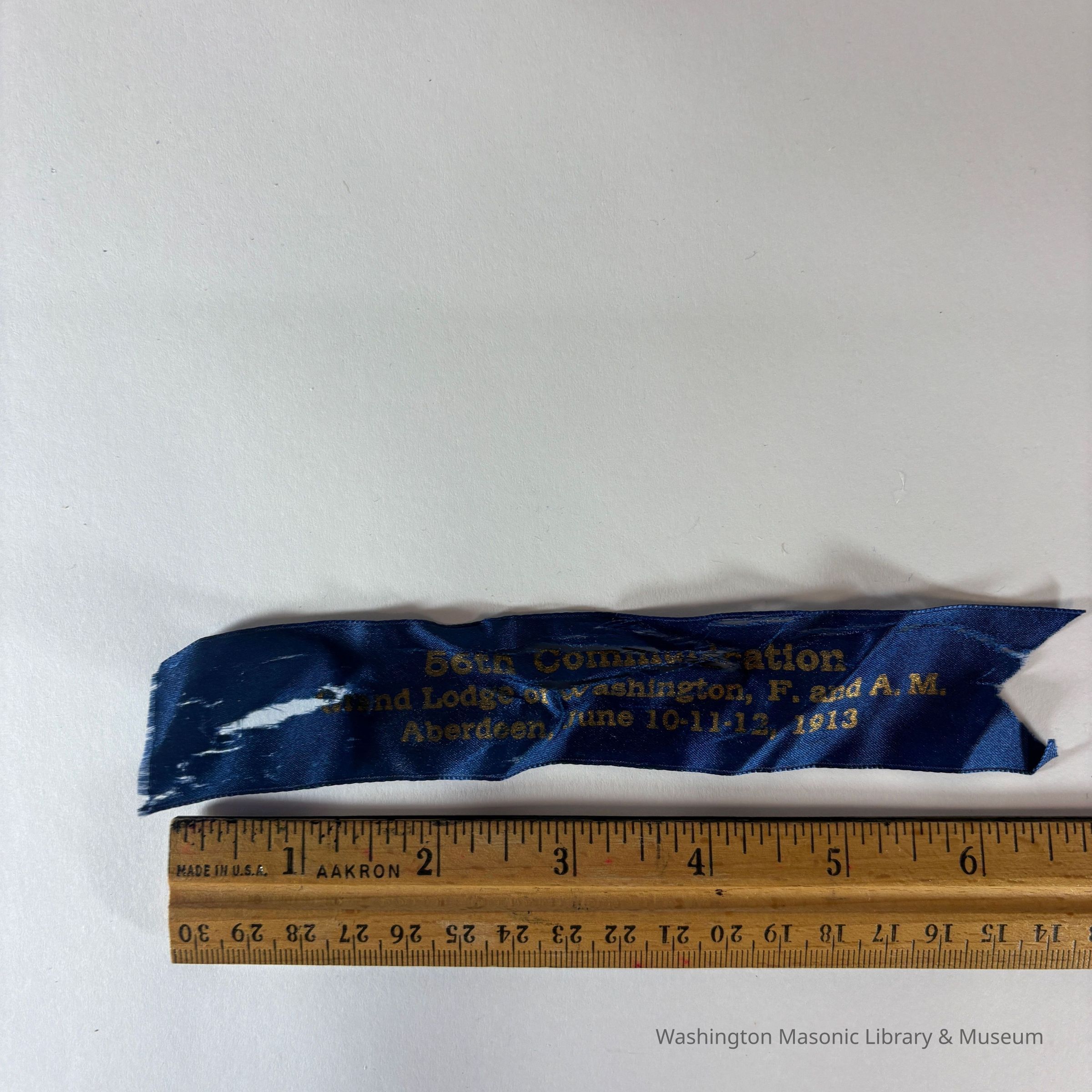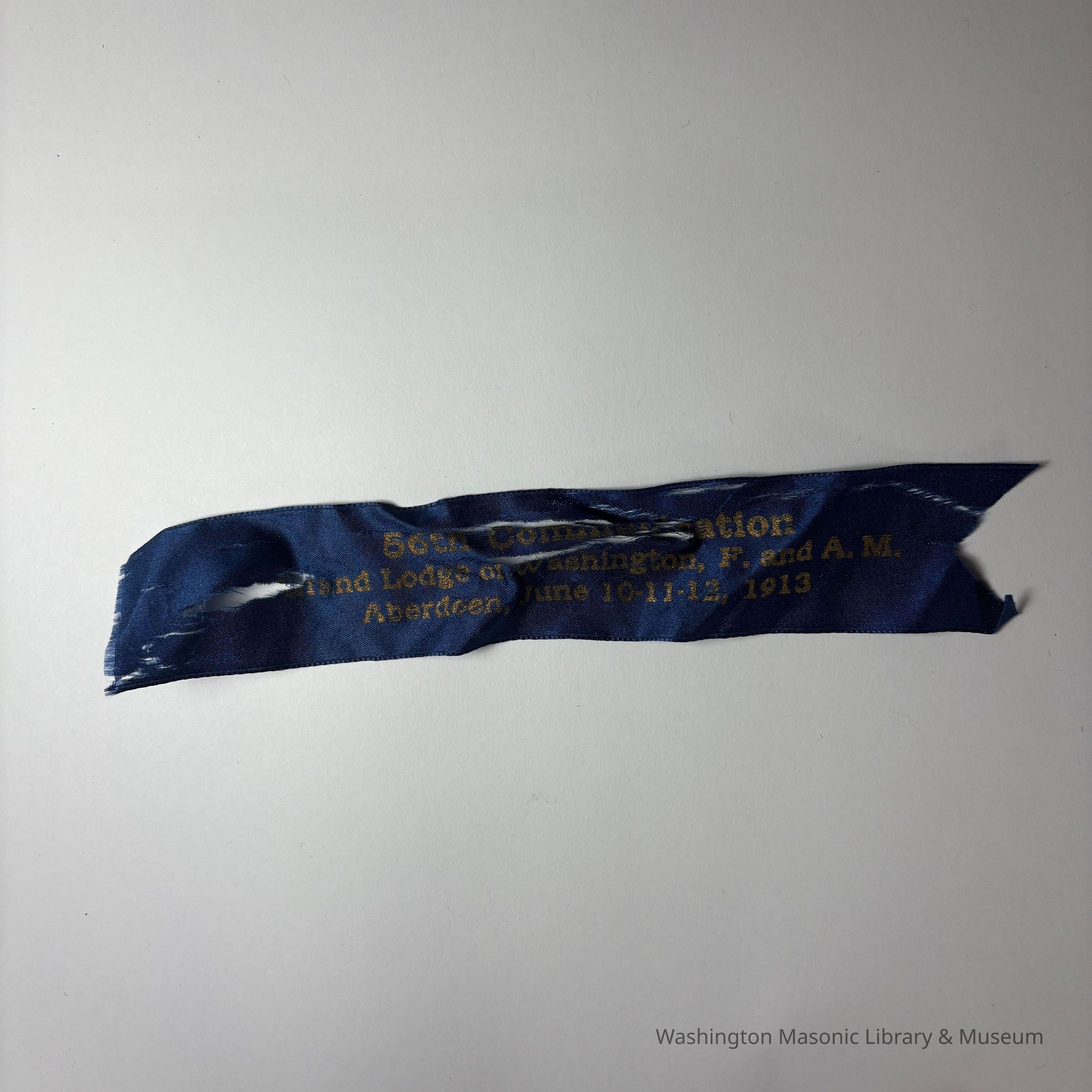 Ribbon: Blue with Gold lettering. "56th Communication/ Grand Lodge of Washington F. and A.M./ Aberdeen, Washington/ June 10, 11, 12, 1913"Collection