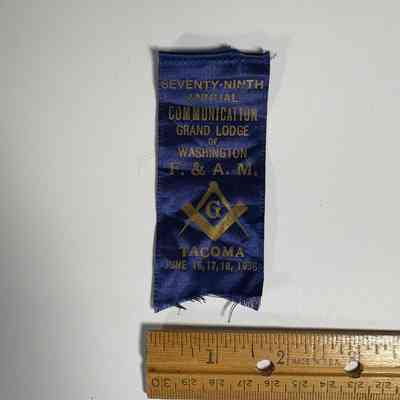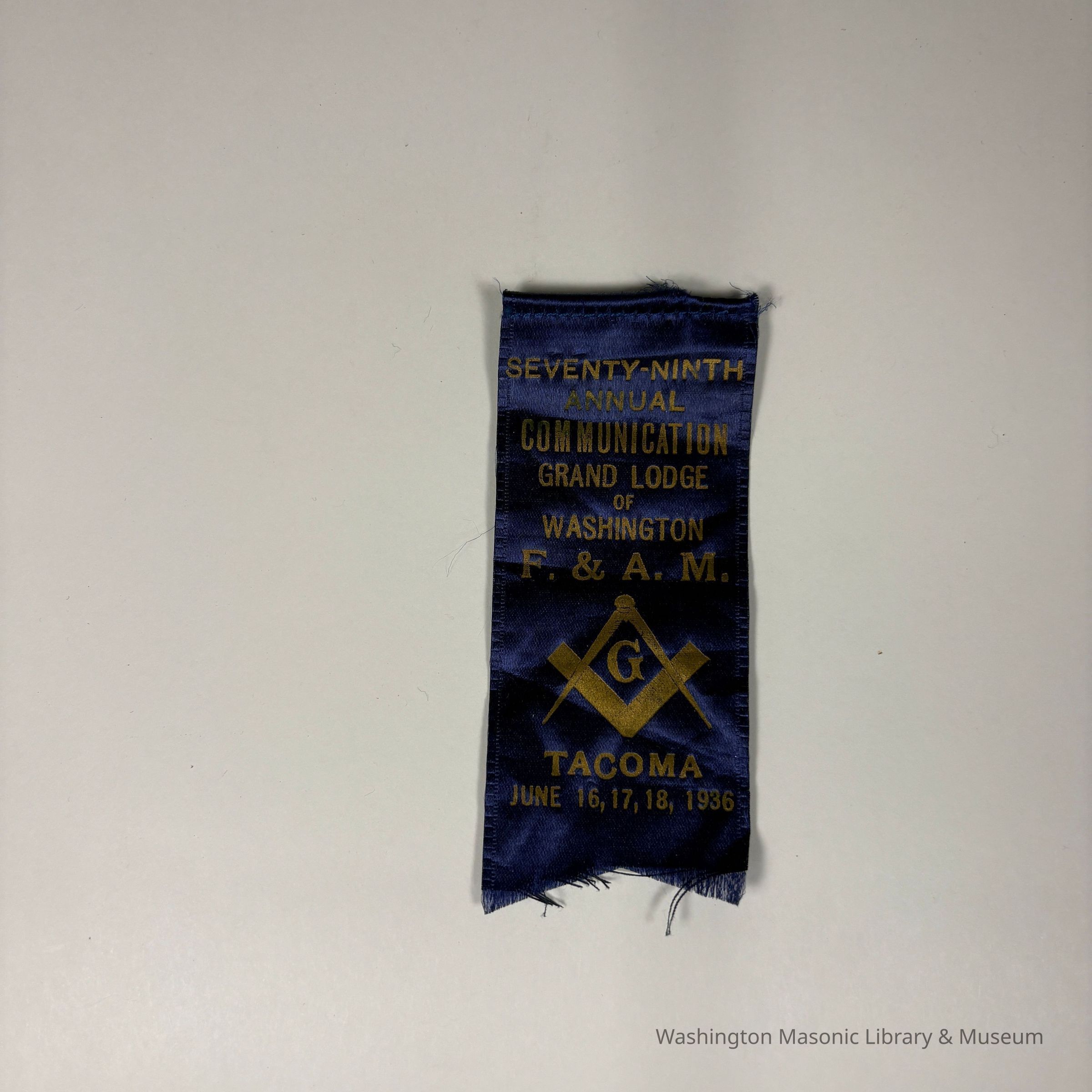 Ribbon: Blue with gold writing. "Seventy-Ninth Annual Communication Grand Lodge of Washington F.&A.M./Tacoma/ June 16,17,18, 1936" (1936)Entry/Object ID