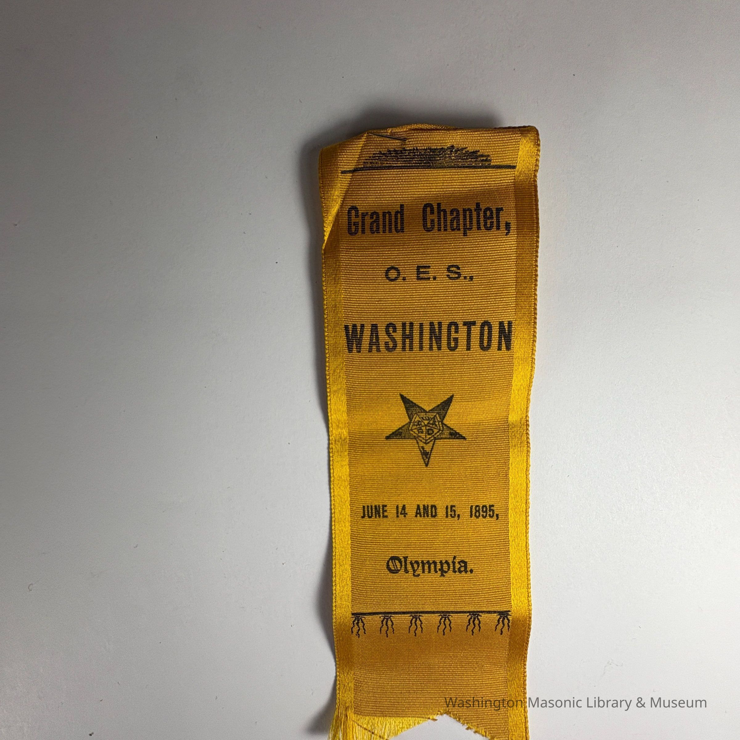 Ribbon: Yellow with Black lettering. "Grand Chapter, O.E.S., Washington /June 14 and 15, 1895" (1895)Collection
