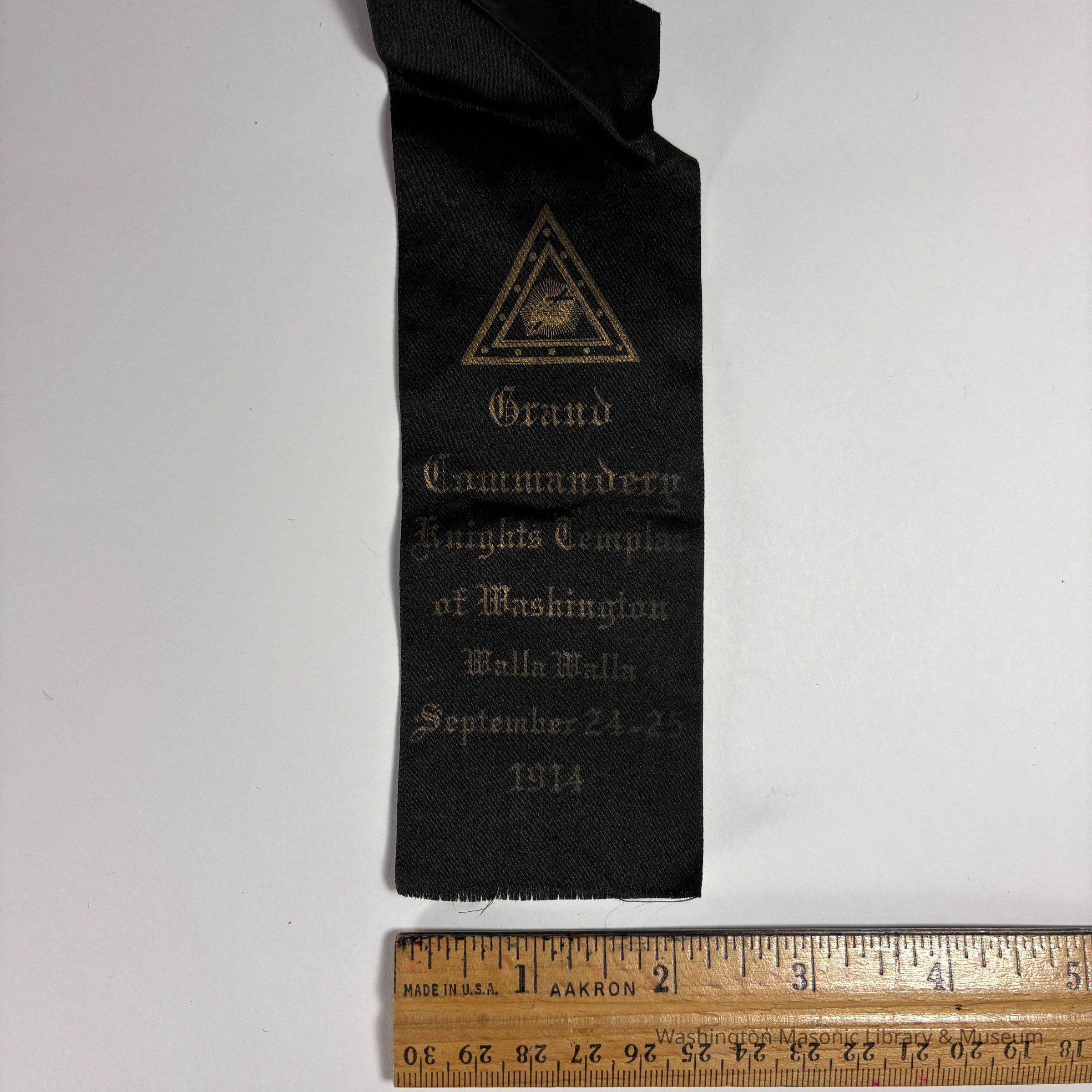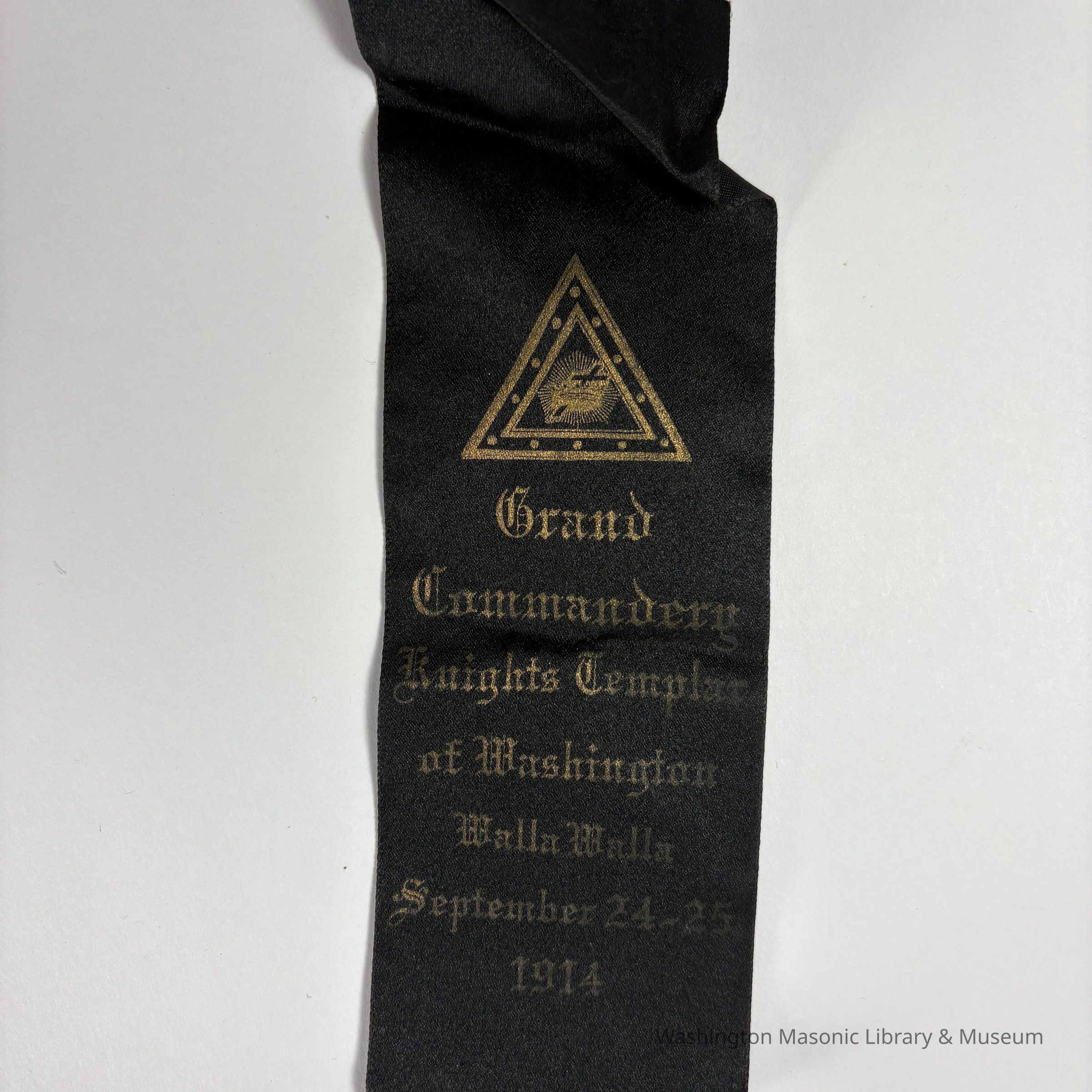 Ribbon: Black with Gold writing. "Grand Commandery Knights Templar of Washington/ Walla Walla/September 24-25/1914"Collection