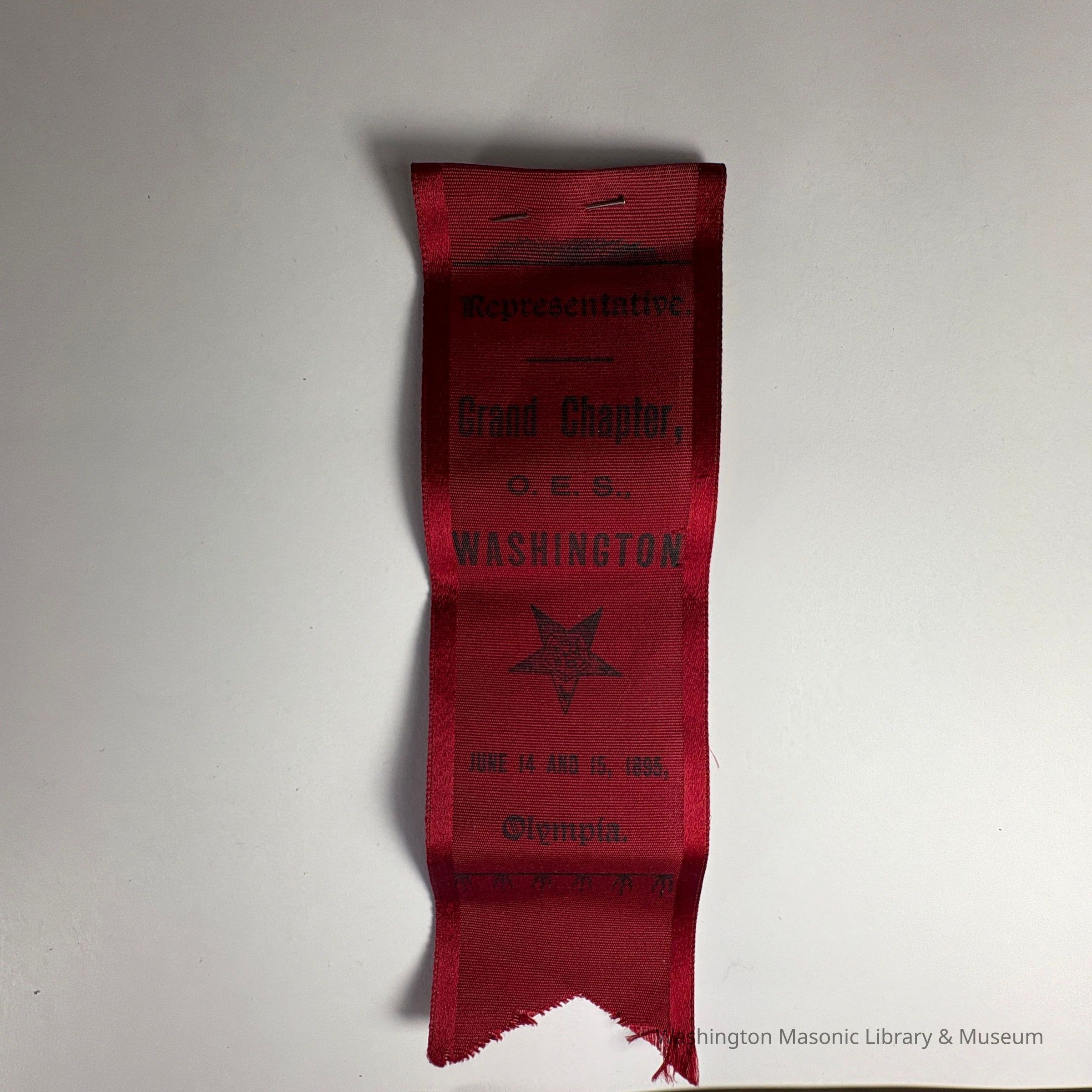 Ribbon: Red with Black lettering. "Representative/Grand Chapter, O.E.S., Washington /June 14 and 15, 1895" (1895)Collection