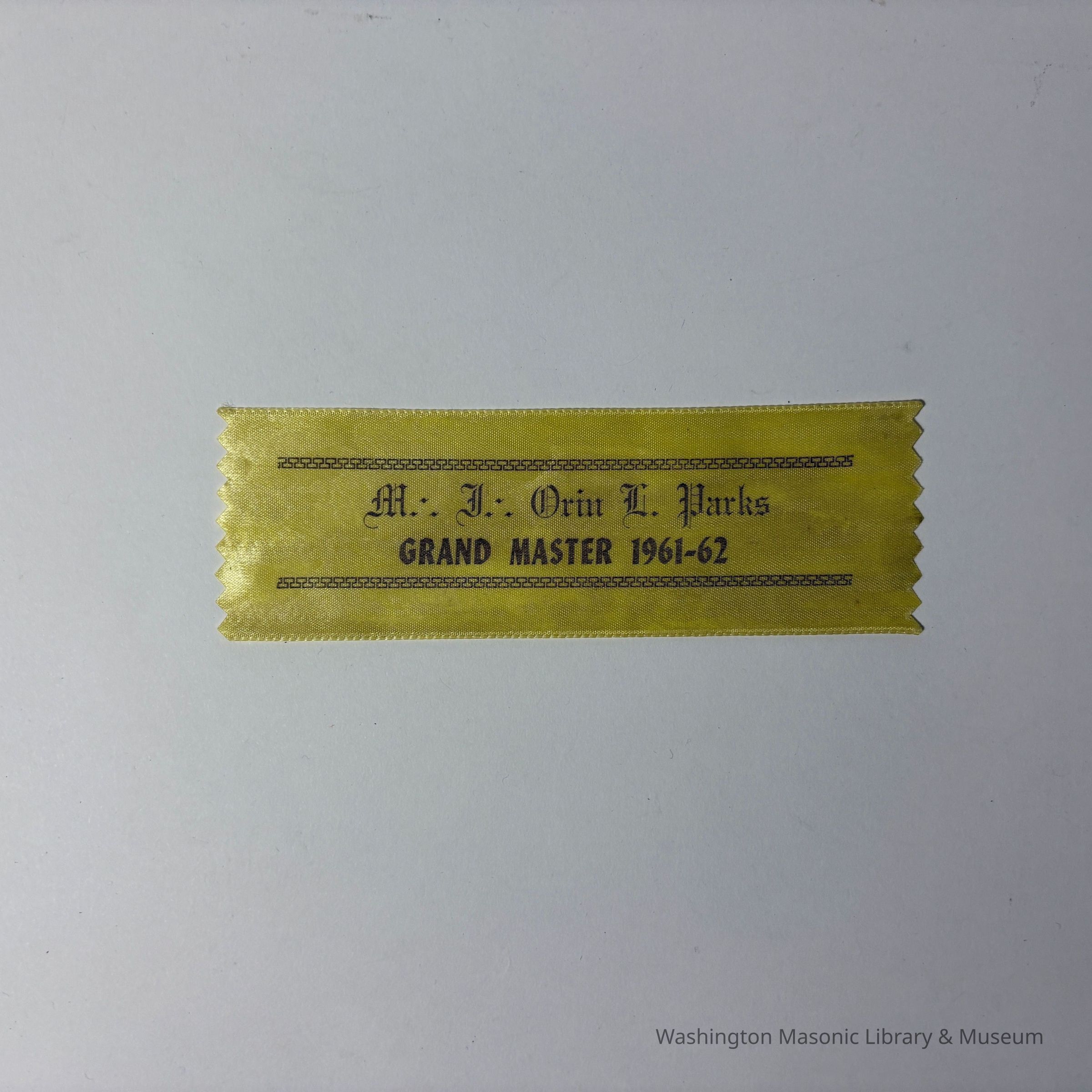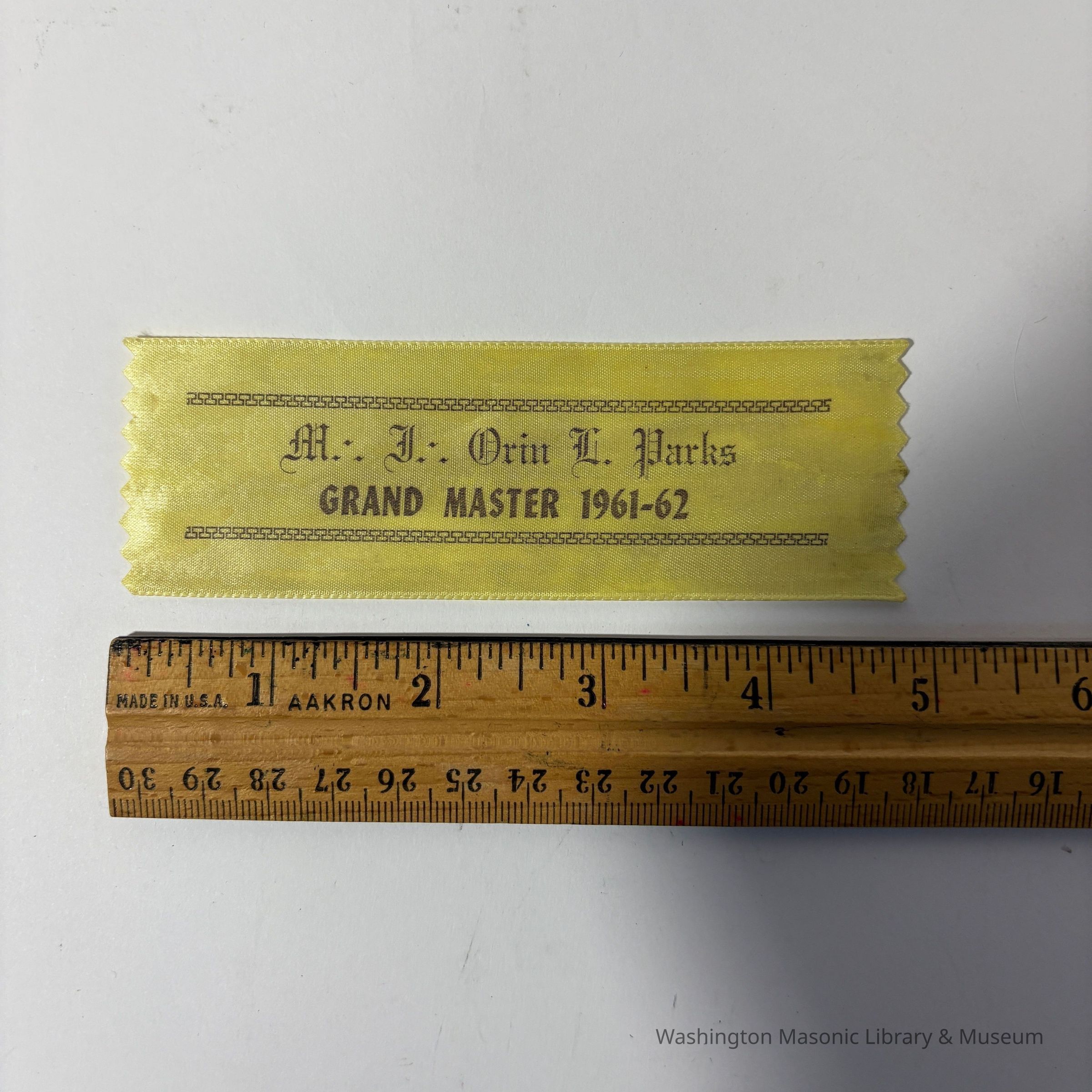 Ribbon: Yellow with gold lettering. Most Illustrious Grand Master of York Rite, Orin L. Parks (1962)Entry/Object ID