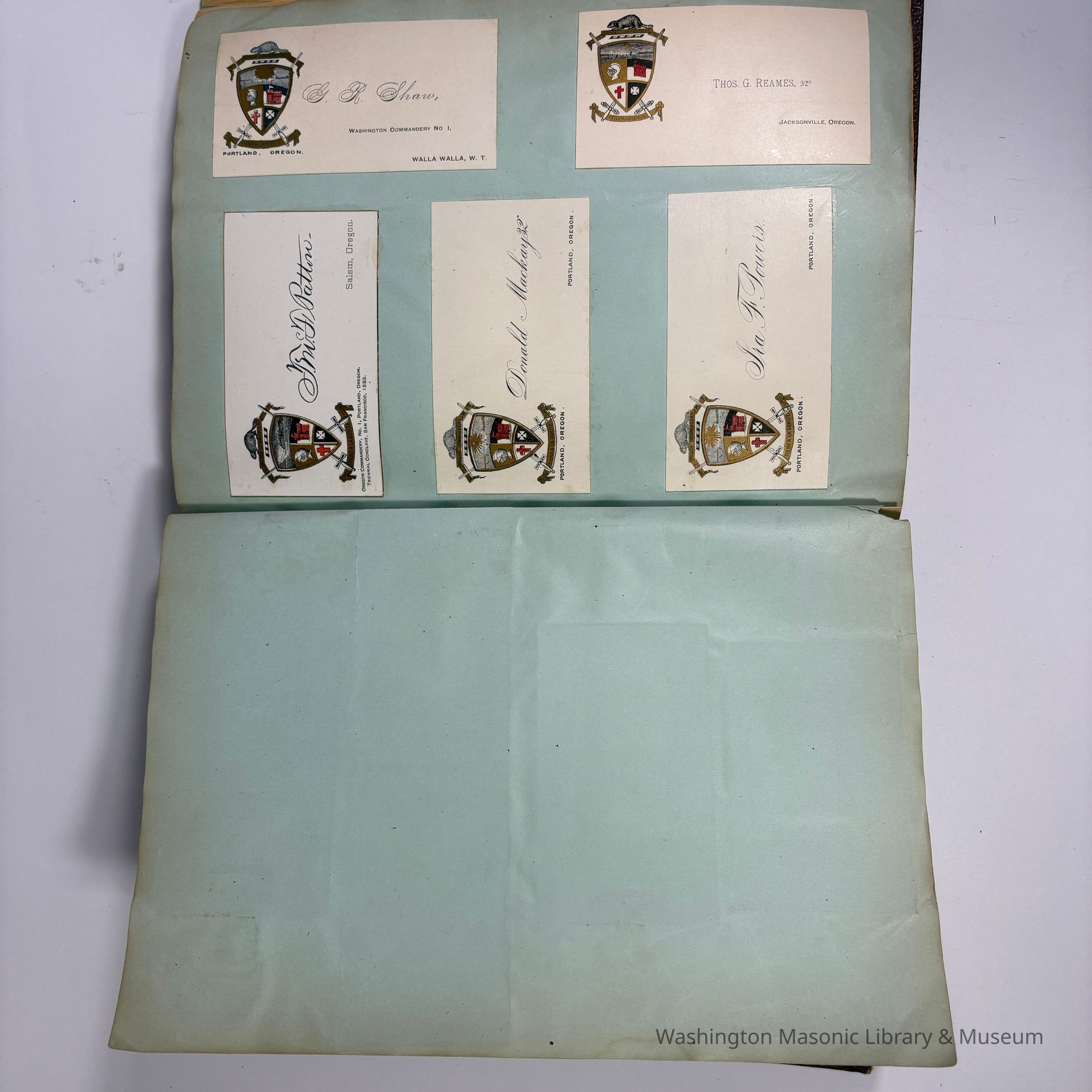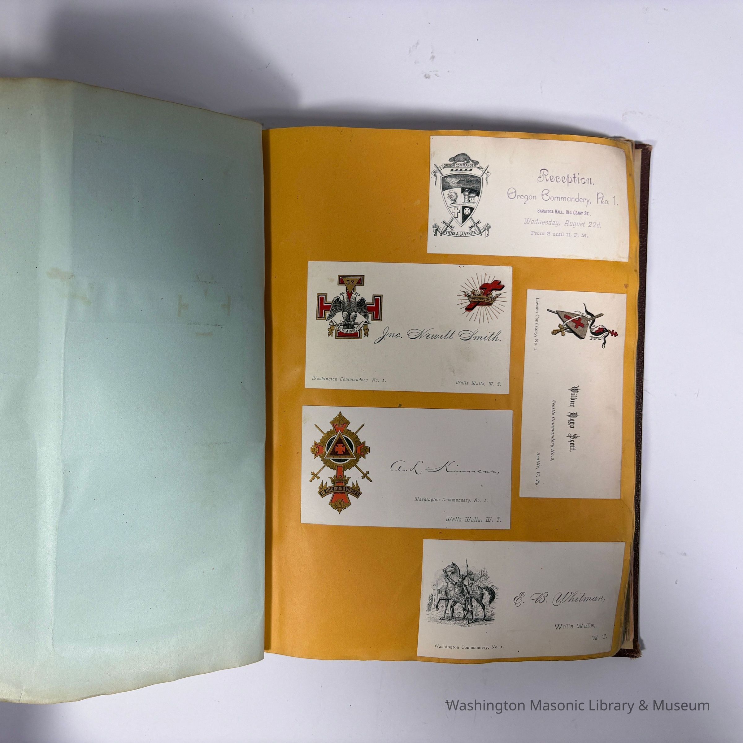 One page contains cards from Knights Templar members of Washington Territory.