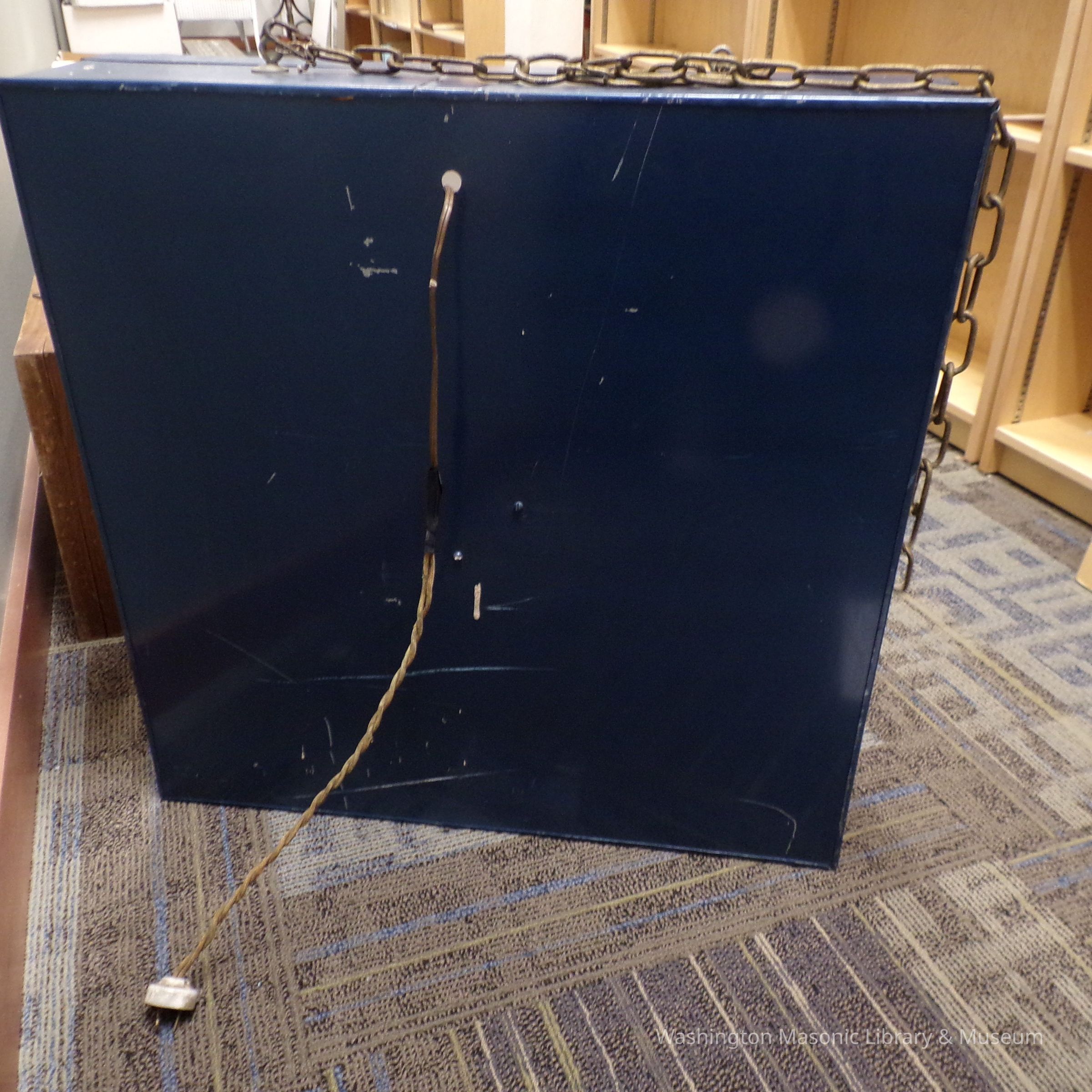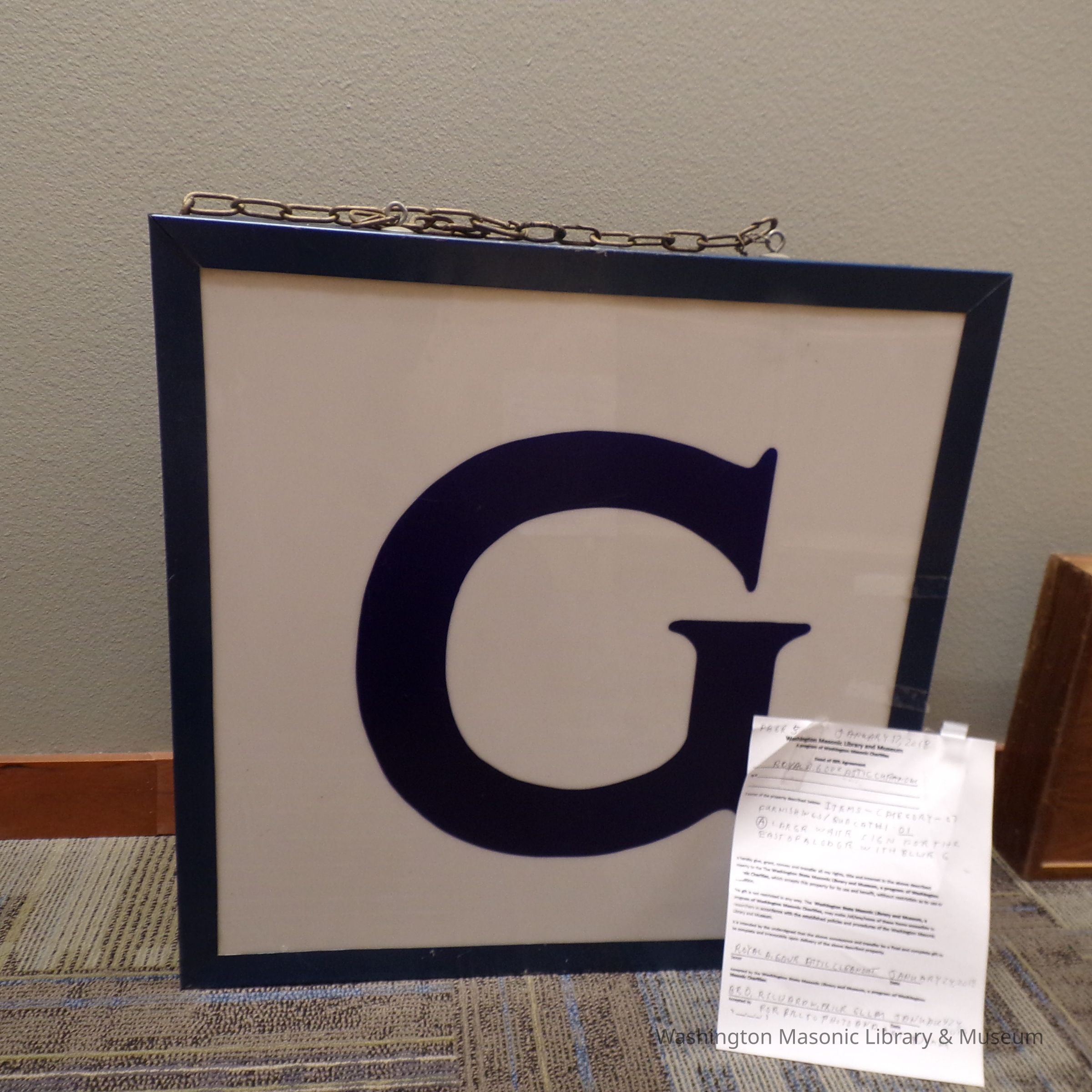 Sign: Large, blue and white, Electric East of a lodge sign "G"Entry/Object ID