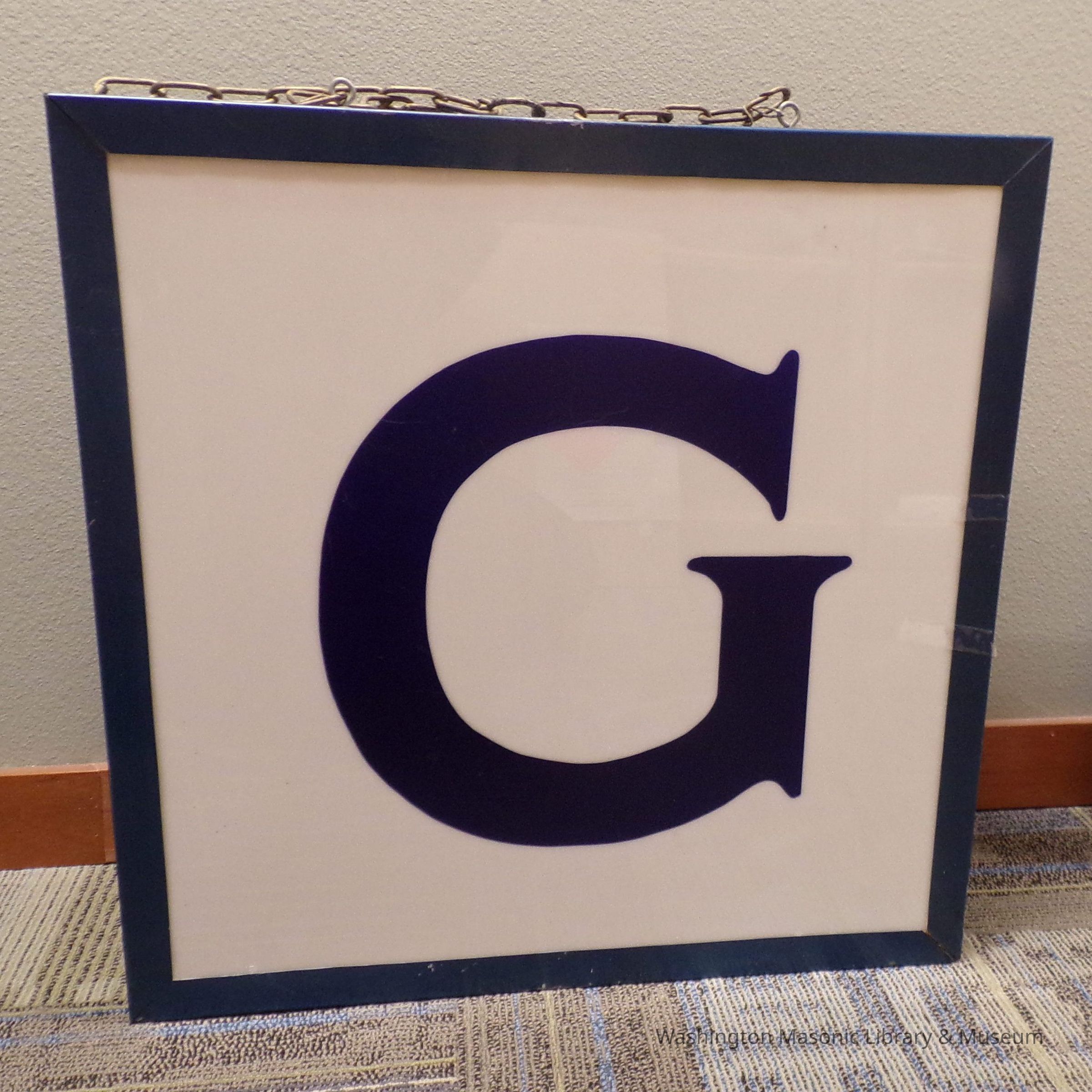 Sign: Large, blue and white sign for the east side of a lodge. "G". Electric plug in.Collection