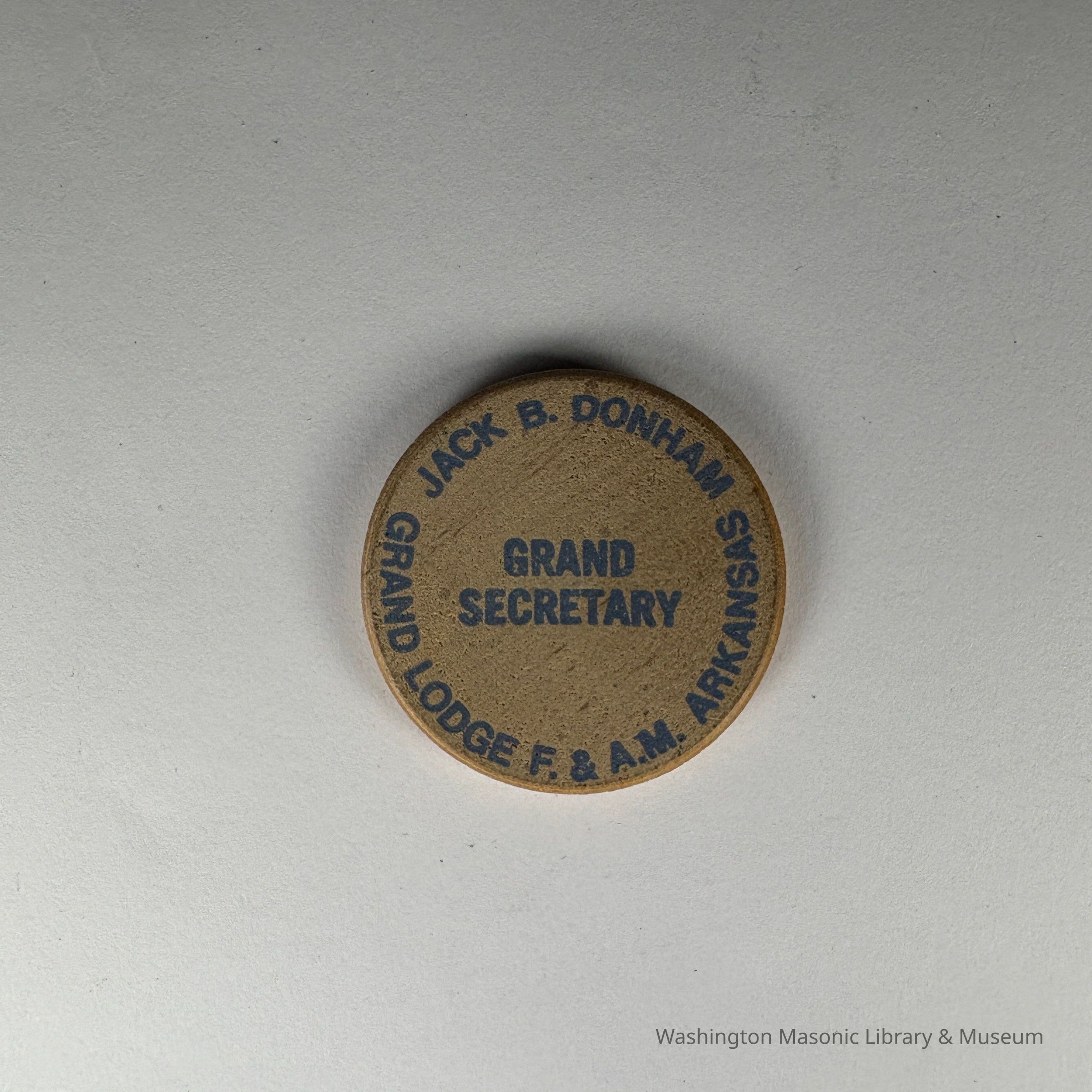 Back Side: "Jack B. Donham/Grand Lodge F.&A.M. Arkansas/Grand Secretary"Collection