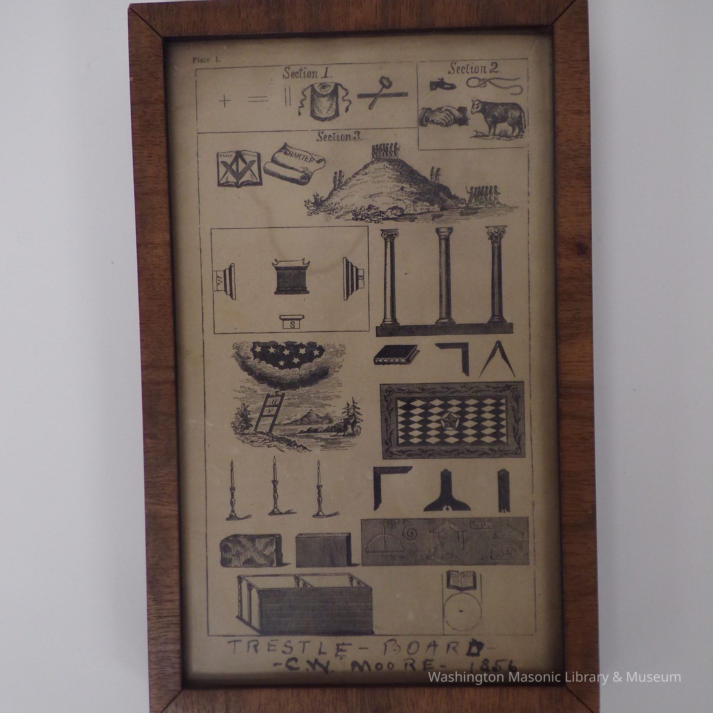 Trestle Board: Framed miniature trestle board by C.W. Moore (1856)Entry/Object ID