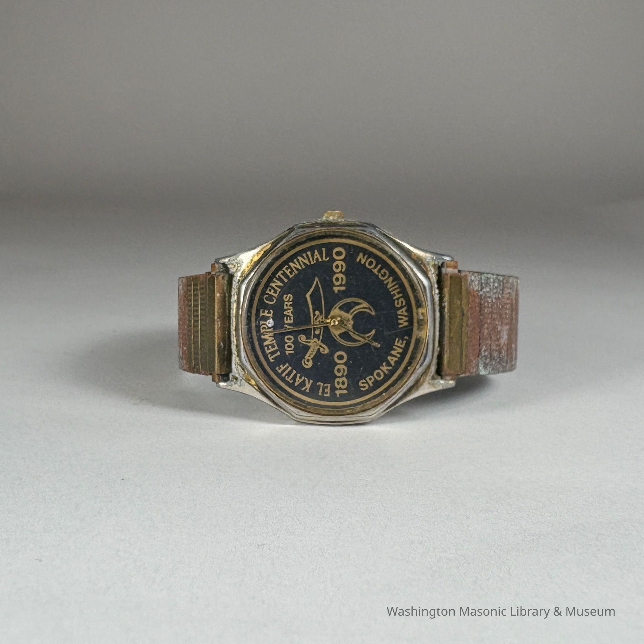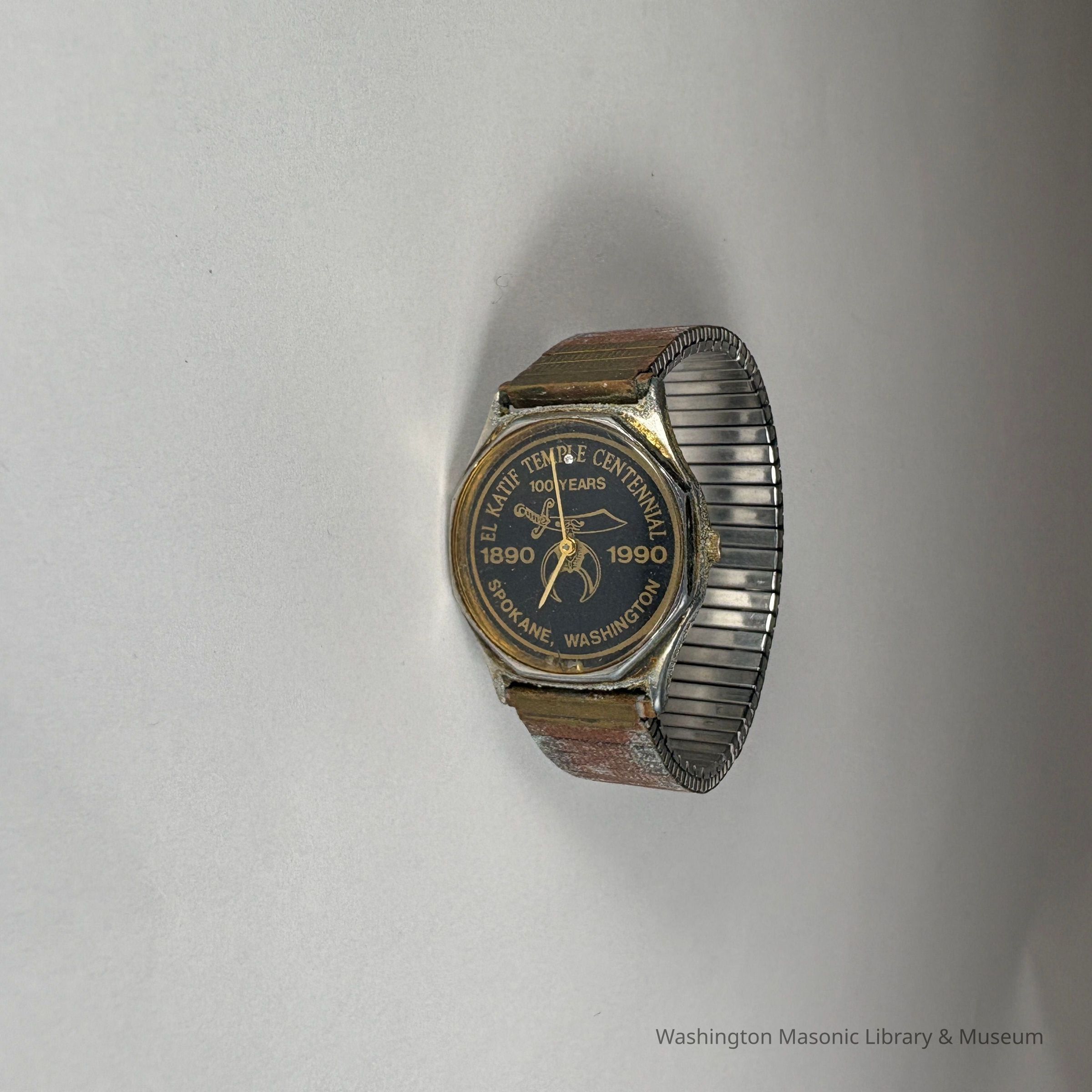 Watch: metal, gold color. "El Katif Temple Centennial/1890-1990/Spokane/Washington"Collection