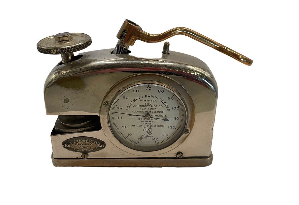 The Ashcroft paper tester was introduced in 1912 and was still in use in 1948. In the early 20th century there was a wide range of papers available and the test was developed so that the quality of a paper could be accurately judged.Acquisition