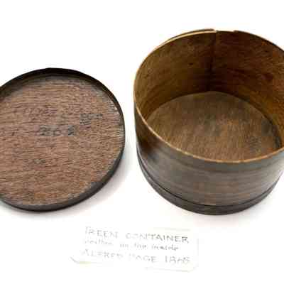 Bentwood measures are antique containers, often made of beech wood, that were used to measure and hold dry goods like grains, seeds, and flours. The term refers to the construction method, where strips of wood were steamed and bent to form a cylindrical shape, with a one-piece bottom and often reinforced with iron banding. These measures are also called "treen" and were essential in homes and businesses before modern scales were common.Acquisition
