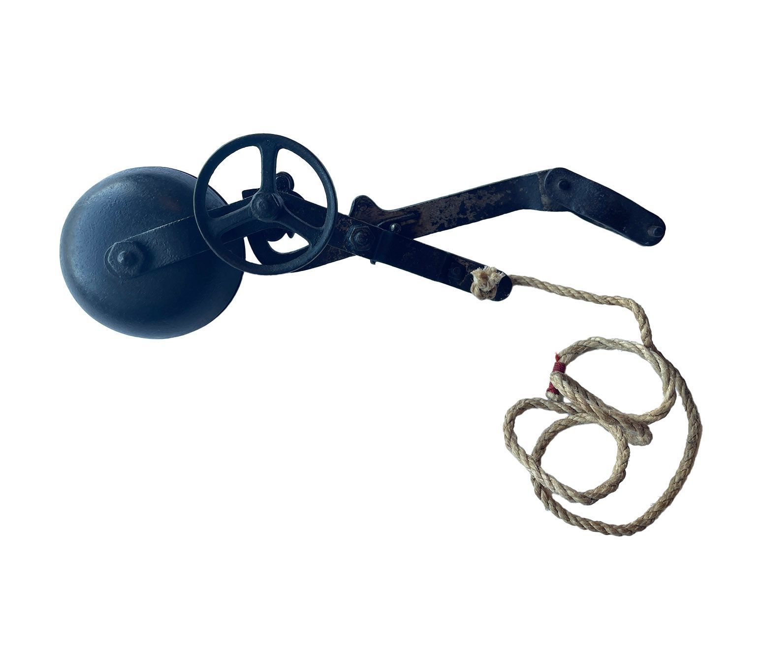 Over the years the variations in design were varied and versatile. When the cord was pulled it put the wheel in contact with the tyre. The wheel then rotated the 'clappers' hammers to strike the bell.Cataloged By