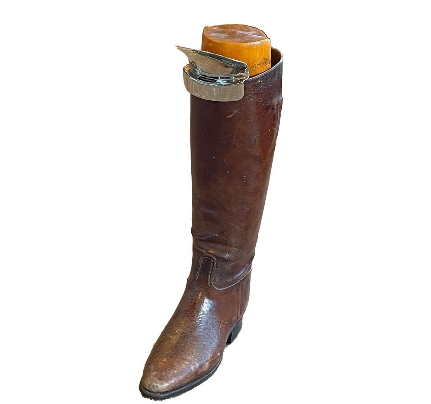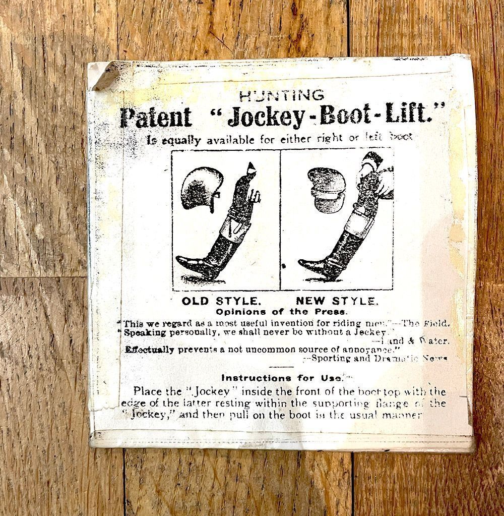 Stainless steel curved horse riding dress aid.Cataloged By