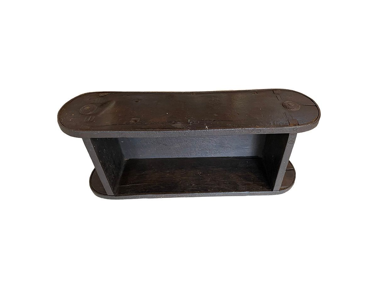 Wood mould with metal frame and base.Context